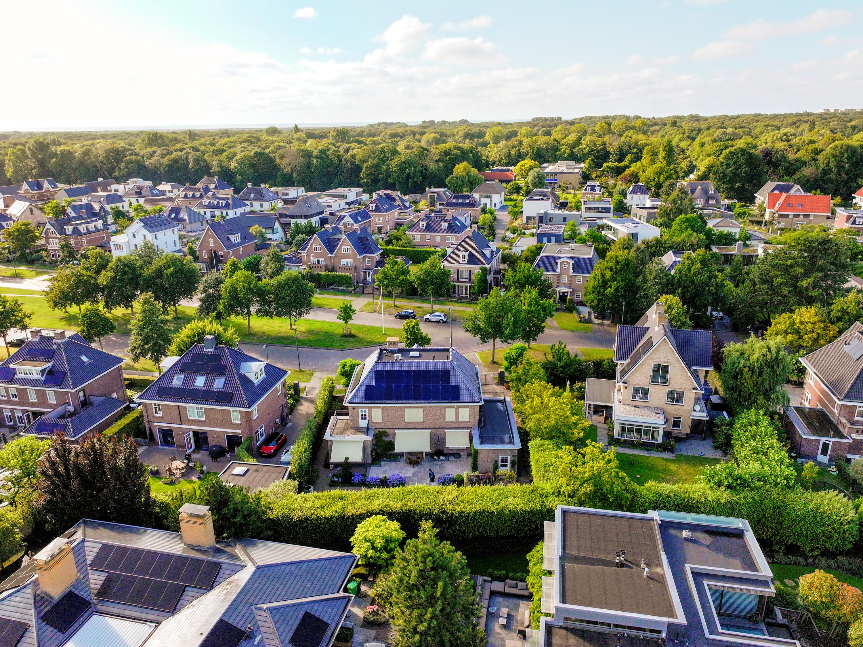 - Elektrisch op afstand bediende zonneschermen bij vrijwel alle ramen aan de tuinkant