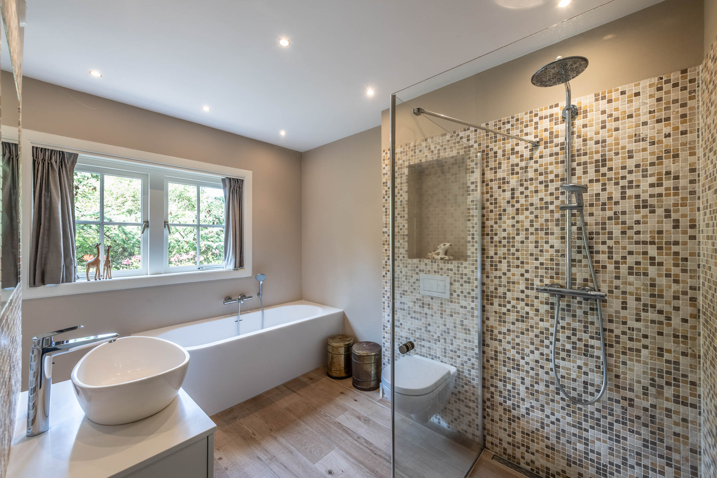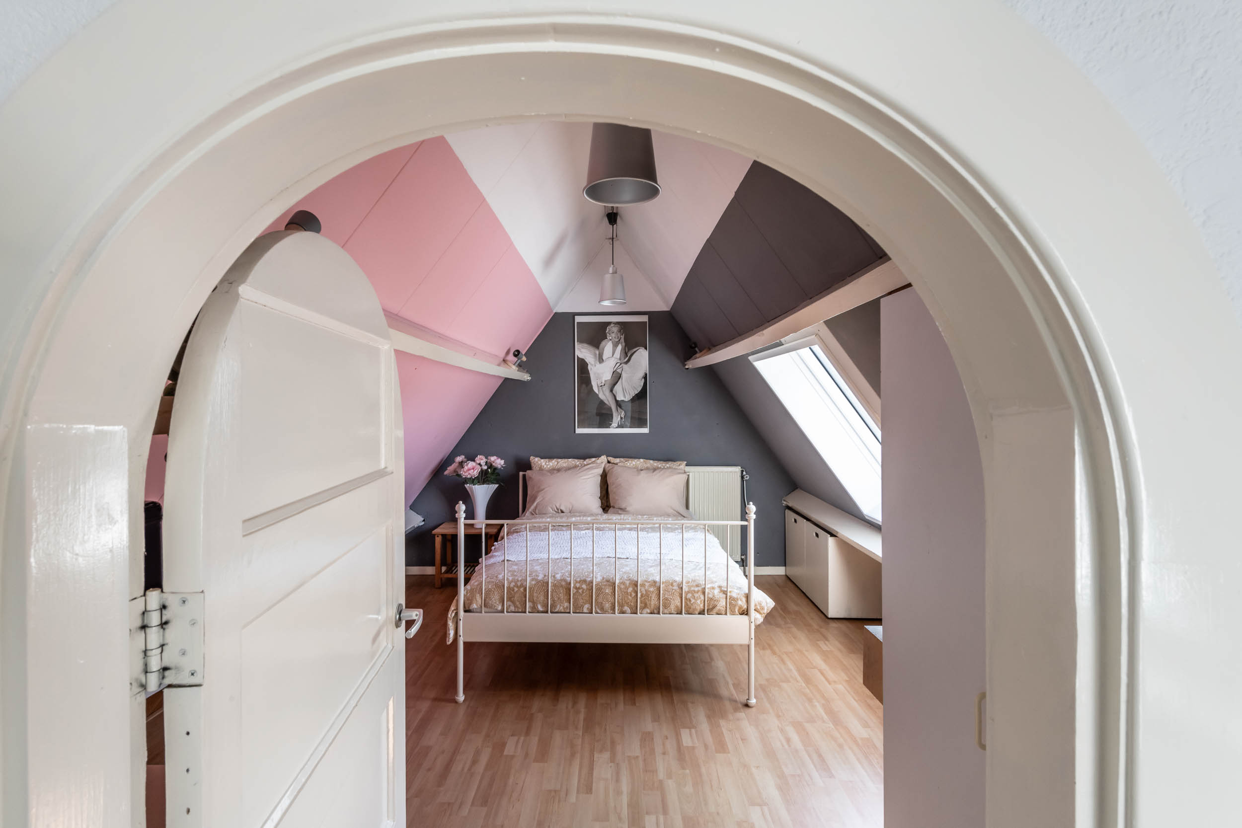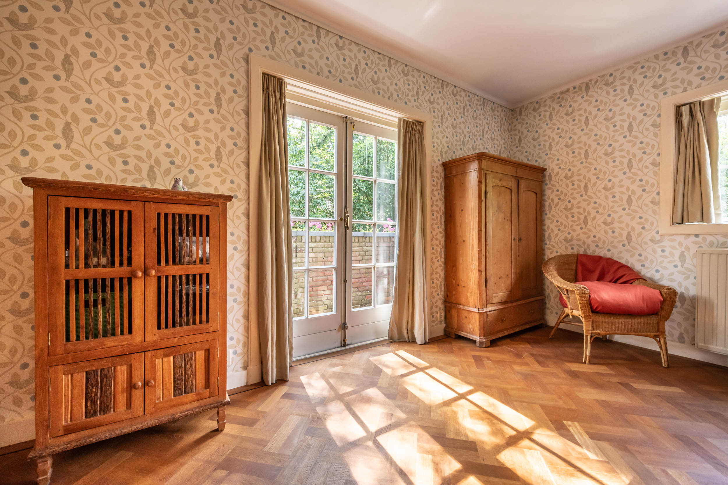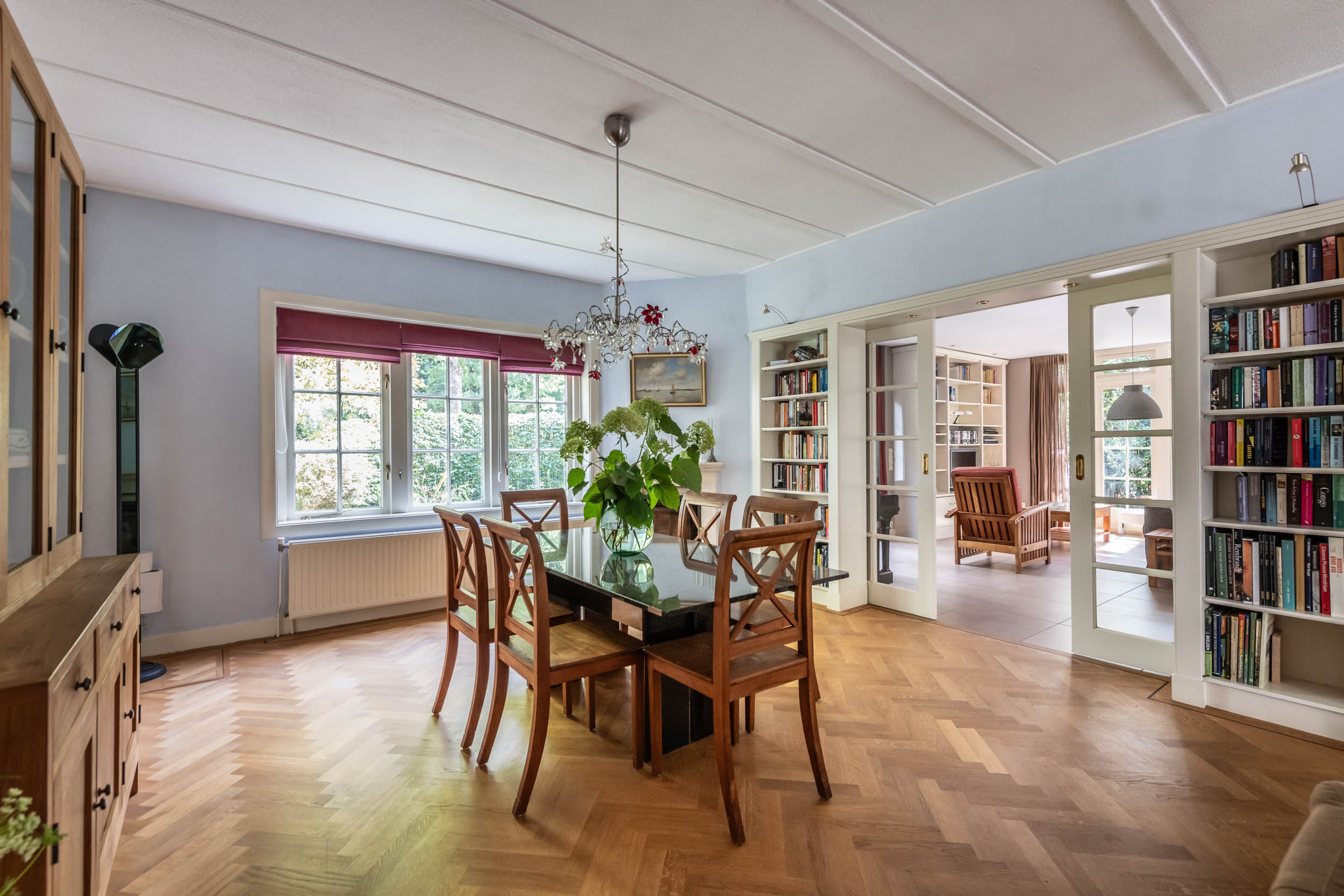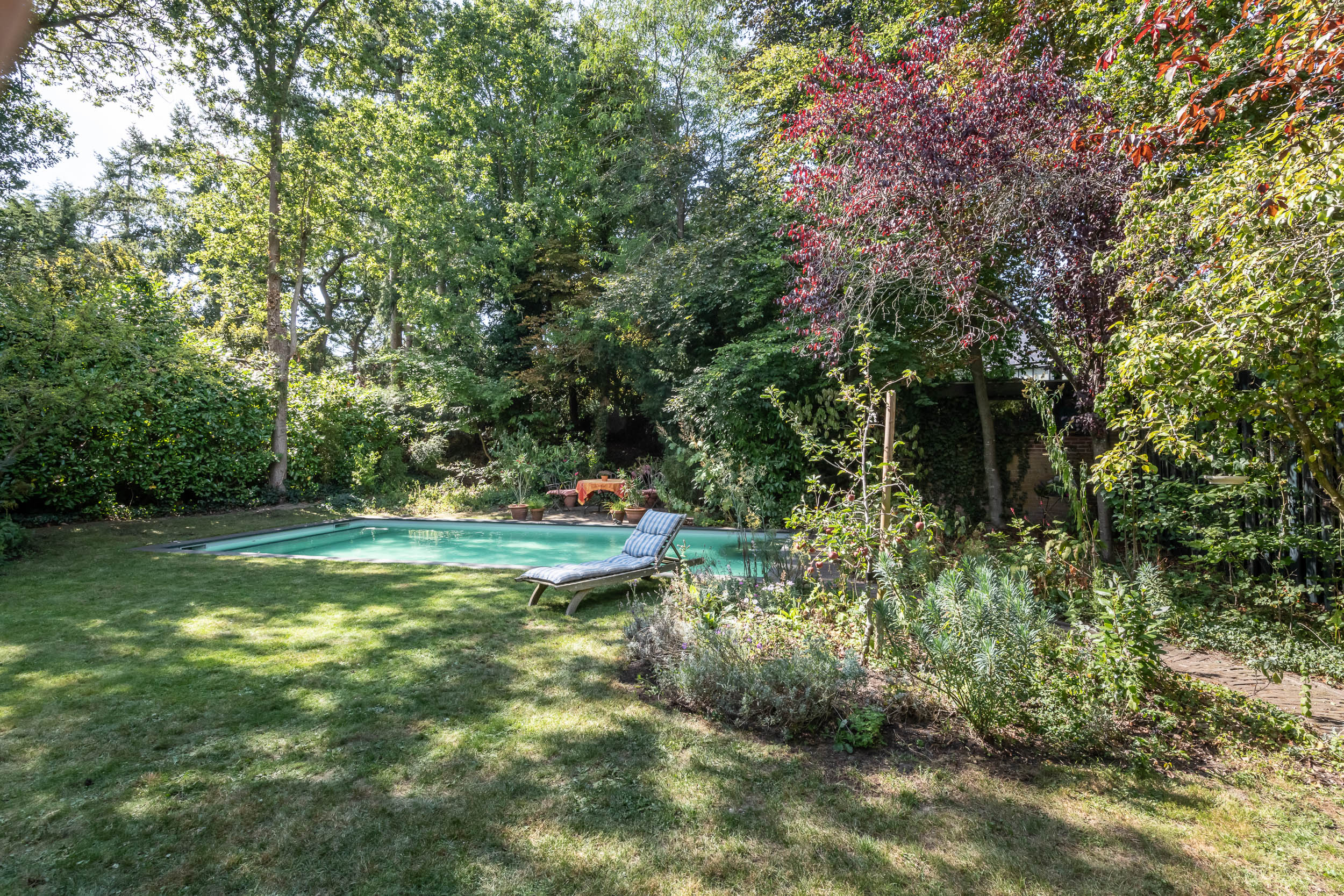 This well-maintained, semi-detached distinctive and uniquely designed villa with swimming pool and garage on a large plot of over 1,000 m² is located on the green and quiet Grenslaan. All living areas are beautifully situated facing the sun (west and south side). A family home par excellence: 6 bedrooms and 2 bathrooms! The extension on the side of the house (which completely matches the style of the main house) has created plenty of space on the ground floor for an extra room, such as a playroom, TV room or study. The beautifully landscaped garden has several terraces, is in a sunny location facing the west and offers complete privacy! At the rear of the garden, where the plot borders Wikkelaan, there is parking space for two cars on private land with two private charging stations.