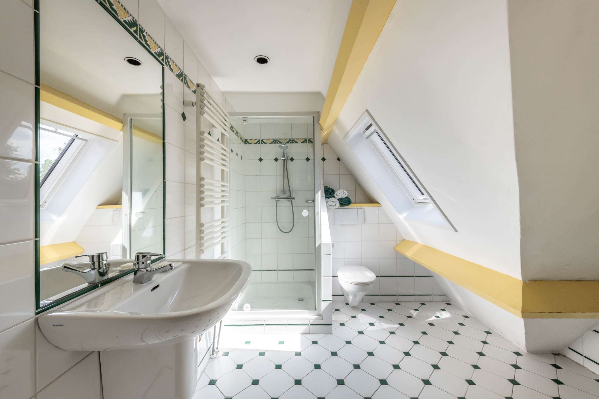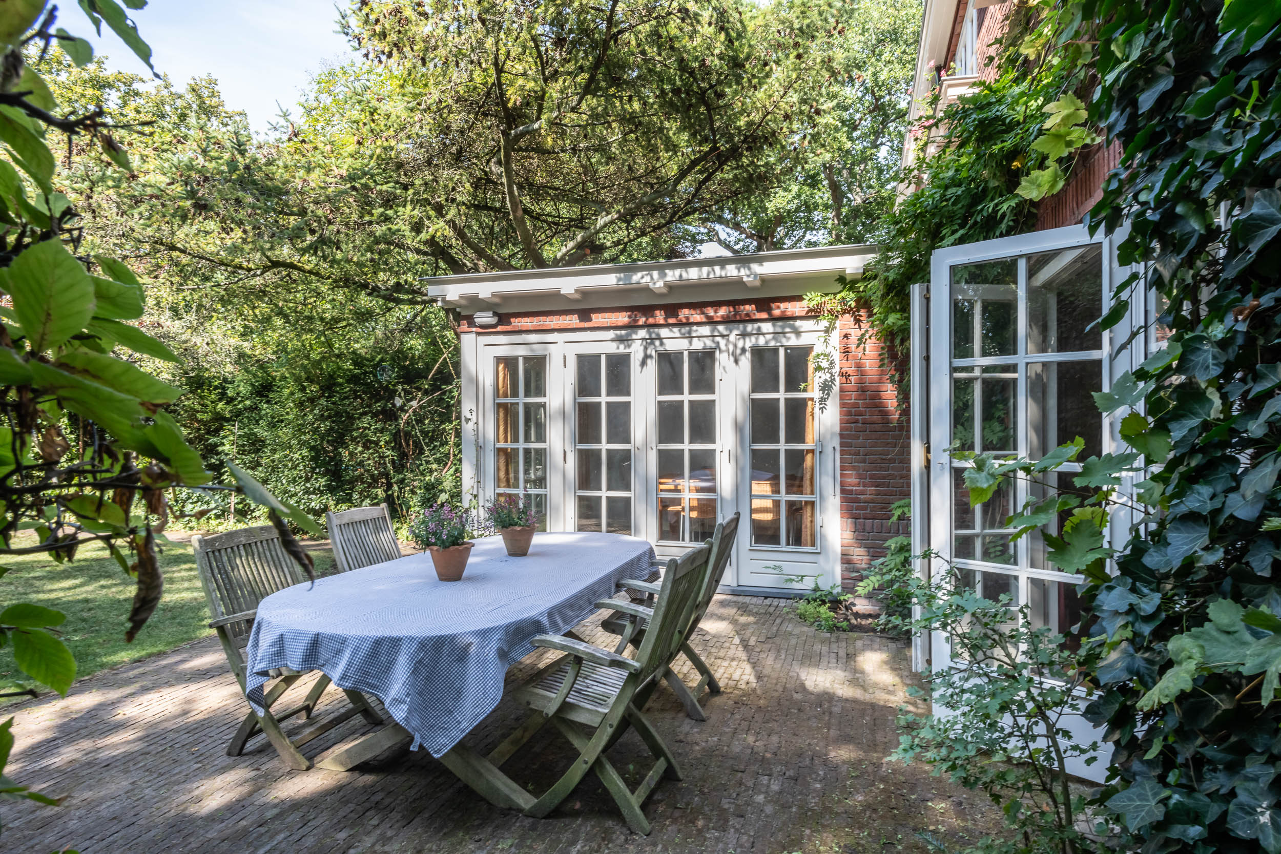 Schools, shops, the railway station and sports facilities are all within cycling distance, as are the beach and town. In short, wonderful living in a green area with everything within easy reach.