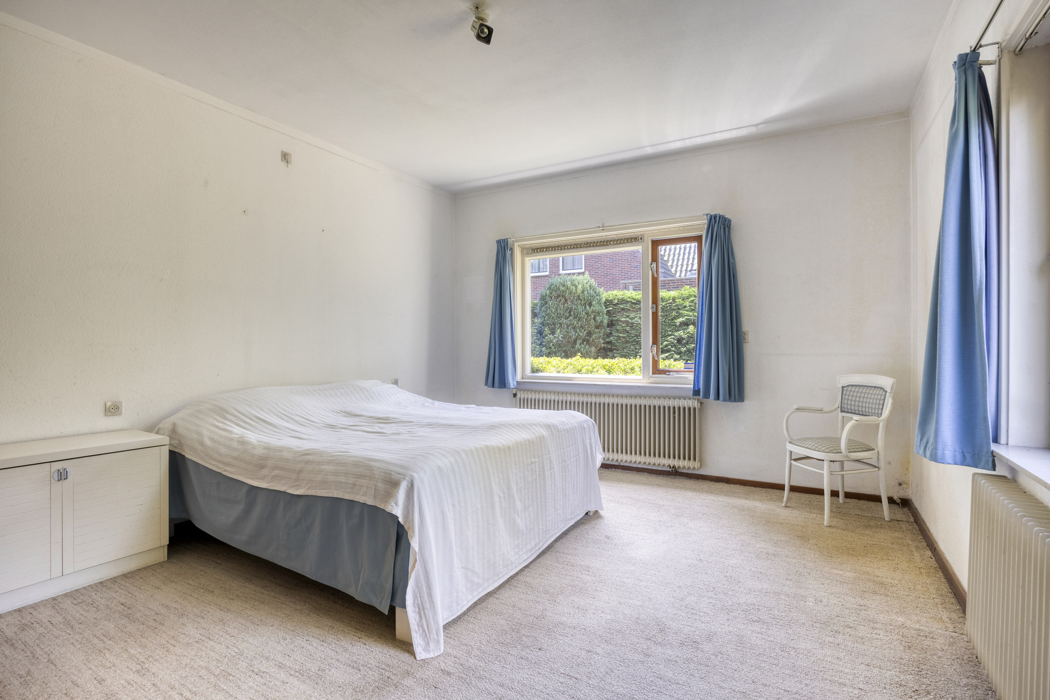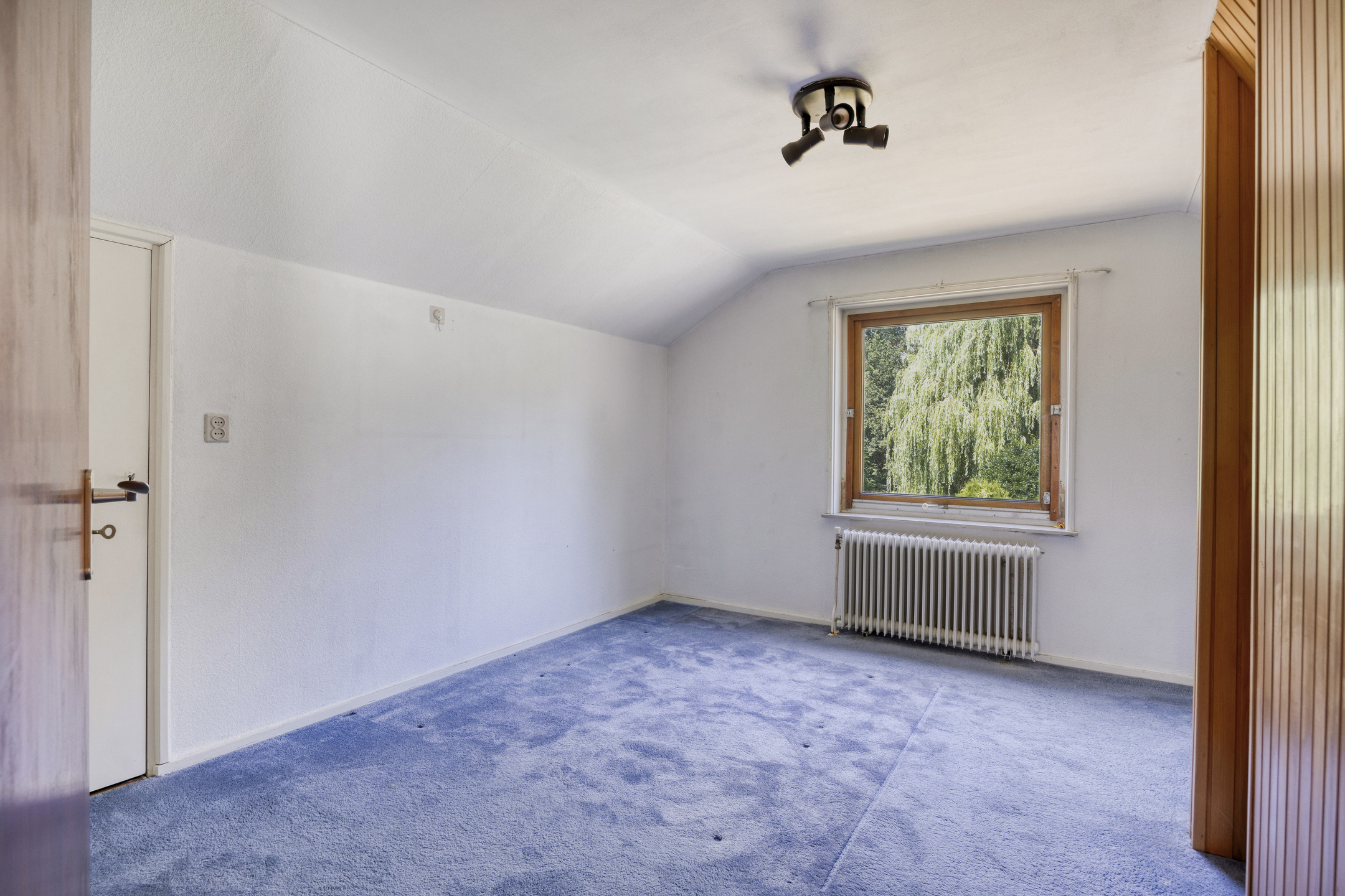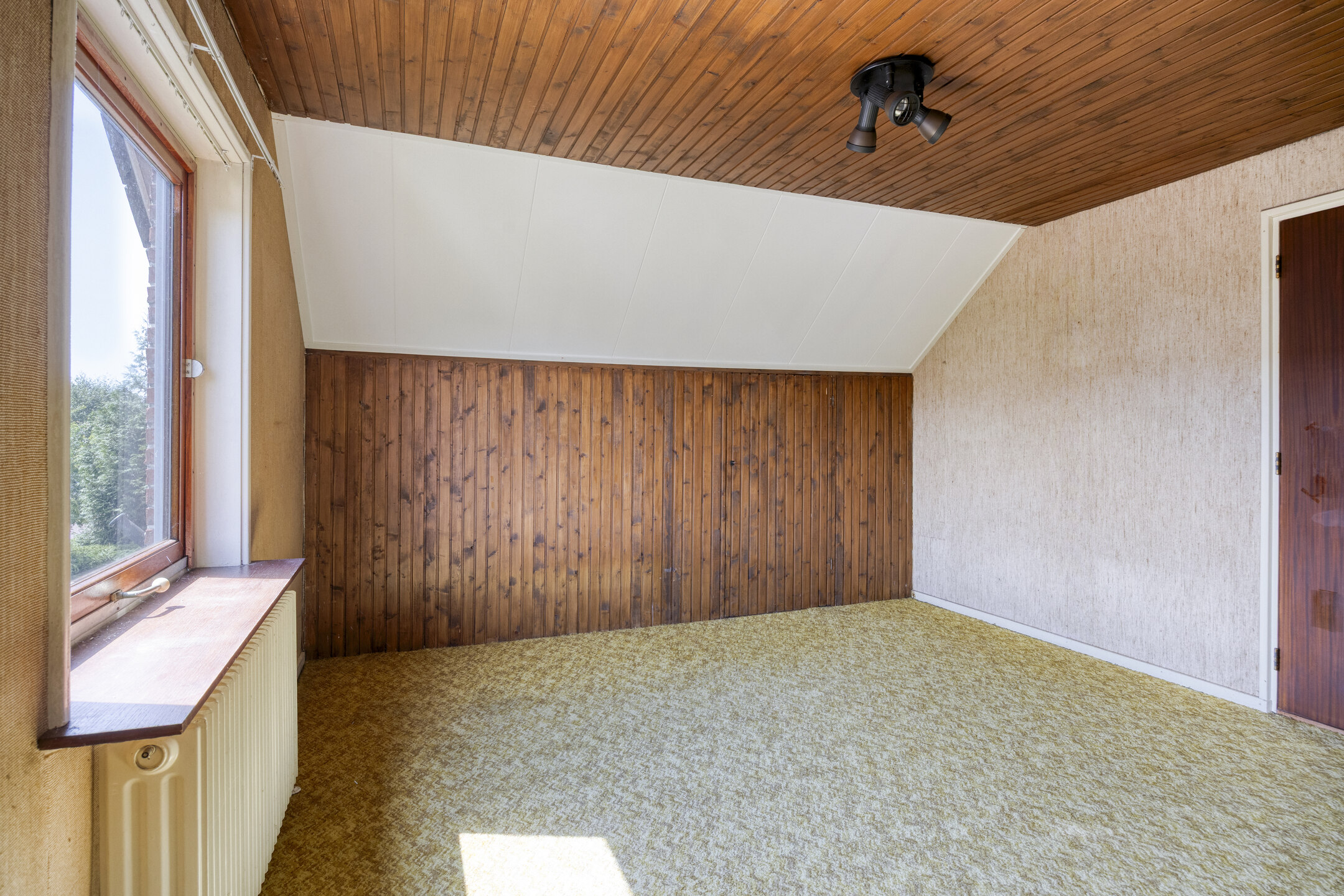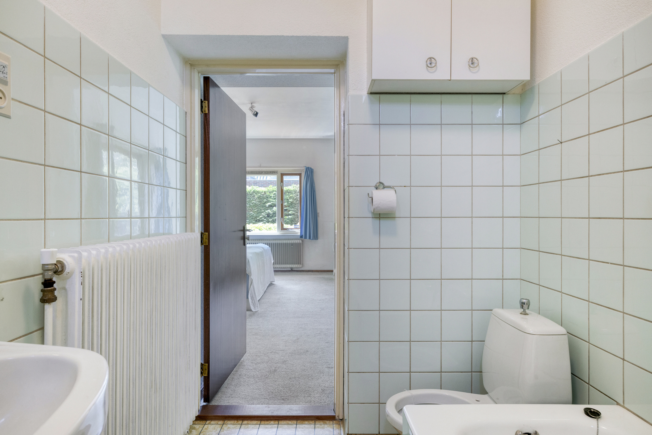 Upon arrival, you can park your car on your private driveway. The large driveway leads to the entrance of the home, opening into a hallway that provides access to various rooms on the ground floor. To the right of the hallway, you'll find two bedrooms. The larger of the two is very spacious and features an en-suite bathroom with a bathtub, toilet, and double washbasin. The second room is perfectly suited as a child’s bedroom, office, or hobby room. This layout also makes the home ideal for single-level living or working from home. Next to the second bedroom is access to the cellar storage.