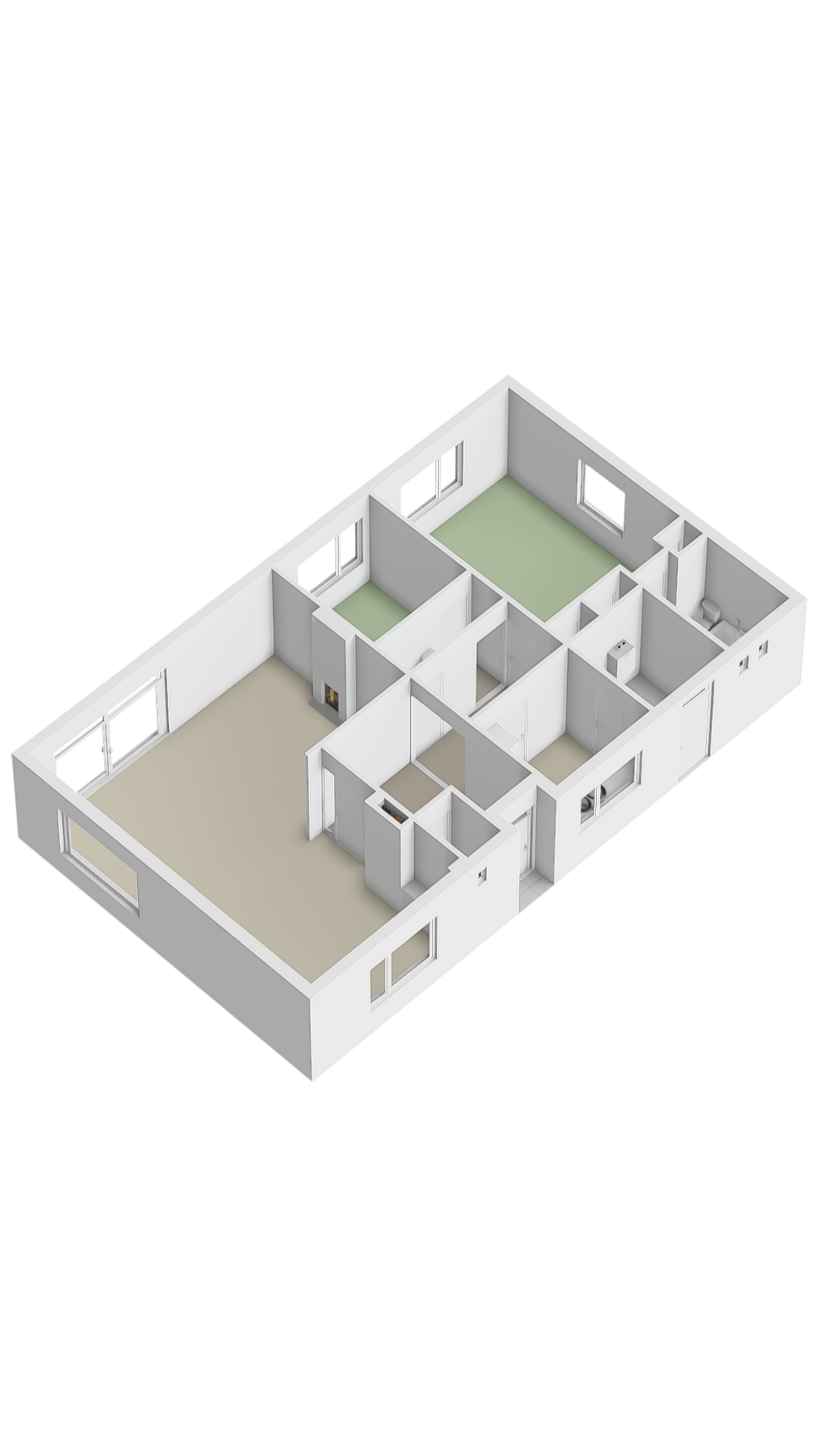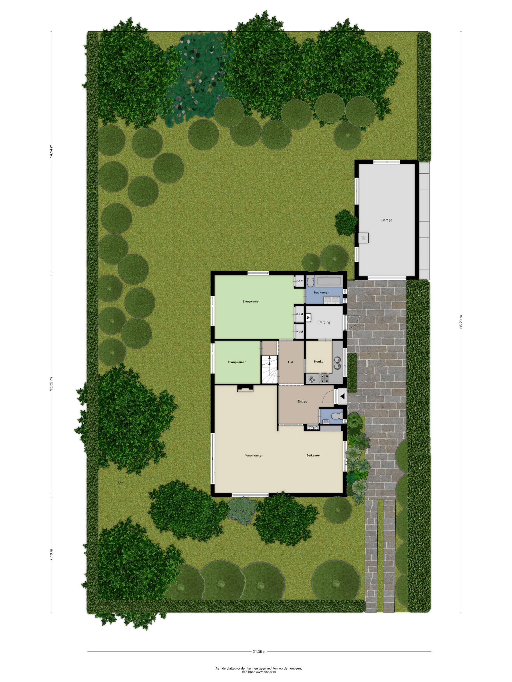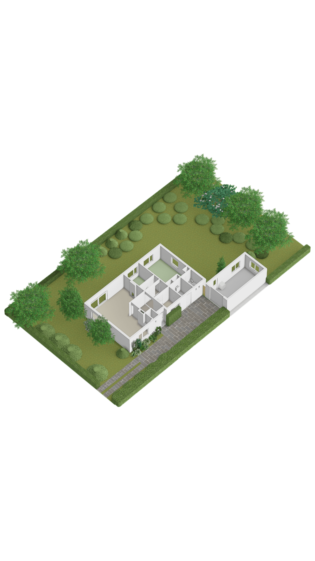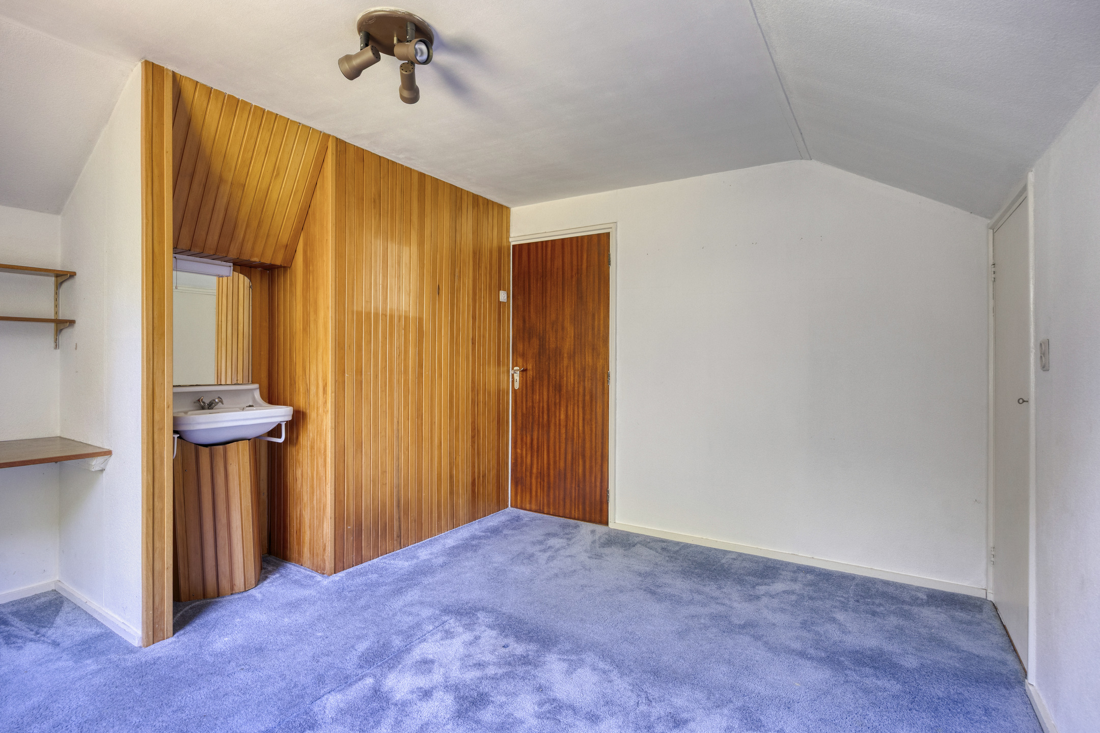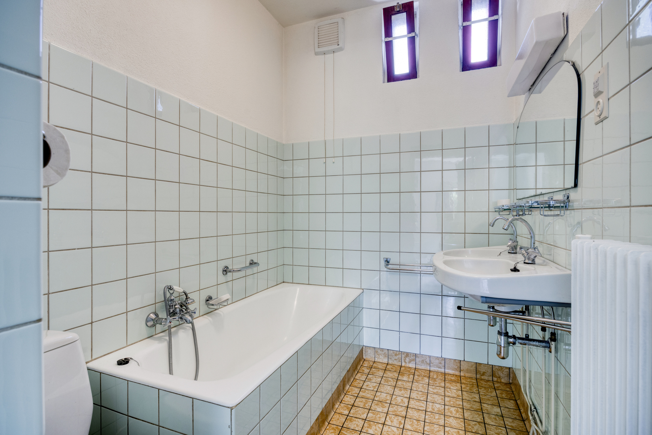 Upon arrival, you can park your car on your private driveway. The large driveway leads to the entrance of the home, opening into a hallway that provides access to various rooms on the ground floor. To the right of the hallway, you'll find two bedrooms. The larger of the two is very spacious and features an en-suite bathroom with a bathtub, toilet, and double washbasin. The second room is perfectly suited as a child’s bedroom, office, or hobby room. This layout also makes the home ideal for single-level living or working from home. Next to the second bedroom is access to the cellar storage.