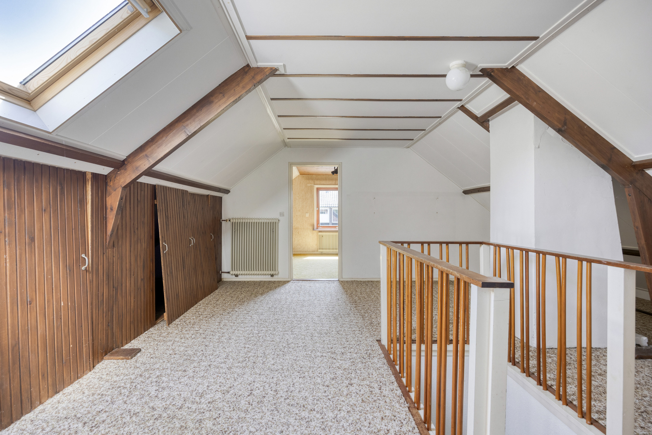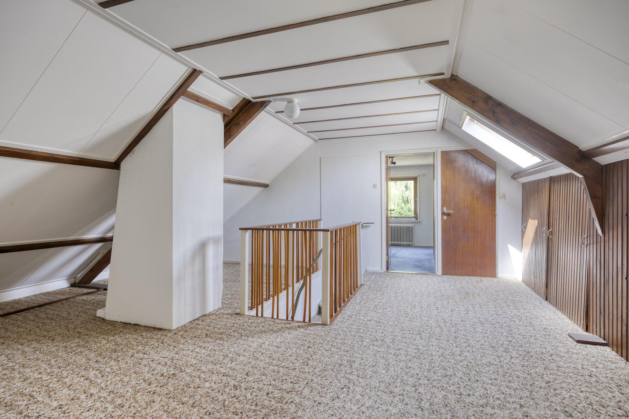 A staircase in the hallway leads to the first floor. The large landing offers plenty of storage space in the eaves, access to a separate shower room, and two more generously sized bedrooms with built-in wardrobes. The size of the landing allows for an easy reconfiguration to create additional bedrooms and/or a bathroom on this floor. This makes the house not only perfect for families but also ideal for hosting guests or creating dedicated work or hobby spaces.