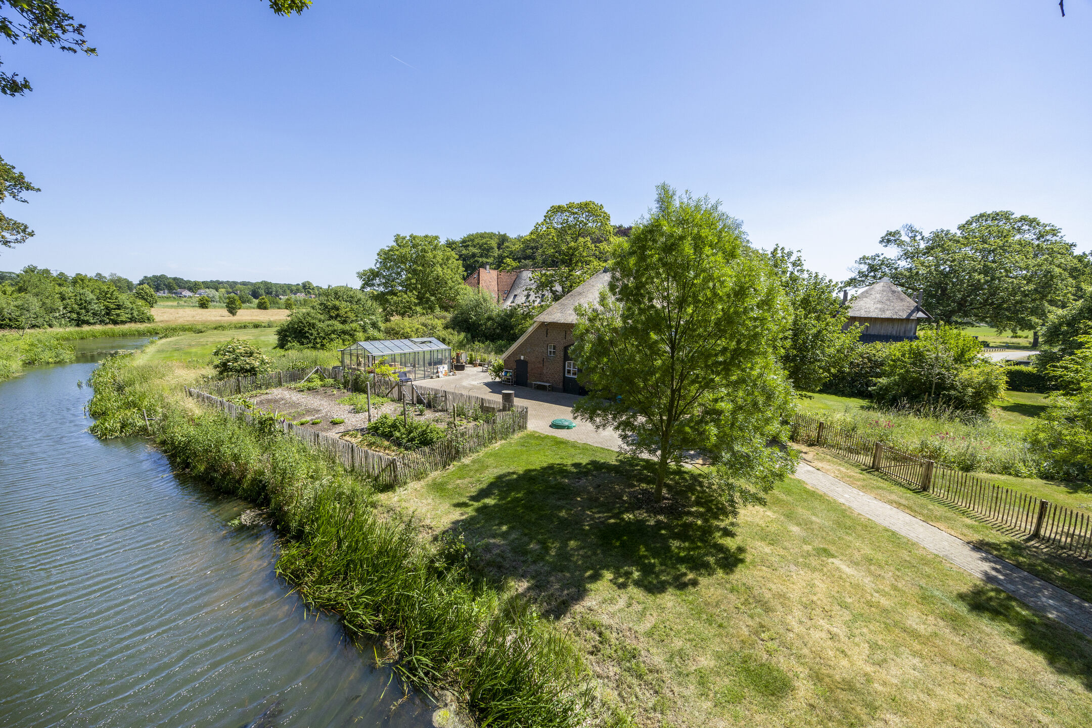 After a long life - centuries - in 2011 this beautiful farmstead was converted into a high-quality finished and optimally preserved residence. Because the agricultural use was removed, the landscape was also changed. For example, it was decided at the time to restore the historic moat and route it around the house again.