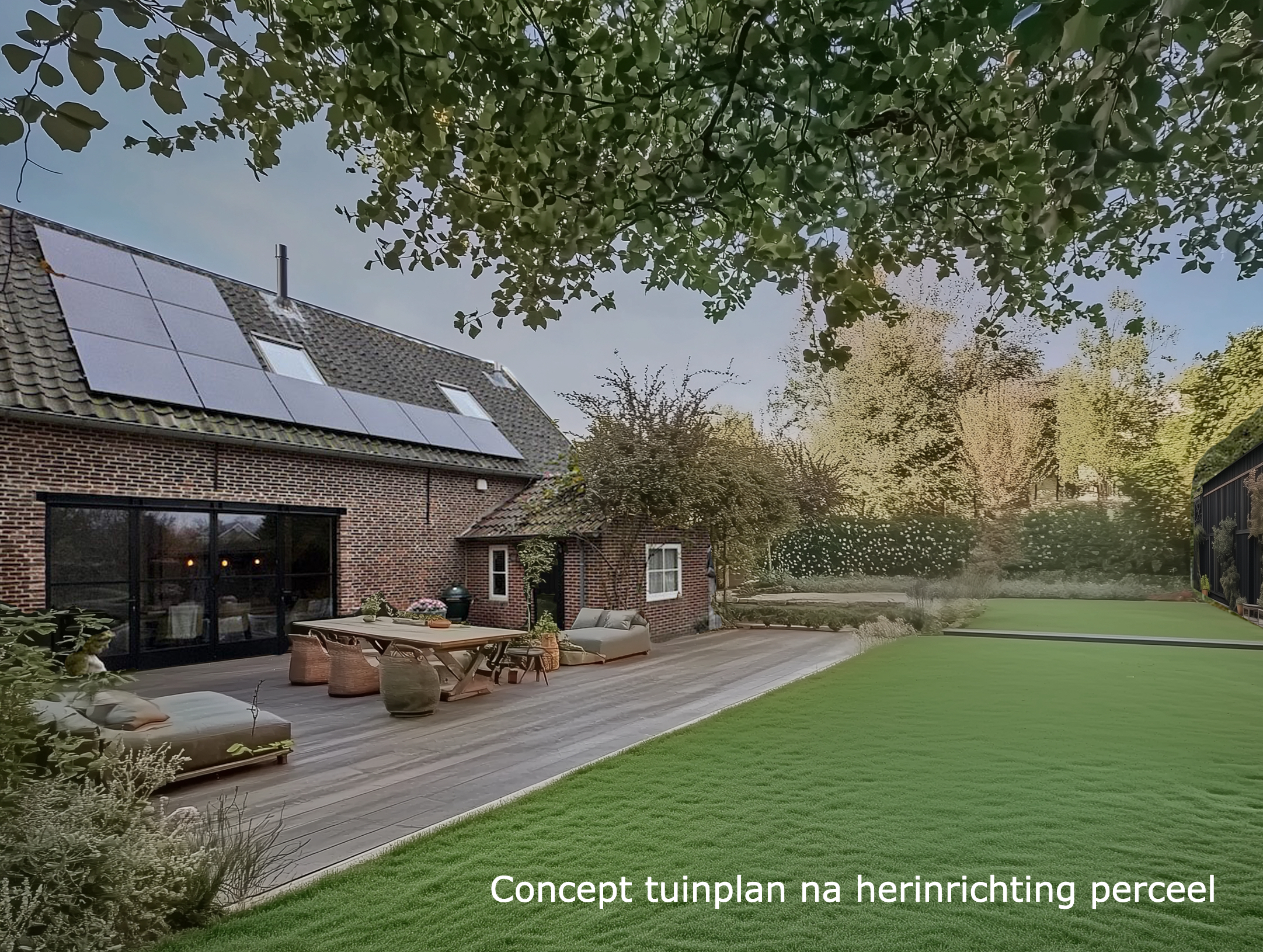 In de fotoreportage is hiervan een visual opgenomen, evenals een visual van het concept tuinplan in deze nieuwe situatie.