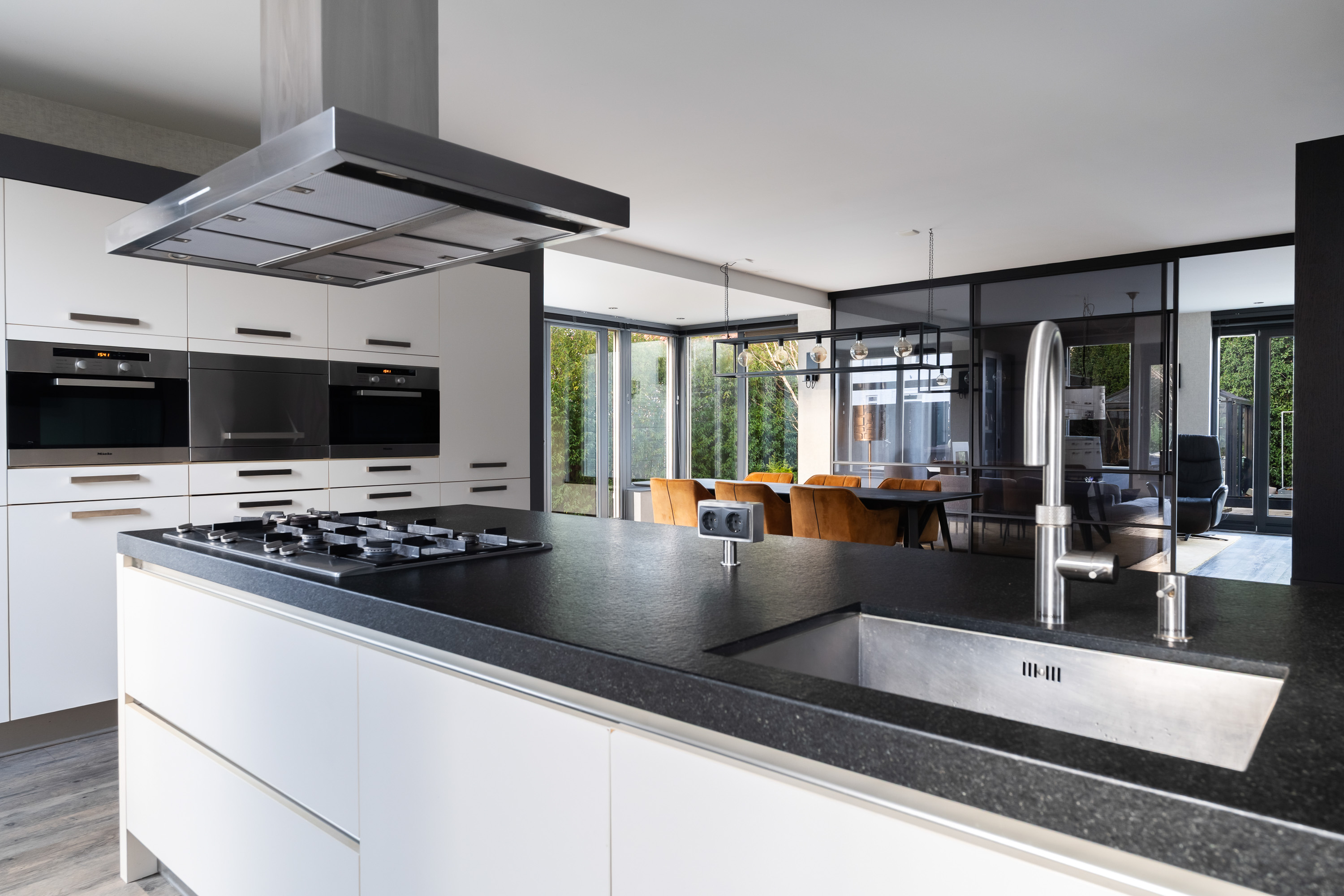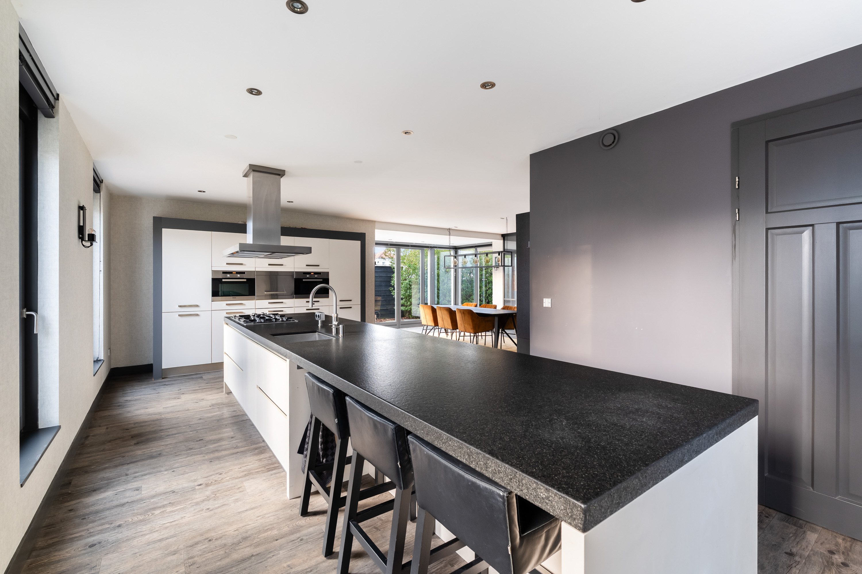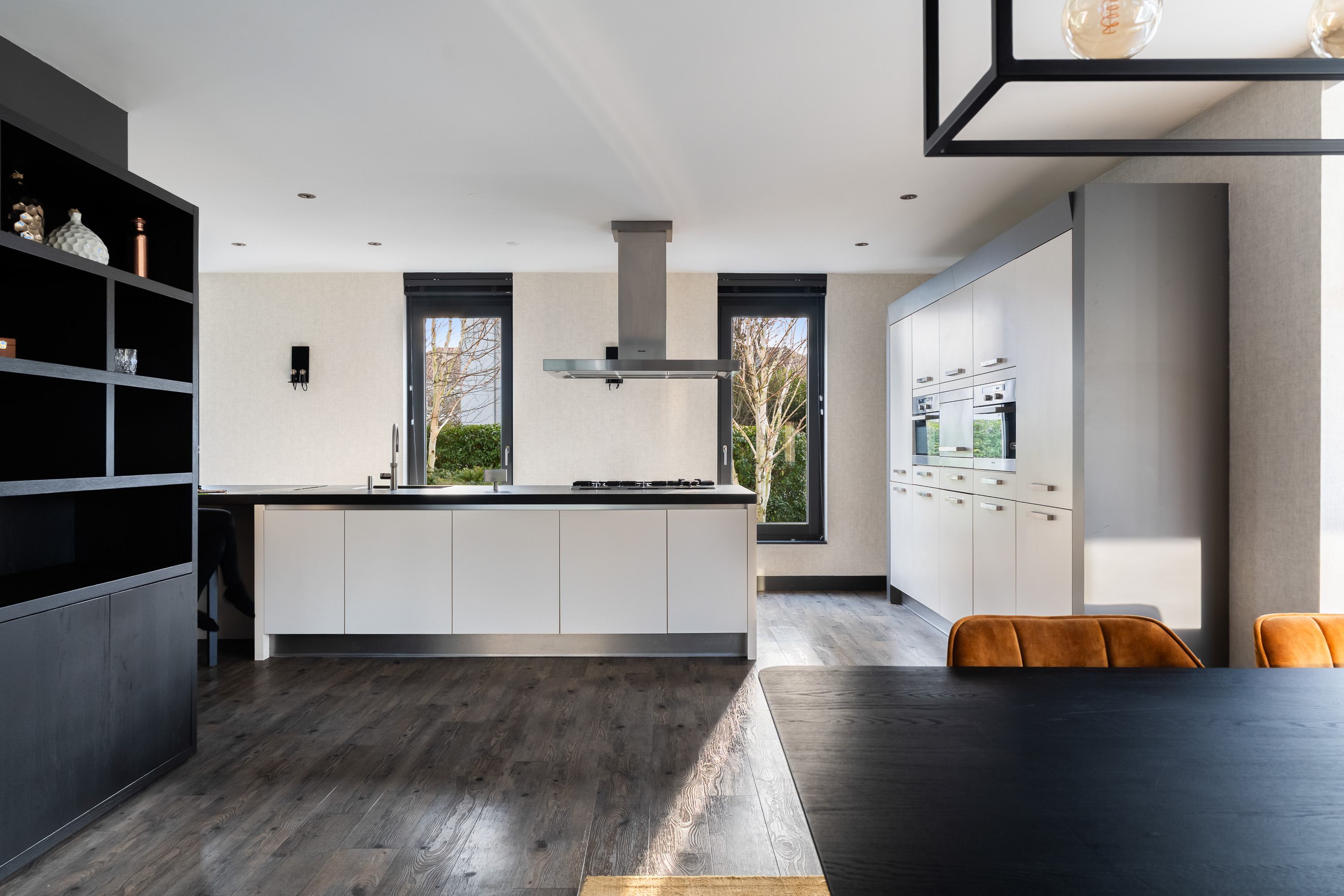 In addition, the kitchen features a Quooker and a water purification system for drinking water. The entire house is fitted with a central water softening system.