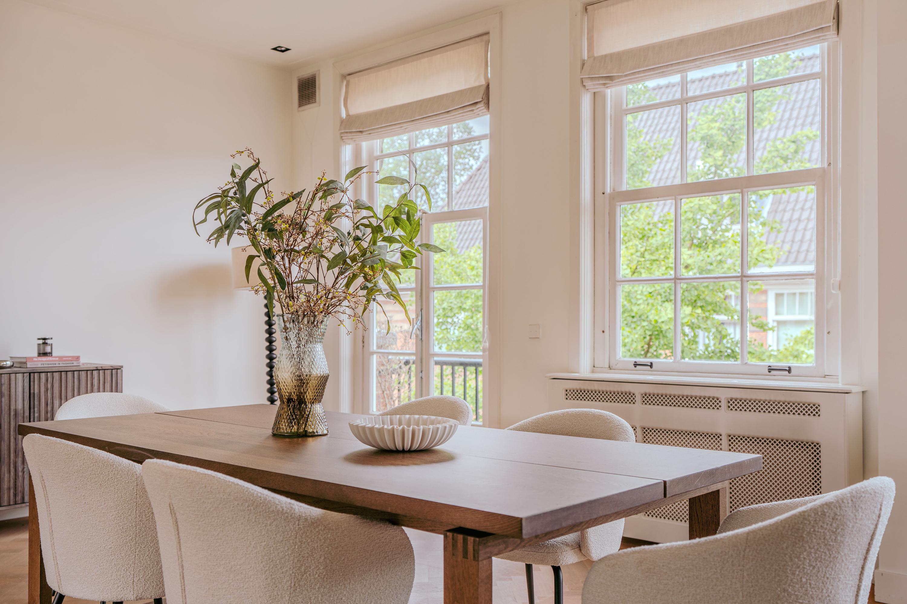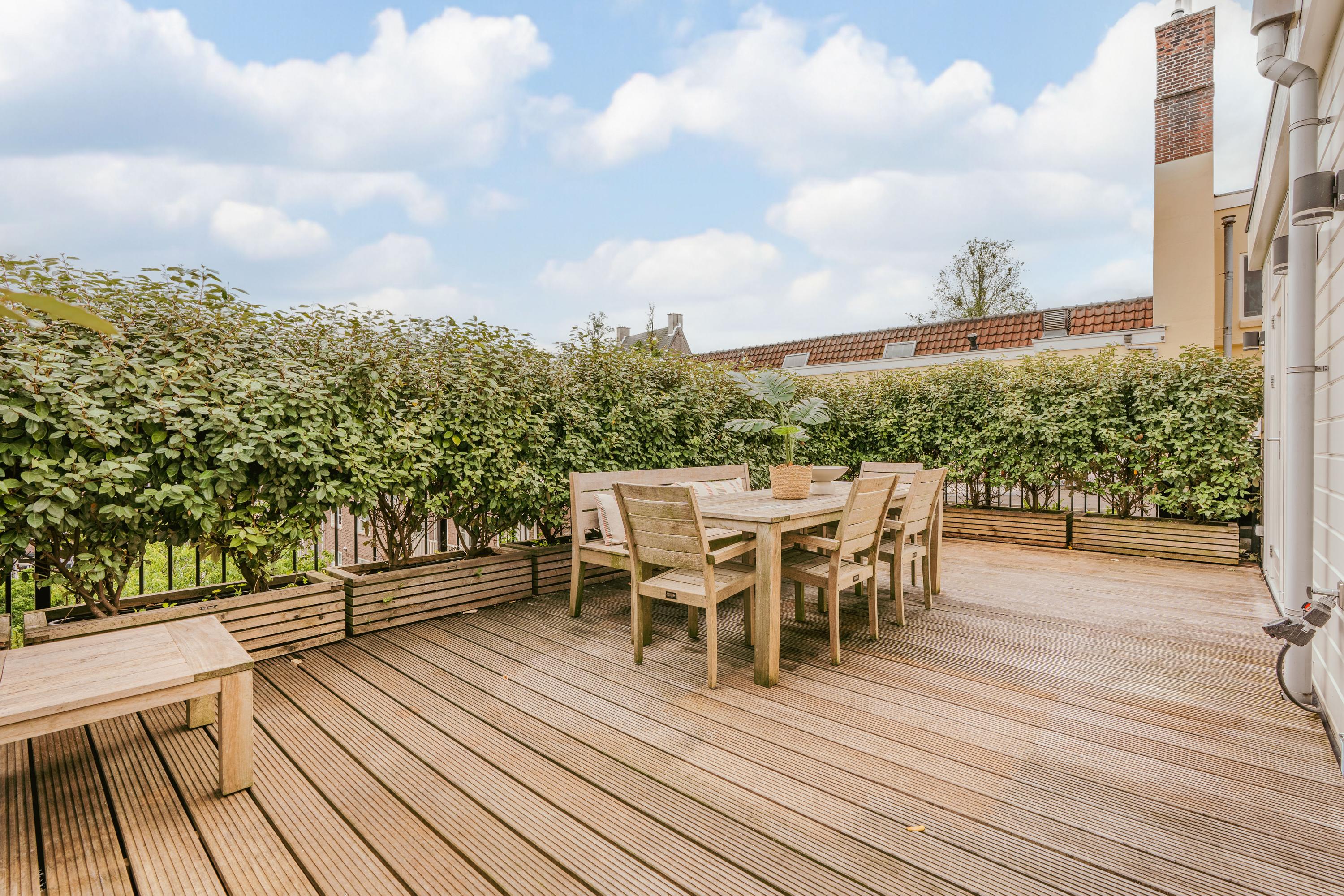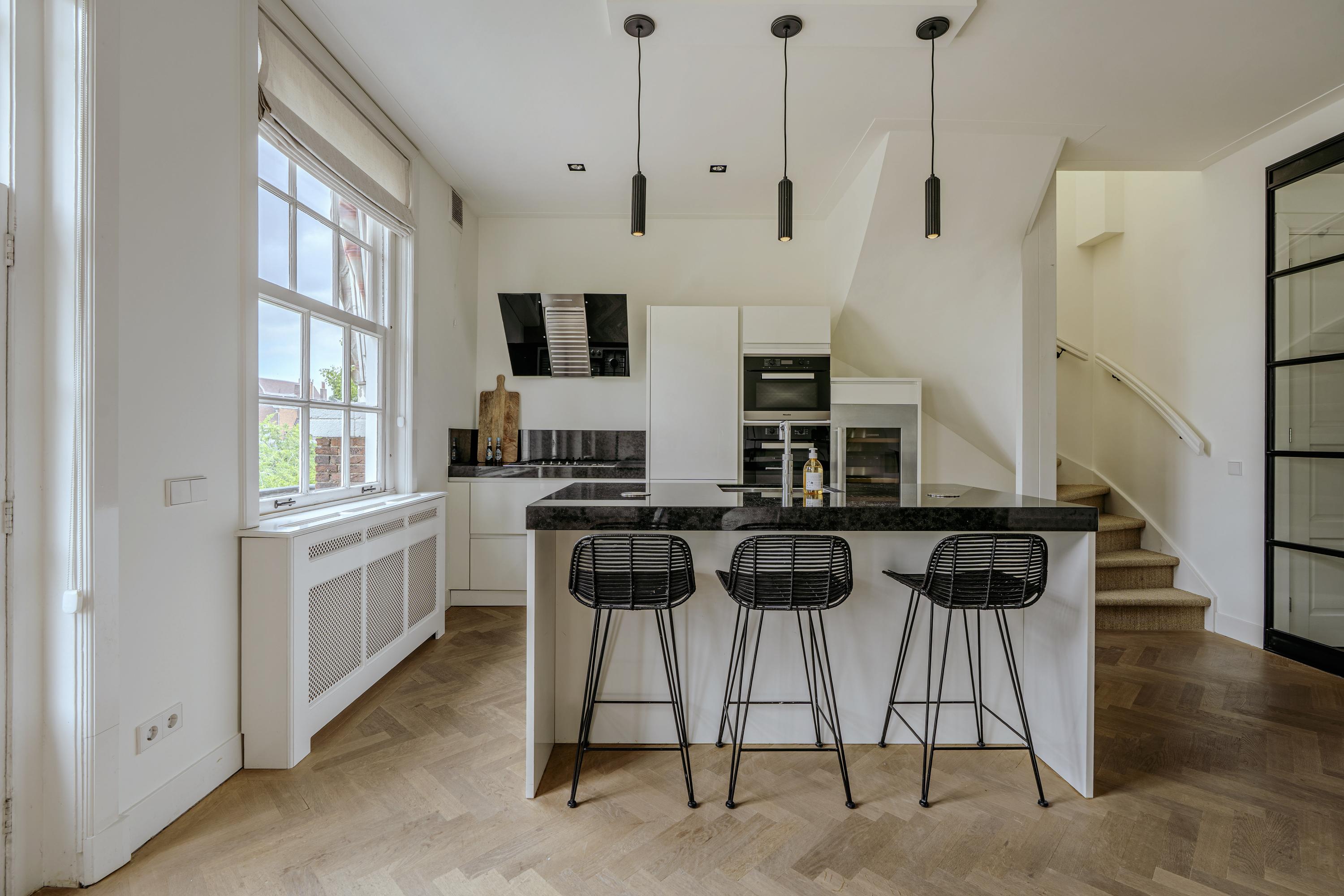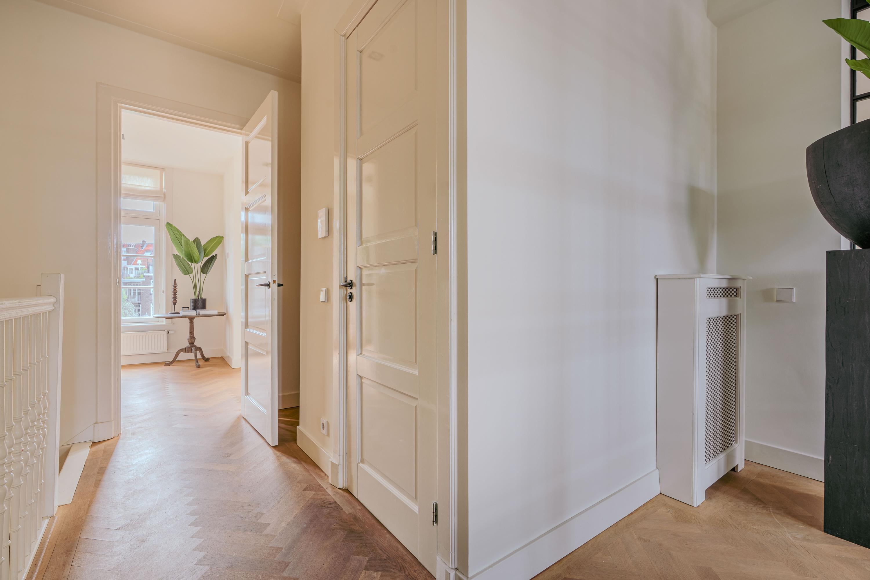 Situated in a quiet street just steps from the vibrant Beethovenstraat, this elegant and light-filled upper-level residence offers a perfect blend of comfort, charm, and functionality. Spread over two floors, the apartment features three bedrooms, a generous living room with open kitchen, and no fewer than three outdoor spaces. An ideal family home for those seeking space, tranquility, and the very best of Amsterdam-Zuid within easy reach.