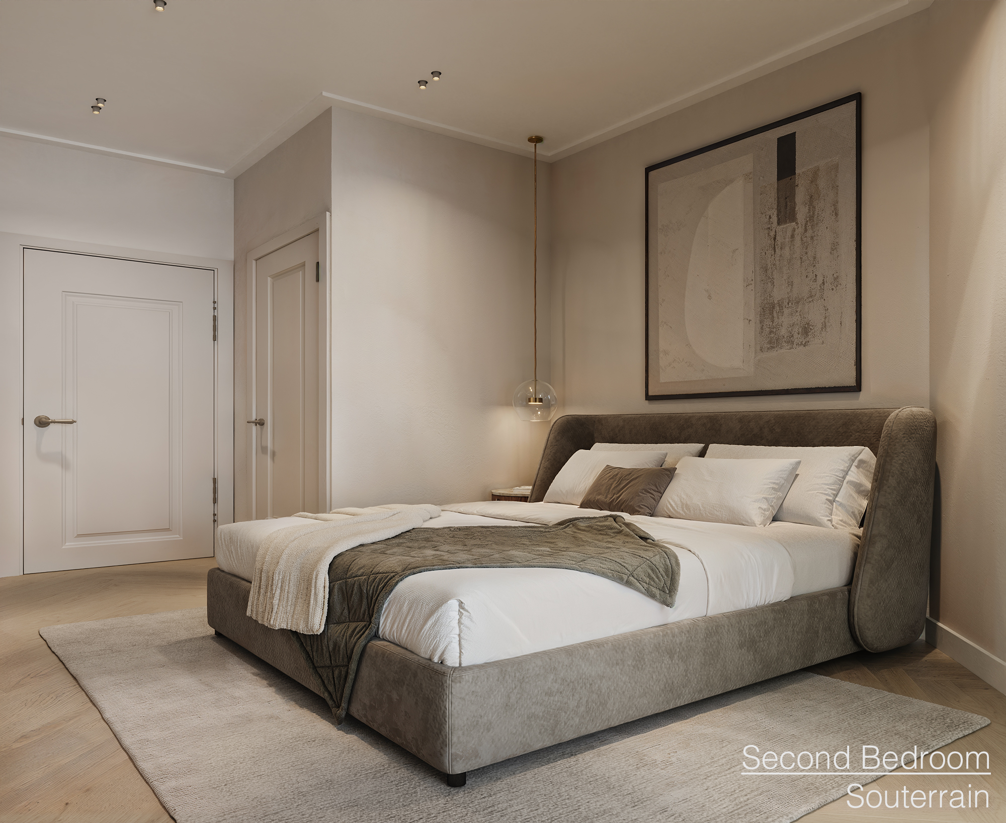 Aan de achterzijde van de woning liggen twee ruime slaapkamers, één aan de voorzijde en één aan de achterzijde. Beide kamers zijn royaal van formaat en profiteren eveneens van veel lichtinval door de grote ramen.