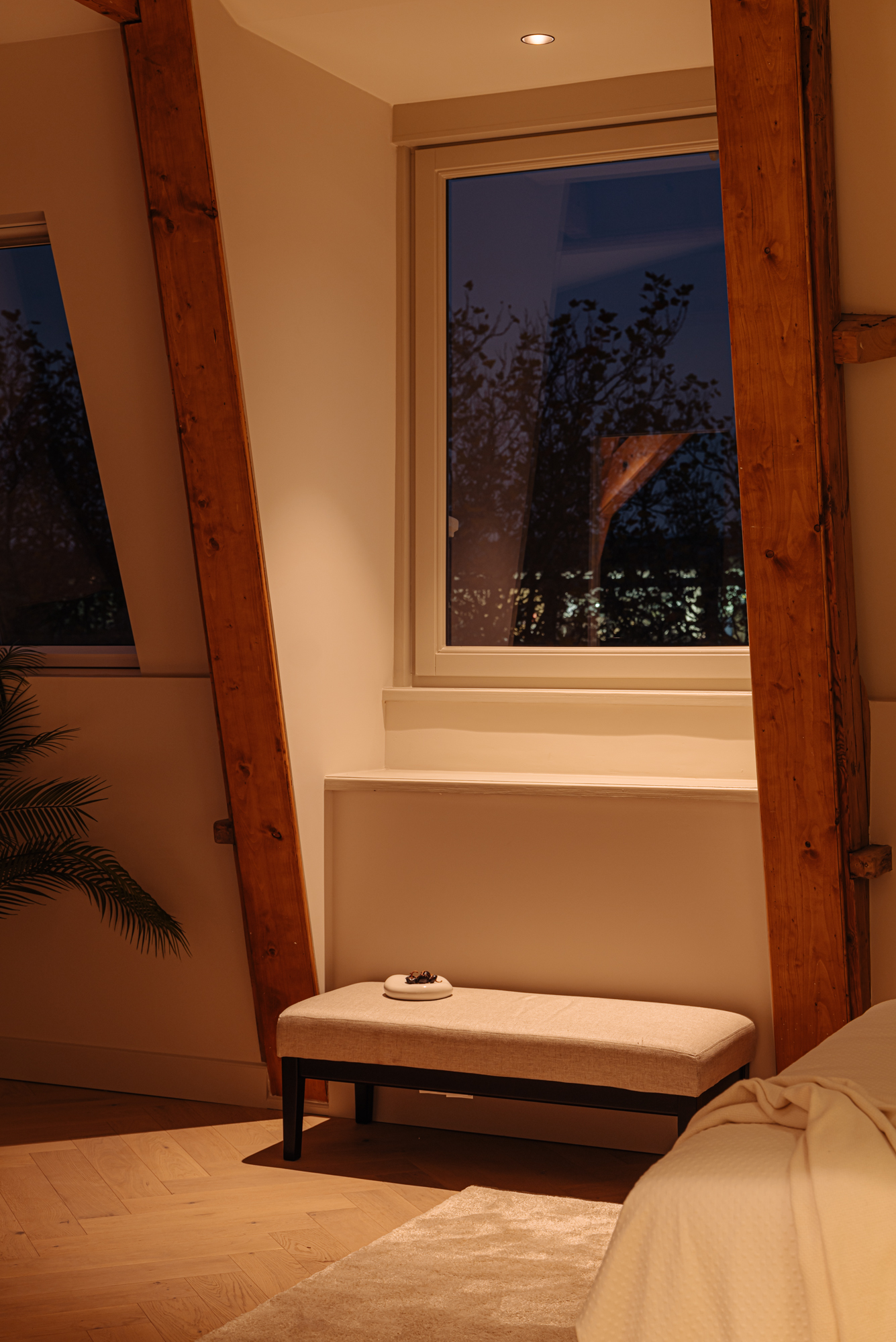 A luxury penthouse of approx. 148 m², with two (and the option for three) bedrooms, two bathrooms, a large south-facing roof terrace, an open-plan kitchen with a cooking island and internal storage space. The apartment features carefully selected, high-end materials that create a sense of warmth and comfort. Luxury herringbone floors, high ceilings, subtle tones in the kitchen and bathrooms and a well-thought-out lighting plan create a harmonious and inviting ambiance. The kitchen, with its clean lines and ample storage space, is a perfect combination of style and practical functionality. The building itself is a freehold property.