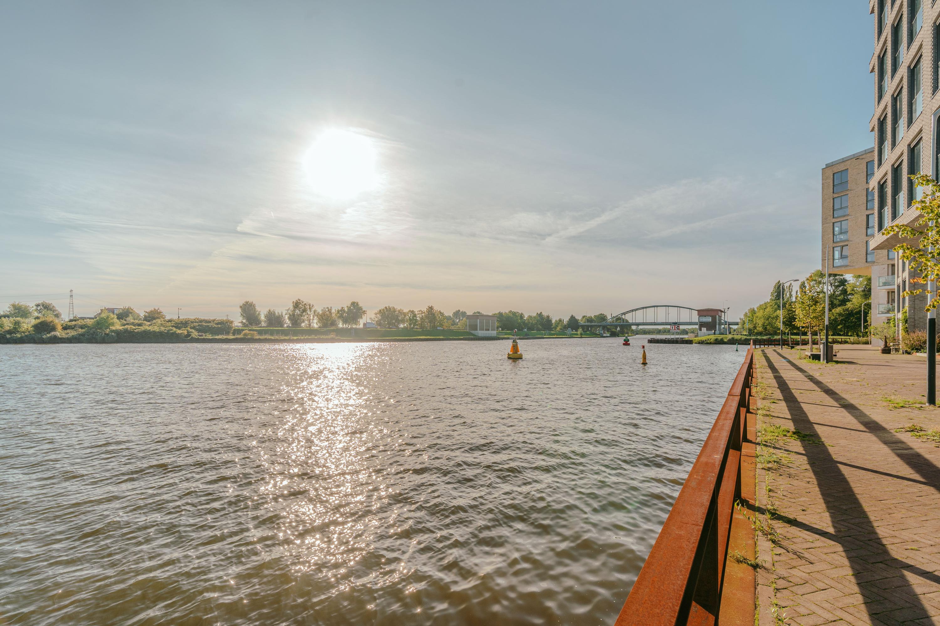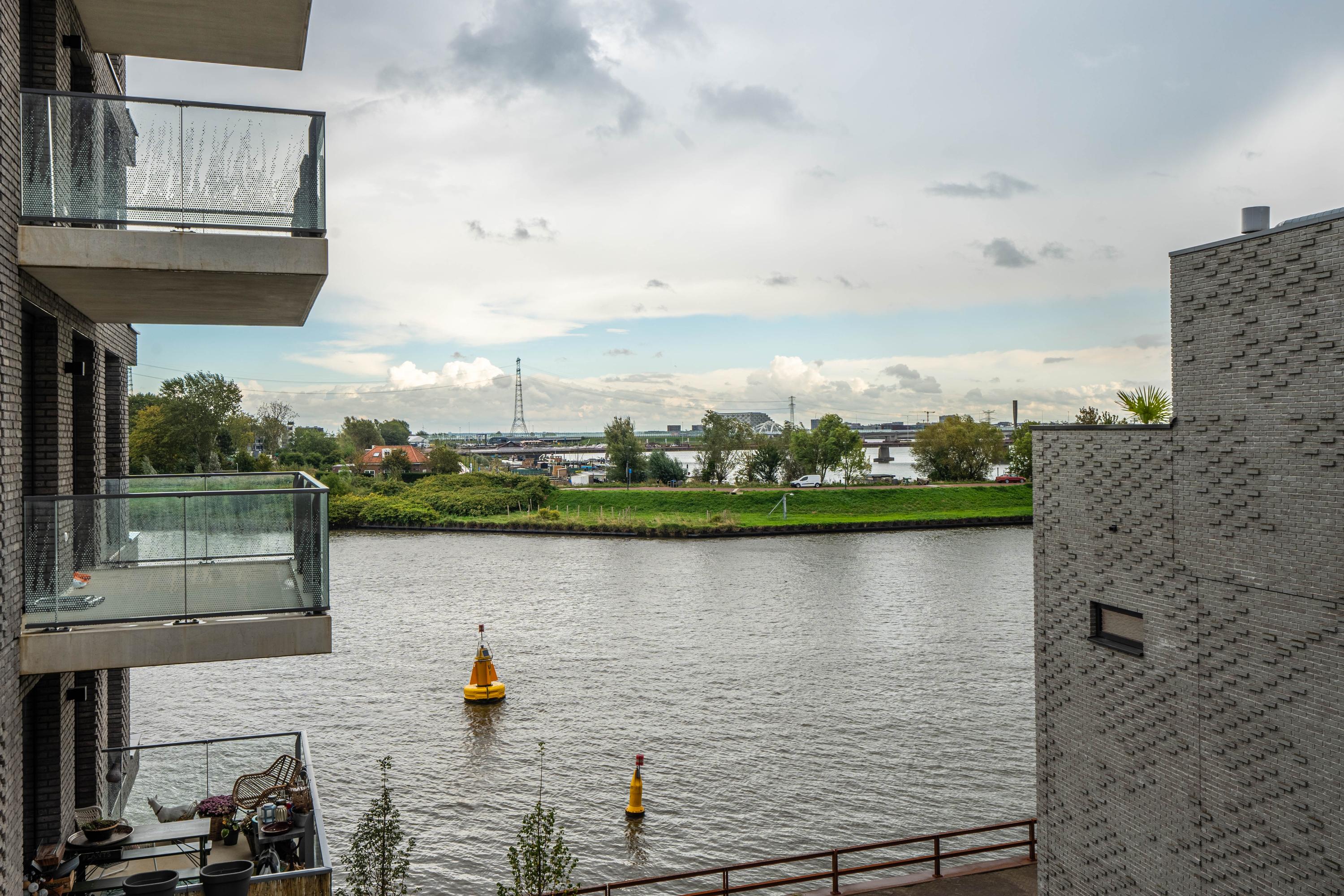 Spacious balcony with views over the Amsterdam-Rhine Canal