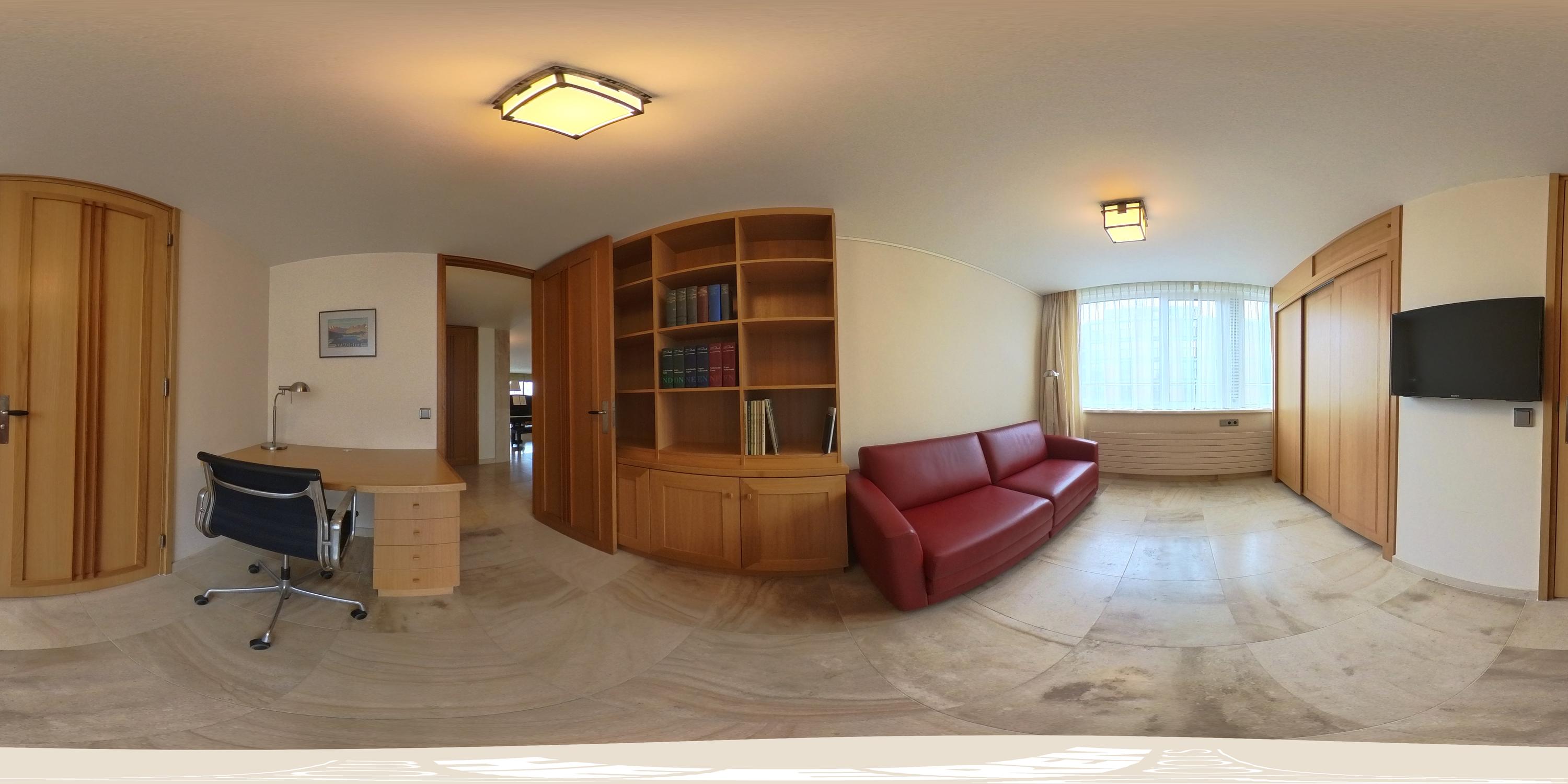 Upon entering, you are greeted by a spacious entrance hall with ample wardrobe storage on the left. From the hall, you proceed to the open-plan kitchen with a dining area. The kitchen features a cooking island with a six-burner induction hob, extractor fan, oven, three refrigerators, microwave, dishwasher, Quooker, and plenty of storage. Floor-to-ceiling glass sliding doors open onto the 25 m² balcony, which is about two meters deep, equipped with electric sunshades, and offers stunning views.