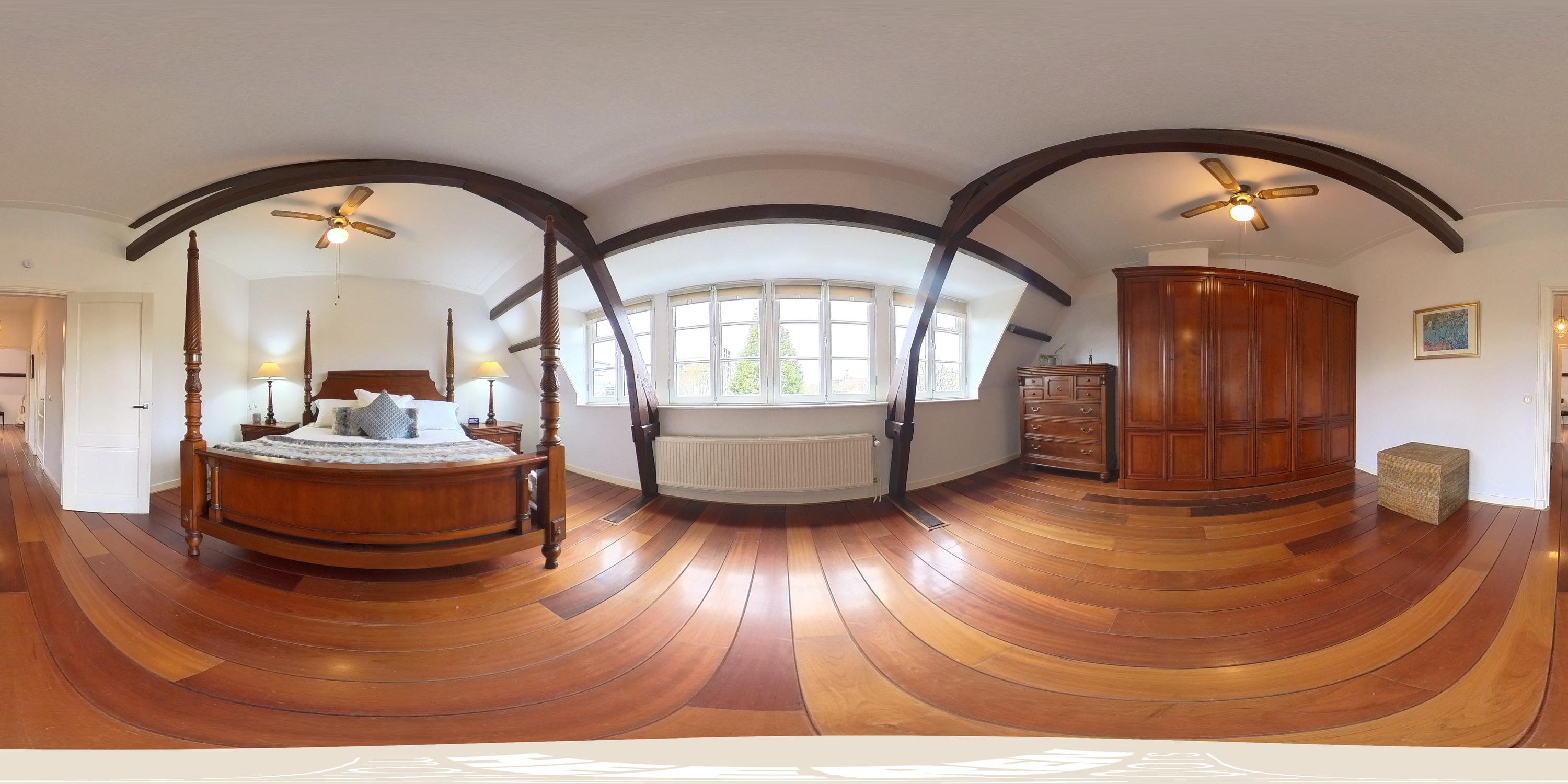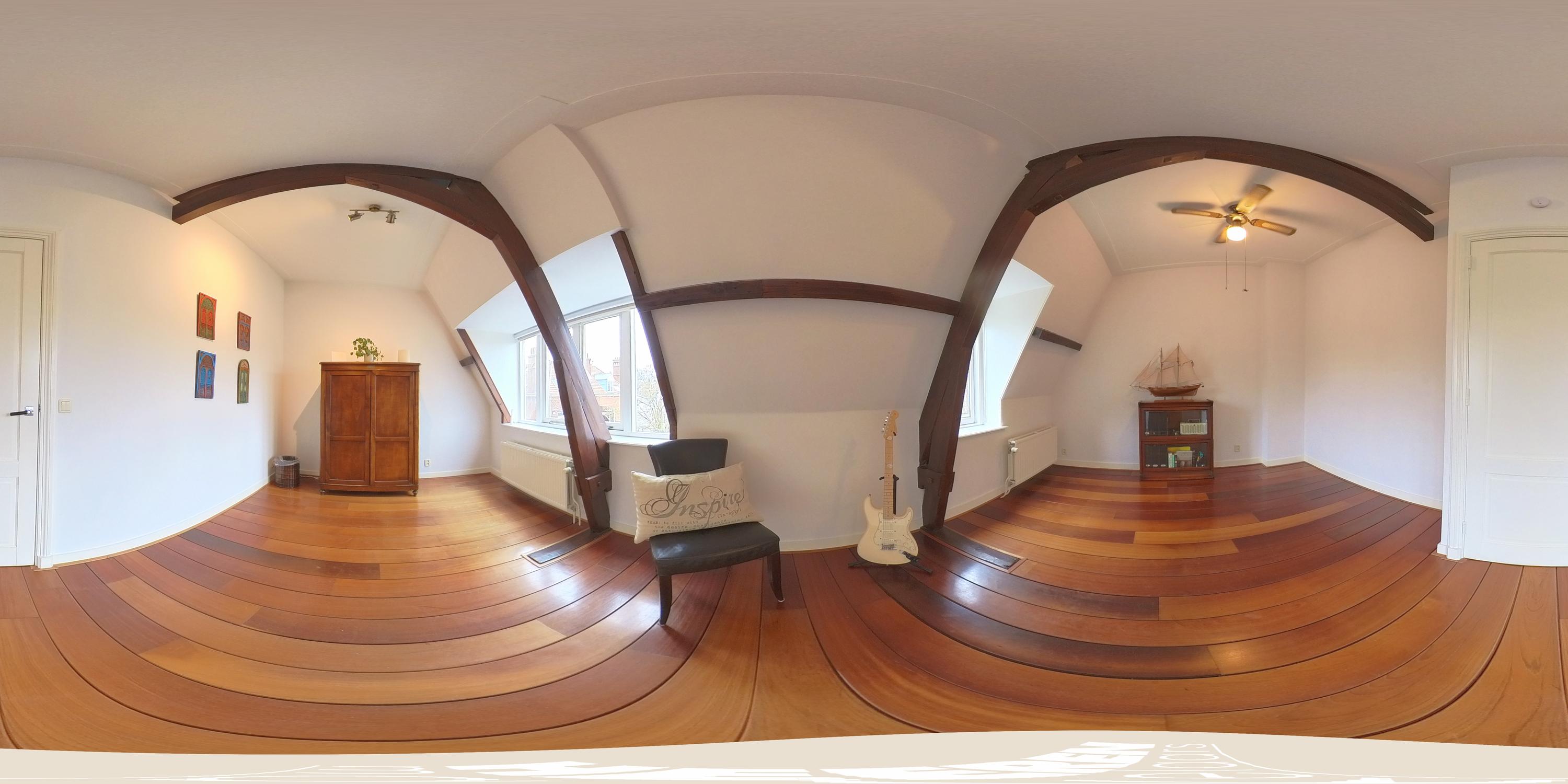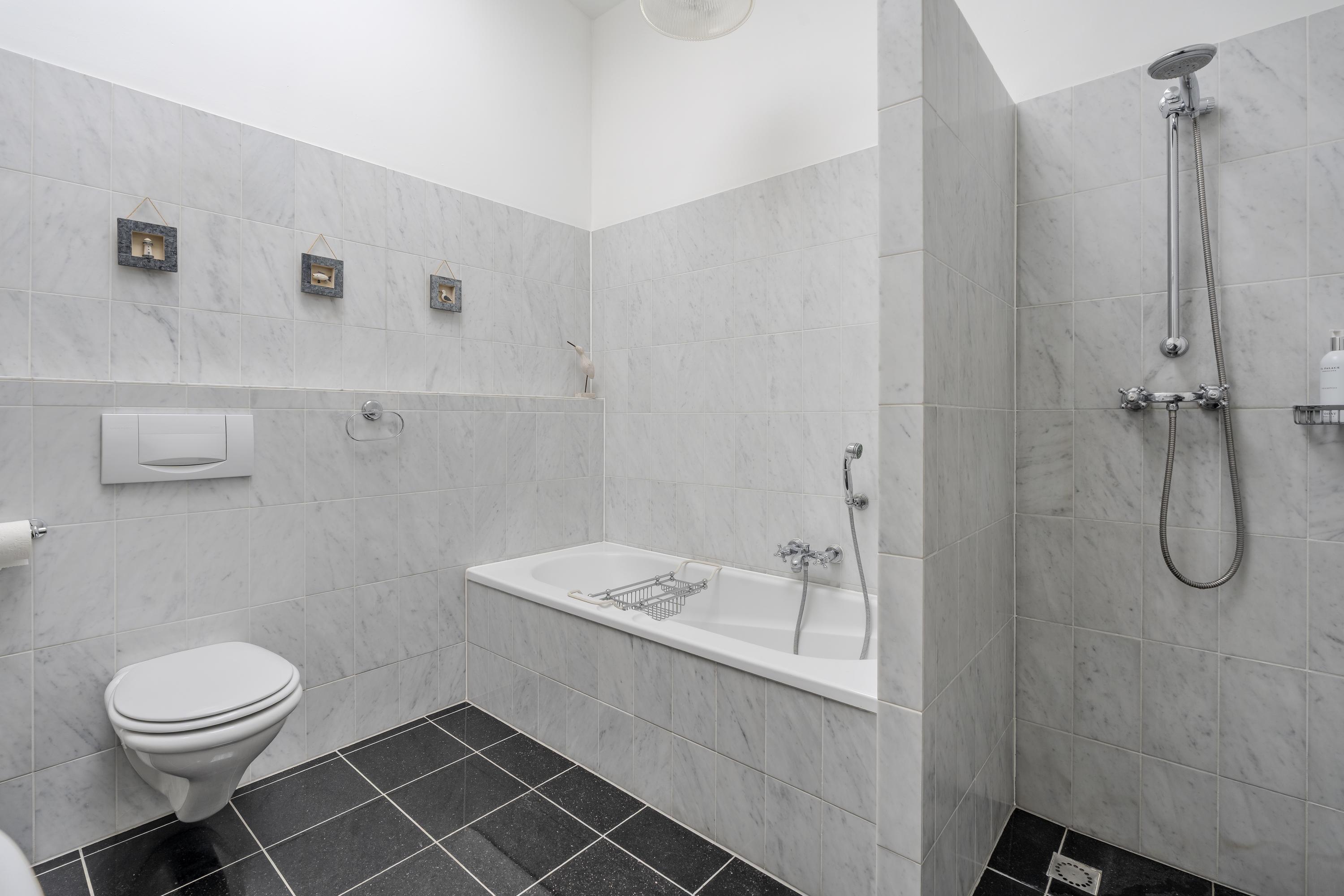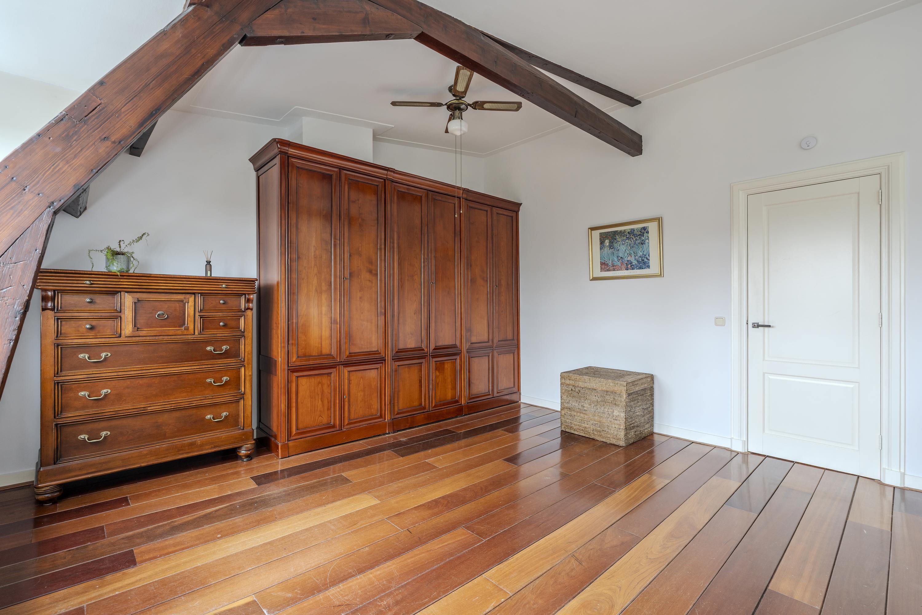 This floor features two well-proportioned bedrooms, each spanning the entire width of the apartment. The front bedroom overlooks the Vondelpark, while the rear bedroom offers a view of the deep inner garden. Both bedrooms beautifully showcase the original wooden construction of the building, and their large windows allow for abundant natural light.