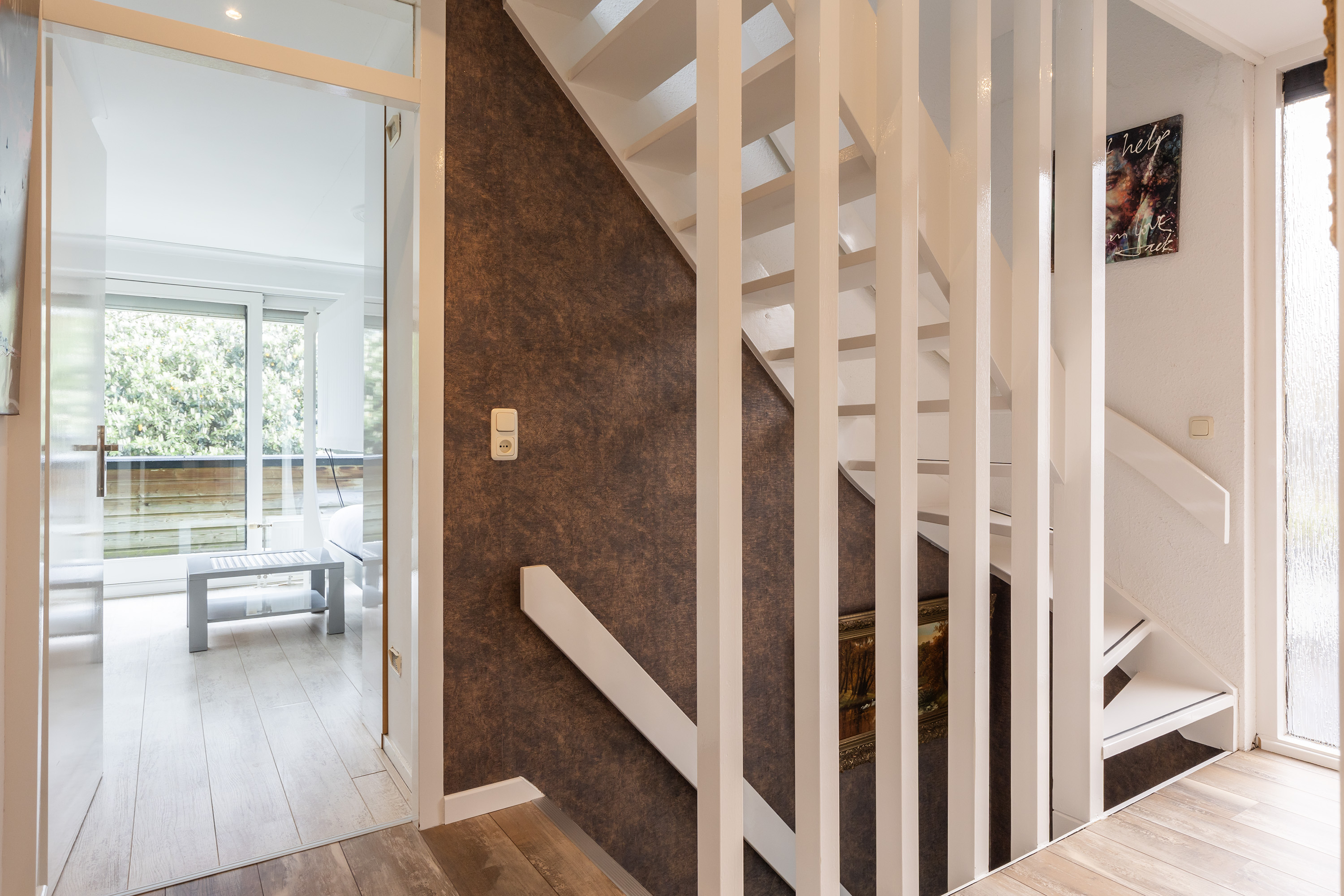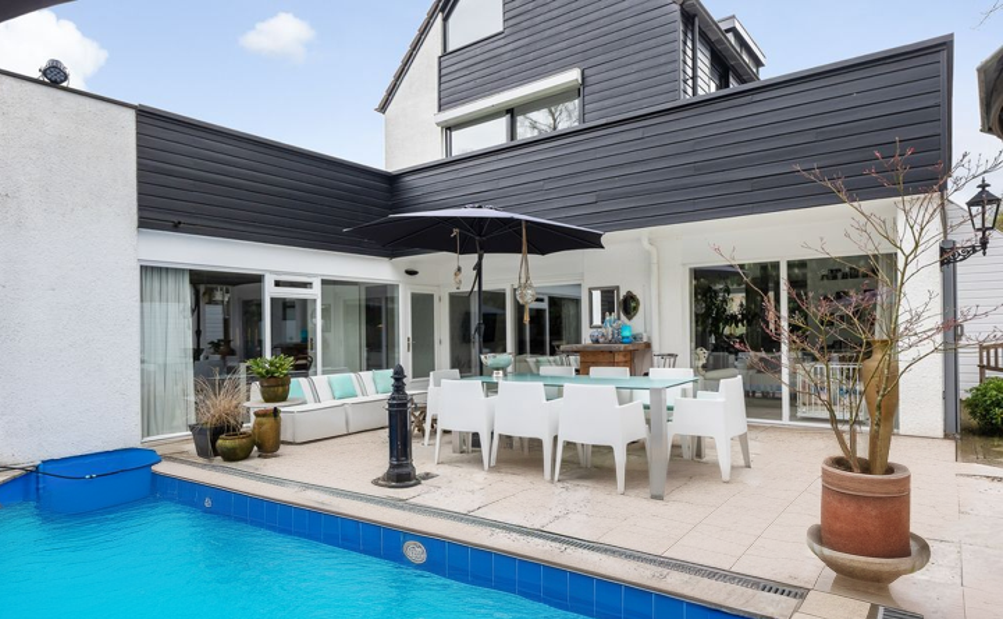 With a living area of no less than 230 m², this property offers exceptional space for both living and working. The house was designed and built in 1987 by an architect as his own home, which is evident in the quality of the construction and the thoughtful layout. The entrance hall with double doors leads to a spacious T-shaped living room and a spacious kitchen-diner, both with underfloor heating. The garden room, insulated former garage, six bedrooms and two bathrooms make the house multifunctional. The many windows provide plenty of light and contribute to the pleasant living environment.