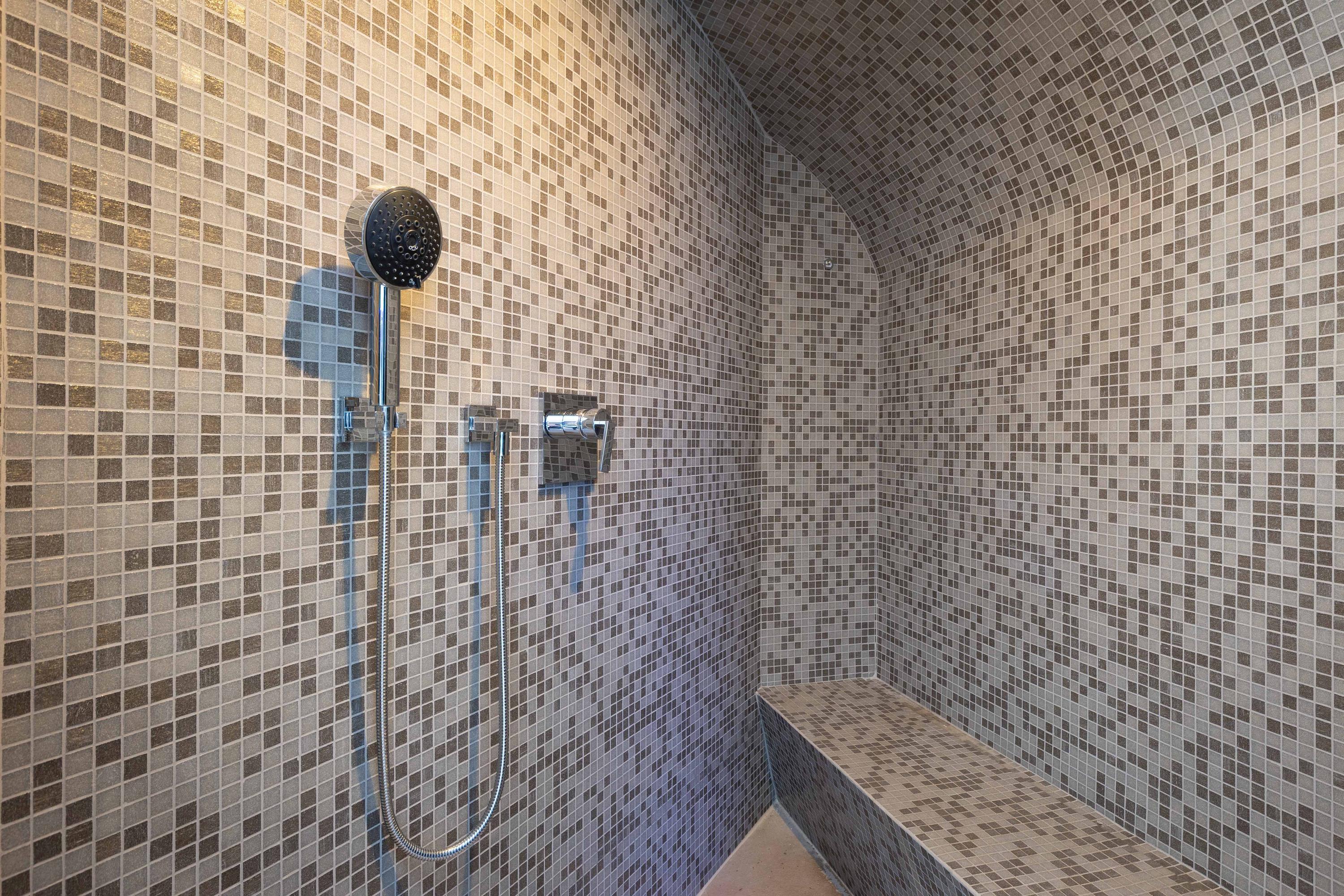 At the top, beneath the impressive roof structure, lies a fifth bedroom with dressing room. The third en suite bathroom is again appointed with Italian marble, double vanity, WC and walk-in shower. This room also opens onto a large private roof terrace.