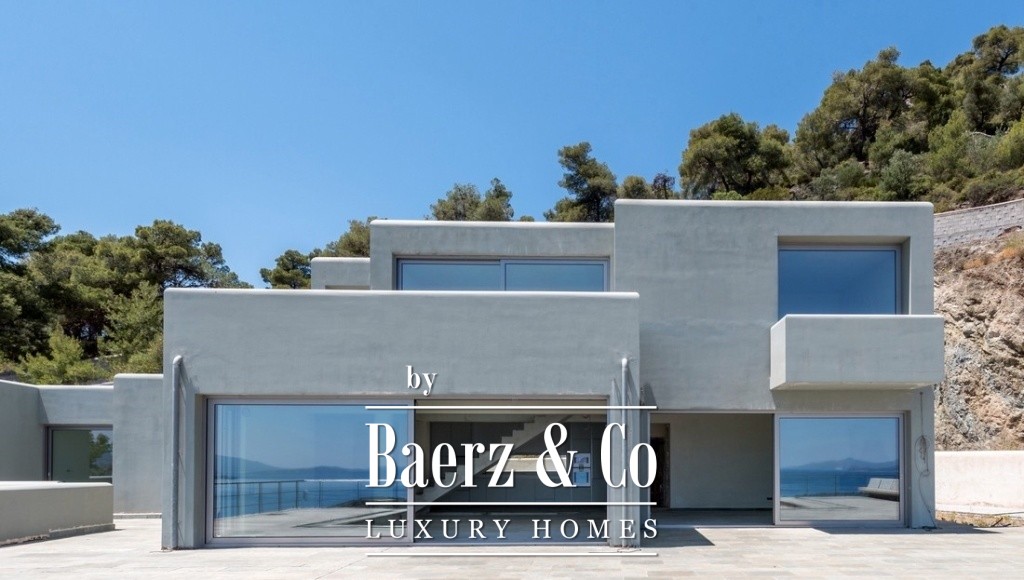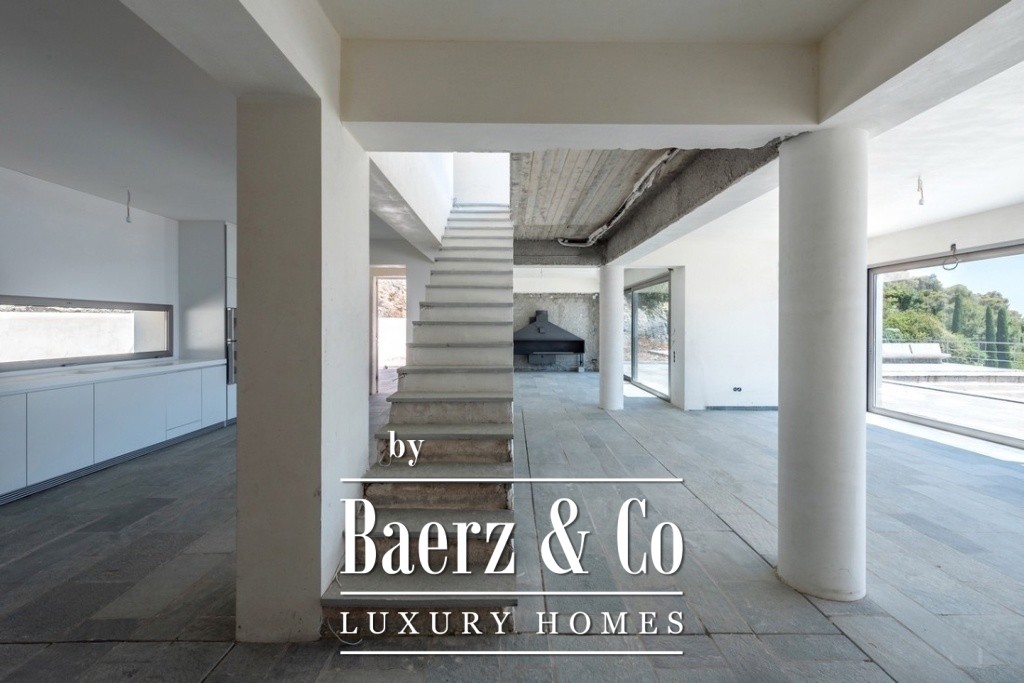 In the lush, pine-covered area of Epidaurus, on a privileged mountain slope, a luxurious villa of 568 sq m, of unique architecture, is offered for sale, offering panoramic and unobstructed views of the sea and the entire Ancient Epidaurus. The residence is built on a plot of 6,447 sq m, outside the plan, offering exclusive entrance, absolute privacy and a sense of harmony with the natural environment. The first level hosts an autonomous apartment with a kitchen, bathroom, one bedroom and three storage spaces. On the second level one finds an open-plan living room and kitchen area, a wc, a bedroom with a private dressing room and bathroom, while direct access to the outdoor pool and the impressive 230 sq m. terrace create the ideal atmosphere