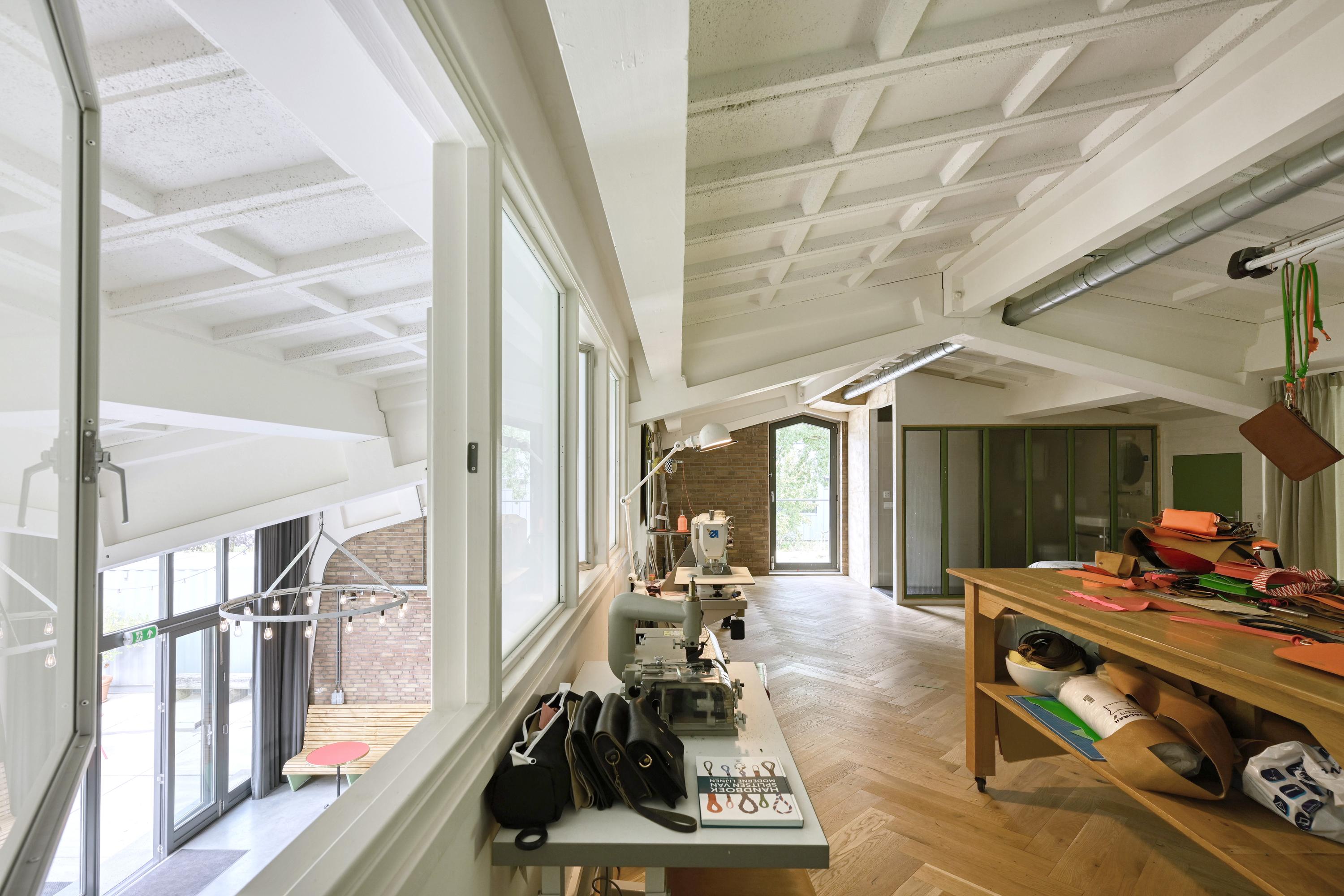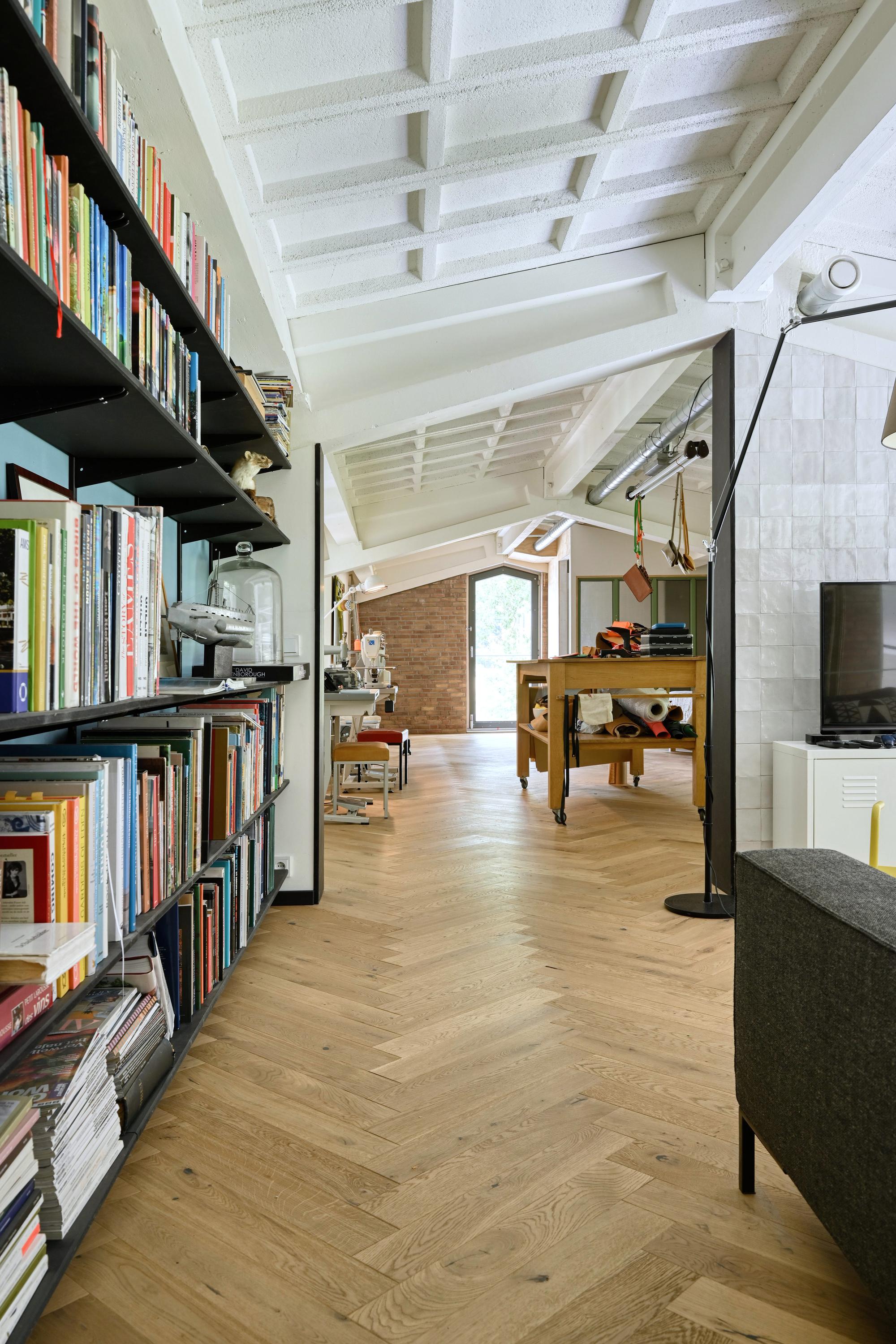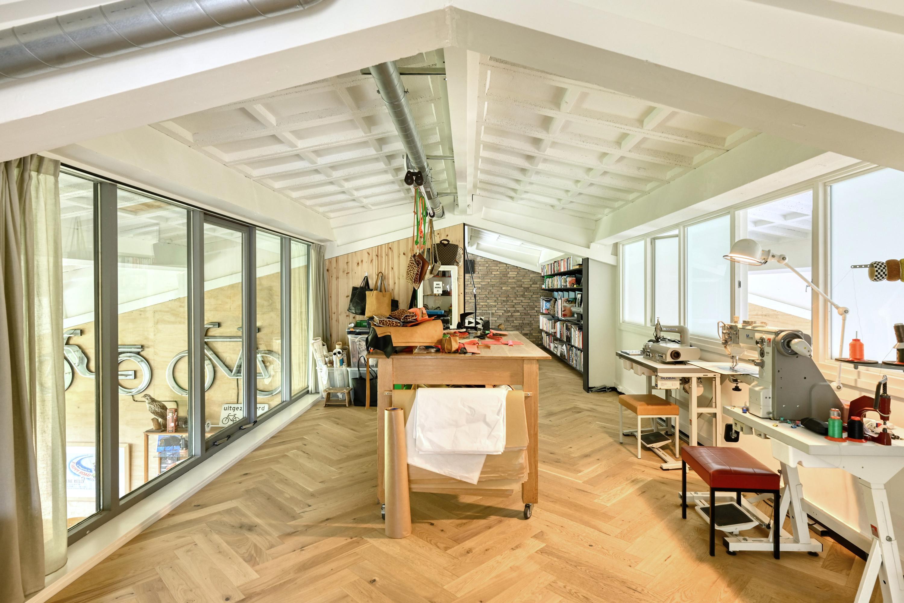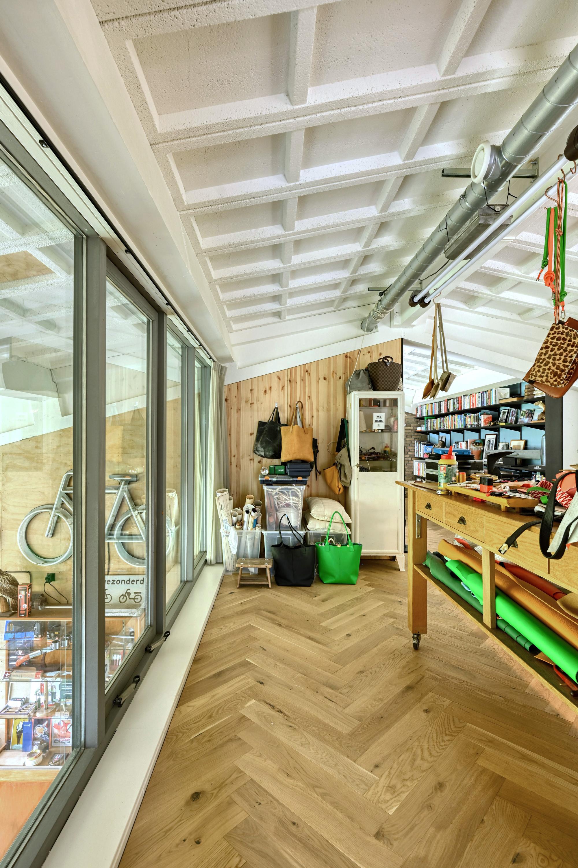 De vloeren zijn grotendeels uitgevoerd in gevlinderd beton die een knipoog zijn naar het industriële karakter van de voormalige hangar. De vloeren zijn voorzien van vloerverwarming.