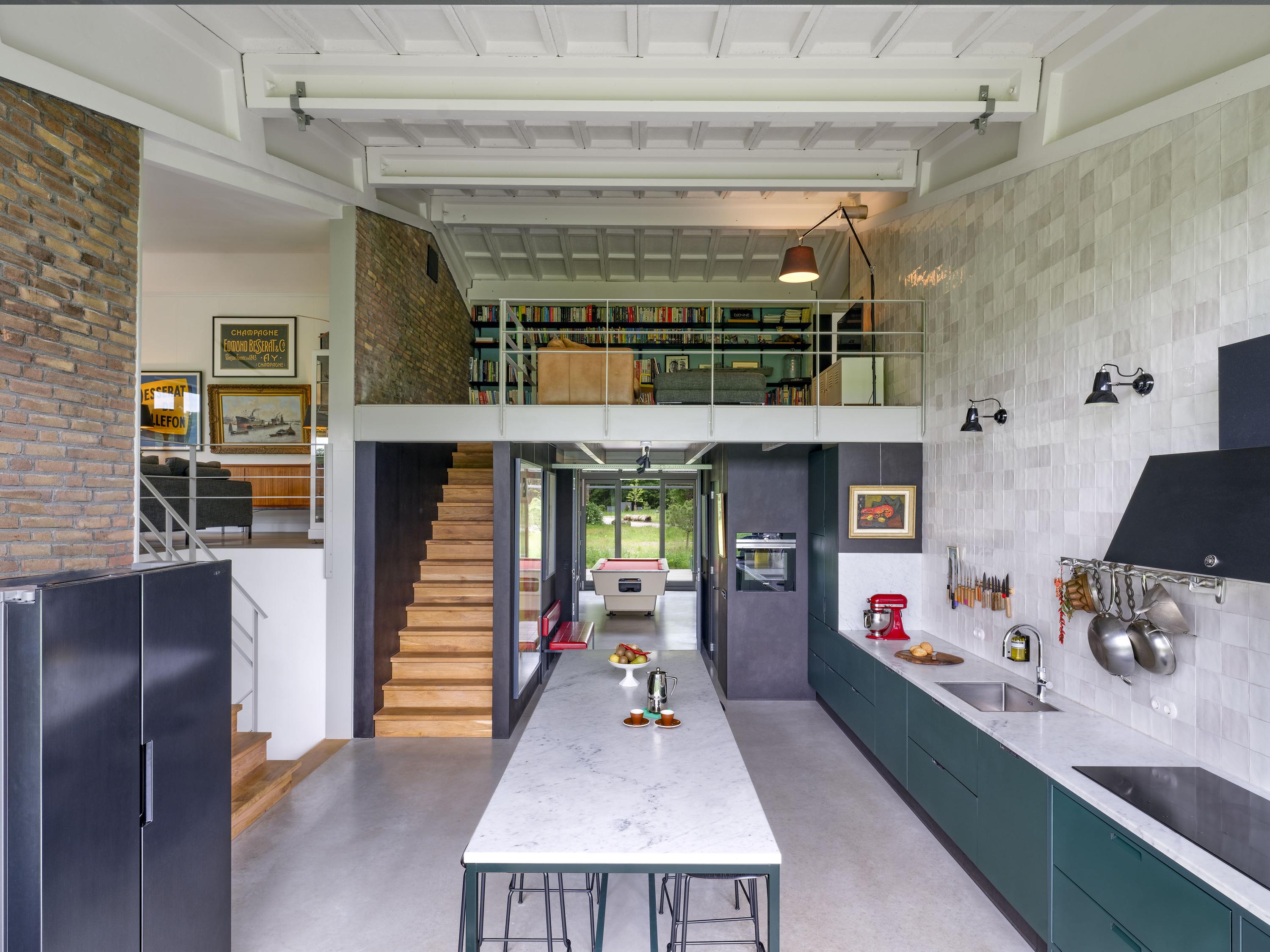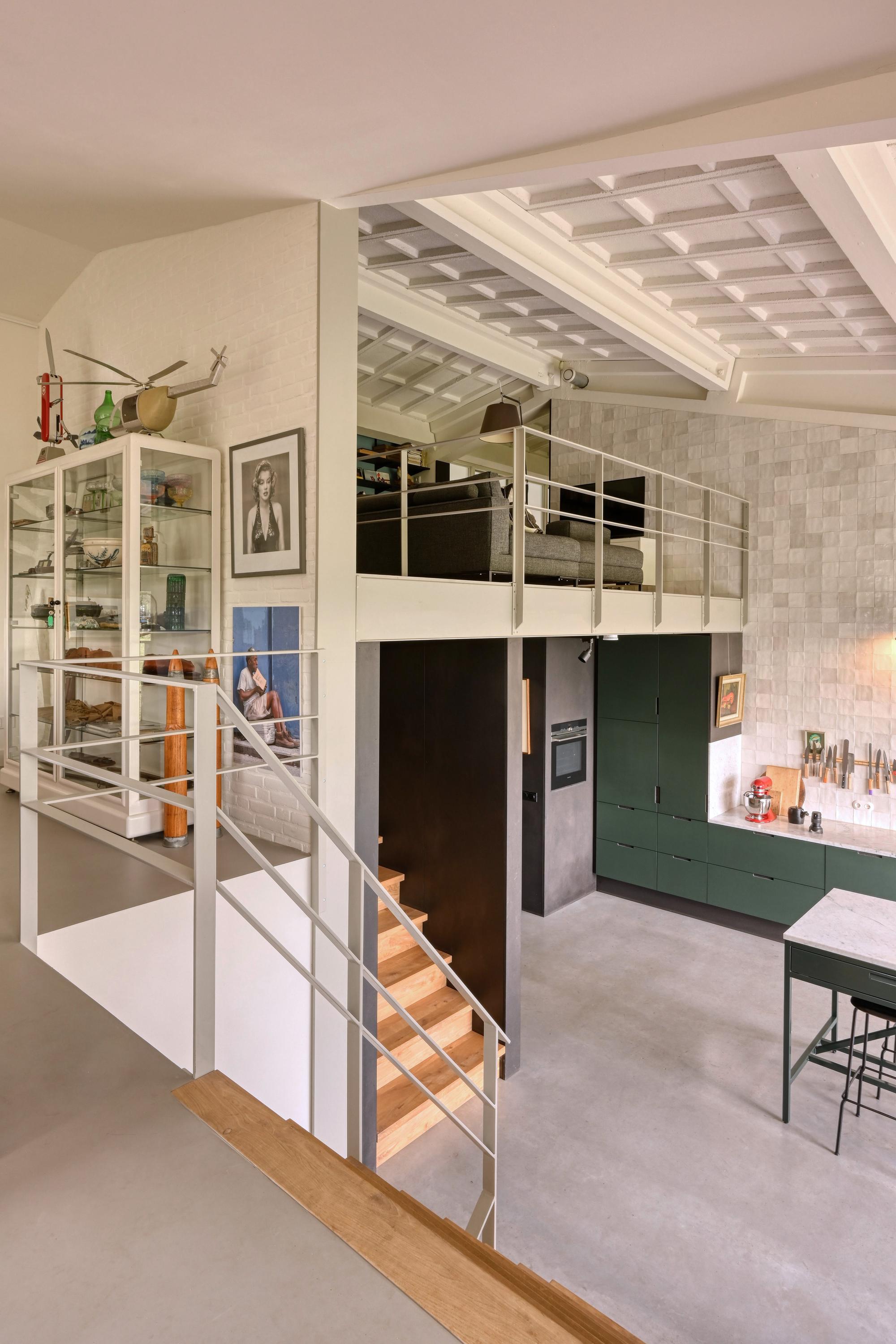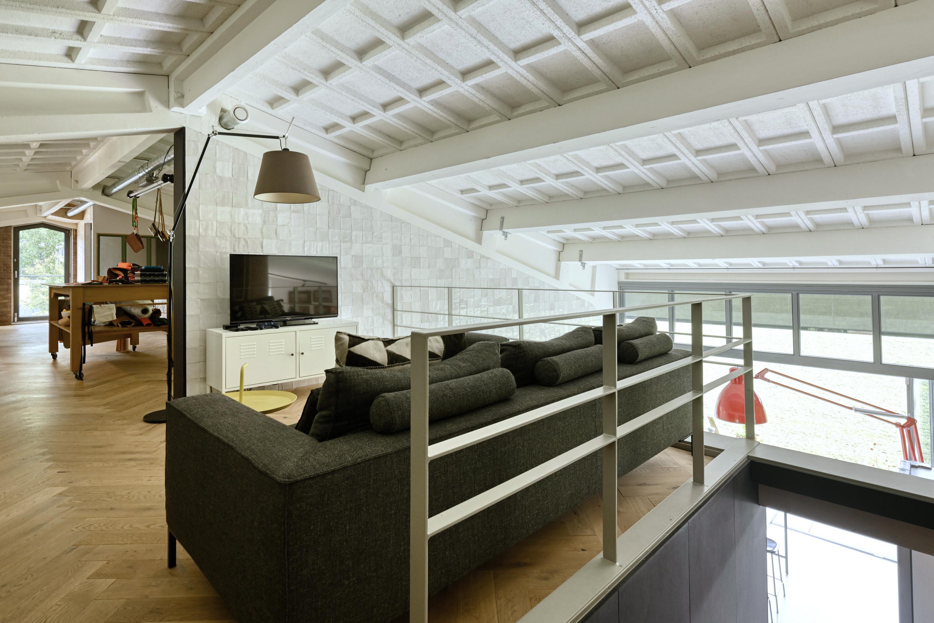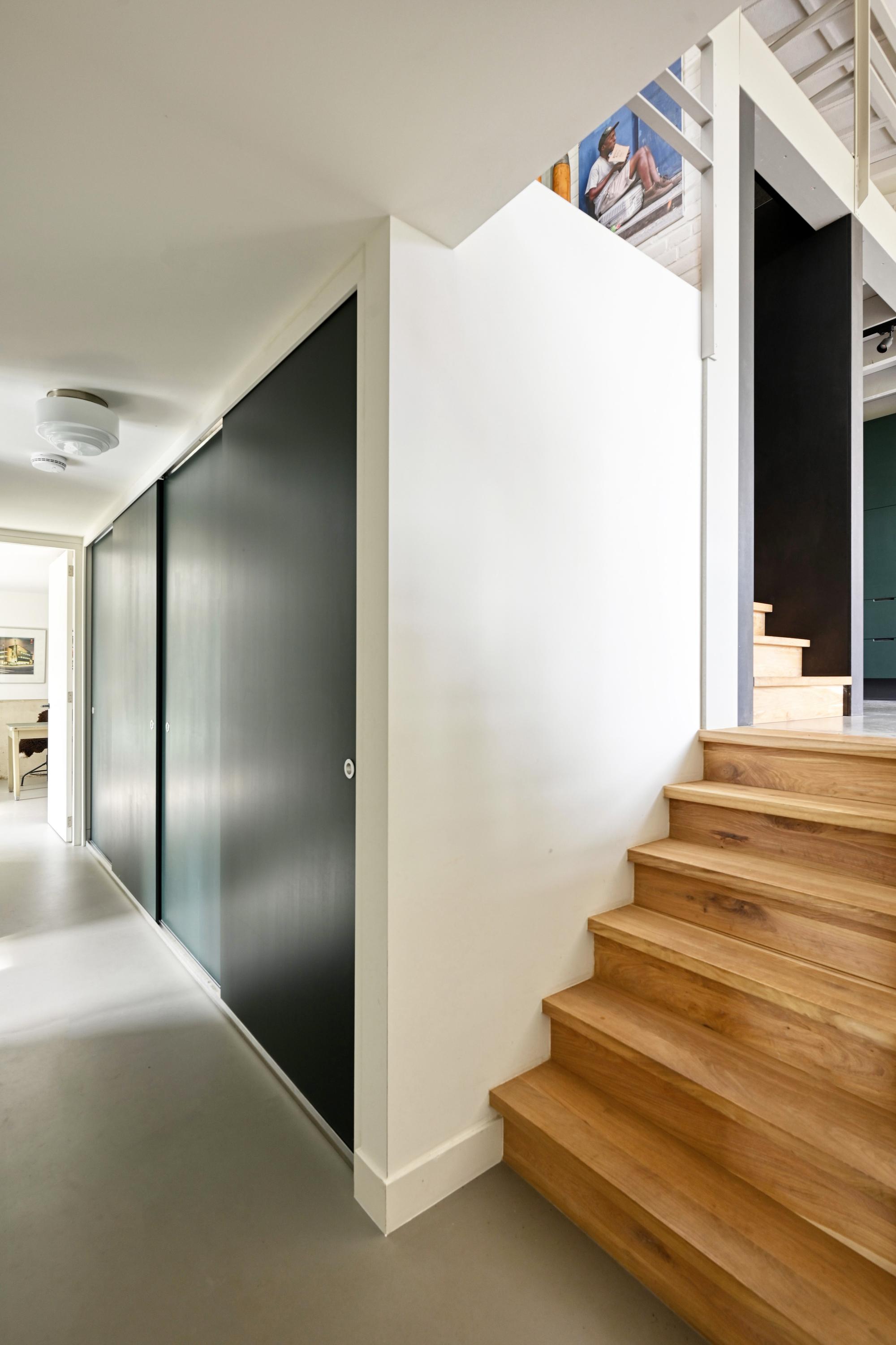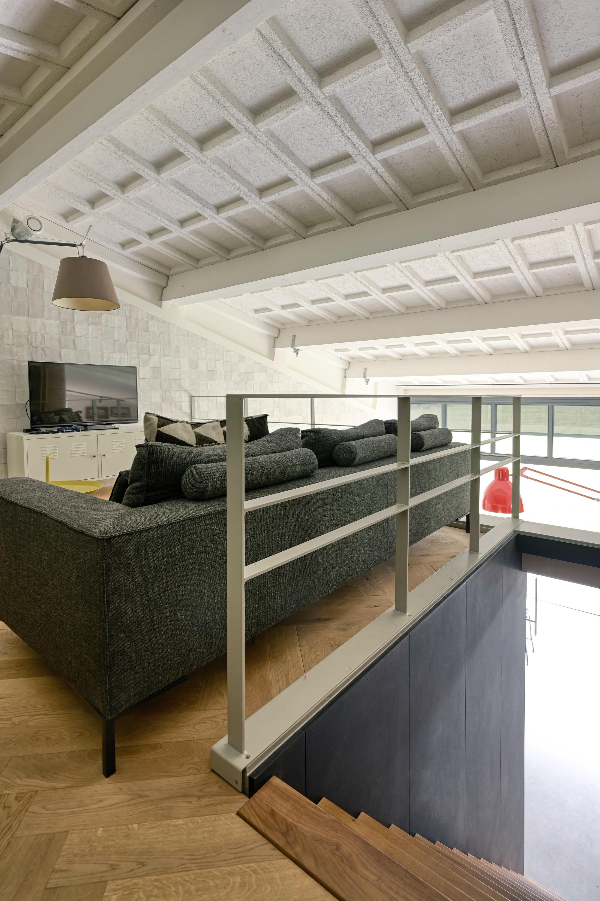 De vloeren zijn grotendeels uitgevoerd in gevlinderd beton die een knipoog zijn naar het industriële karakter van de voormalige hangar. De vloeren zijn voorzien van vloerverwarming.