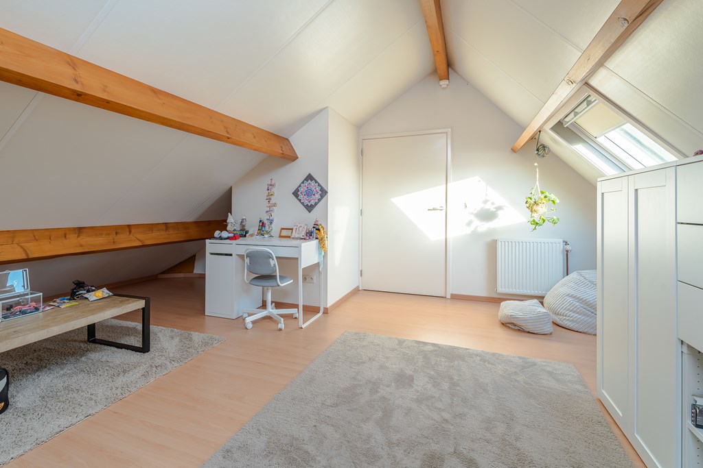 De zolderkamer is voorzien van een airco en biedt plaats aan de technische installatie van de woning. Zo is hier de opstelplaats van de cv-ketel, omvormer van de zonnepanelen, 3 thuisbatterijen, groepenkast en warmwaterboiler geplaatst. De zonnepanelen en thuisbatterijen zijn in december 2023 geplaatst.