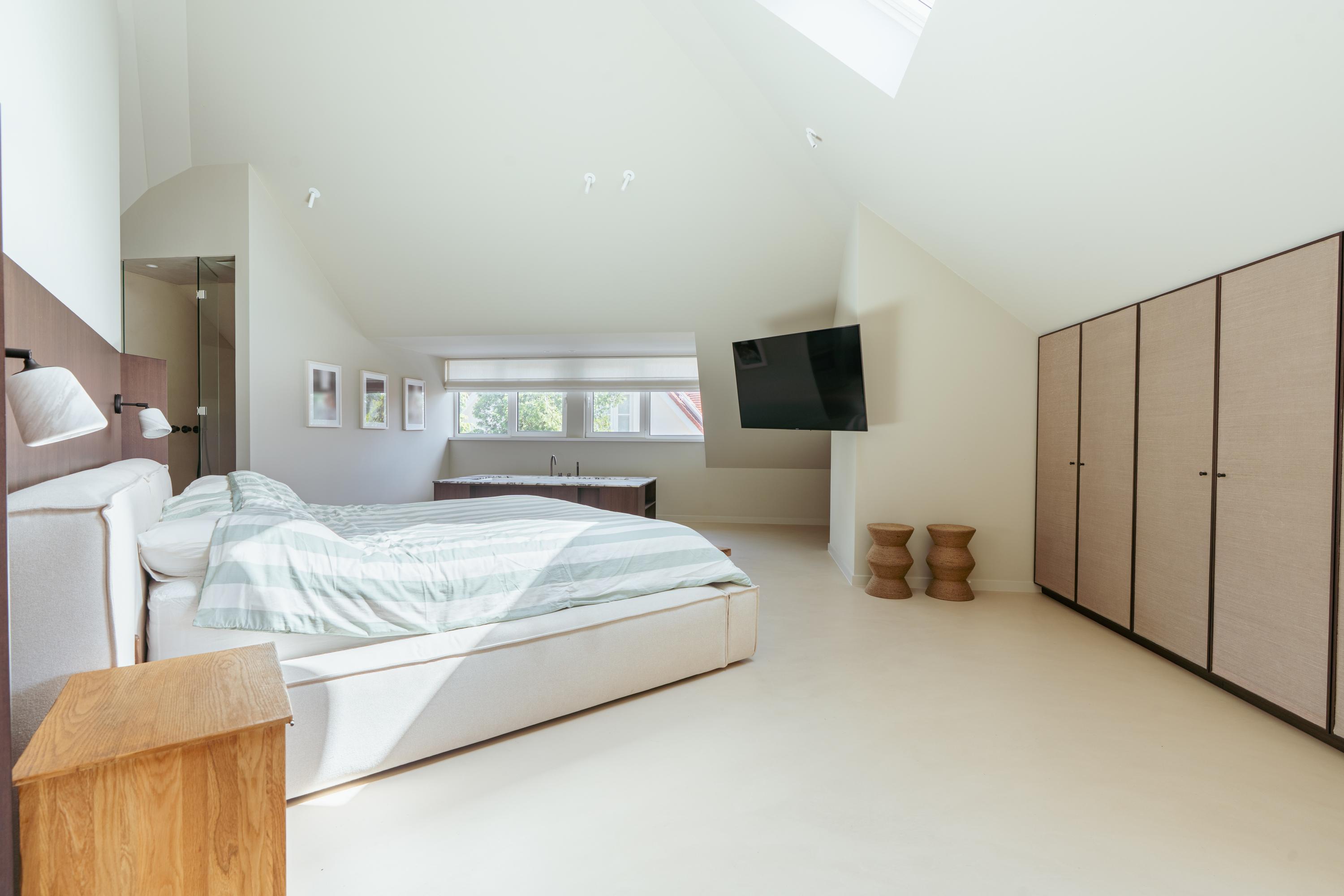 Exclusive, fully renovated villa of approximately 359 sqm, spread over two floors plus a loft attic, set on a generous plot of around 1,064 sqm. This elegant home, redesigned by renowned architect Anne Claus, boasts a beautifully landscaped garden (approx. 617 sqm), a stunning covered terrace (approx. 22 sqm), three spacious bedrooms, two luxurious bathrooms, a garage, a large internal storage room, and a private gym. The villa holds an energy label A and is equipped with a full home automation system for optimal living comfort.
