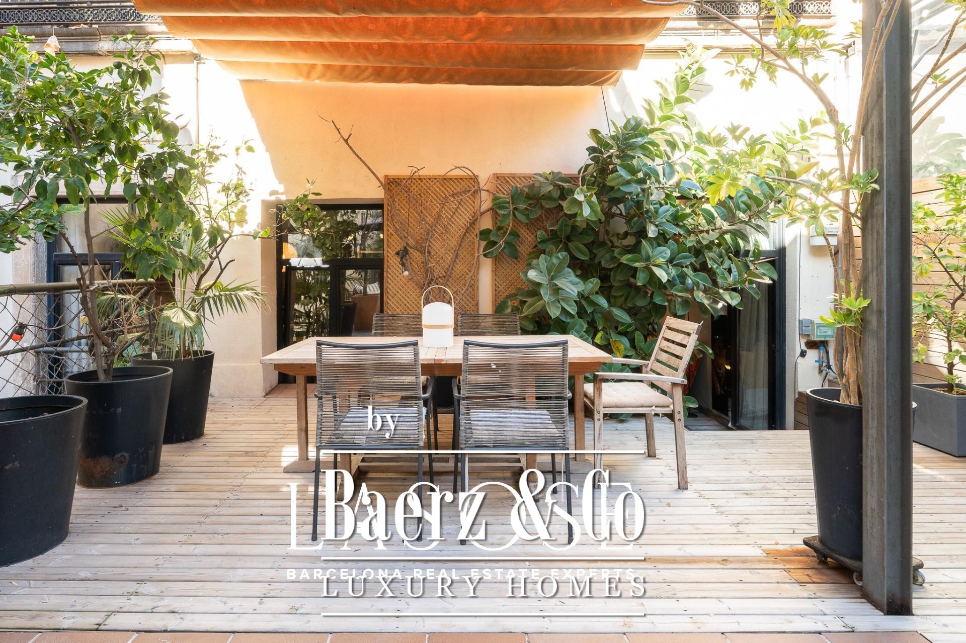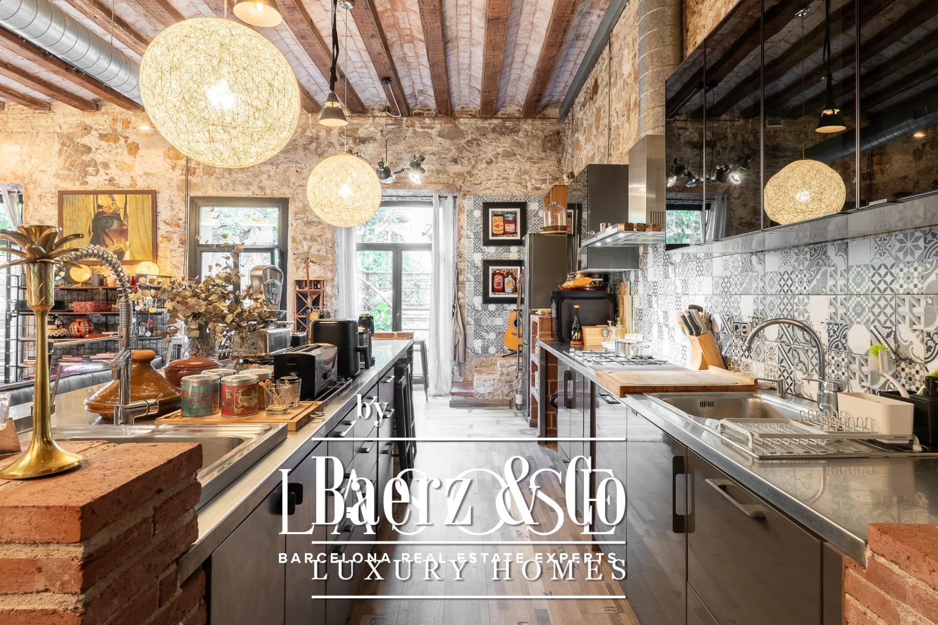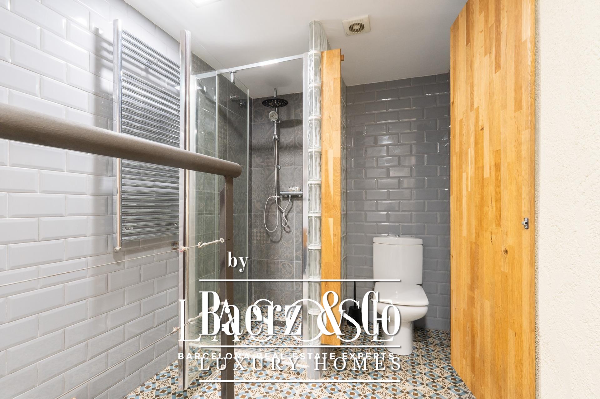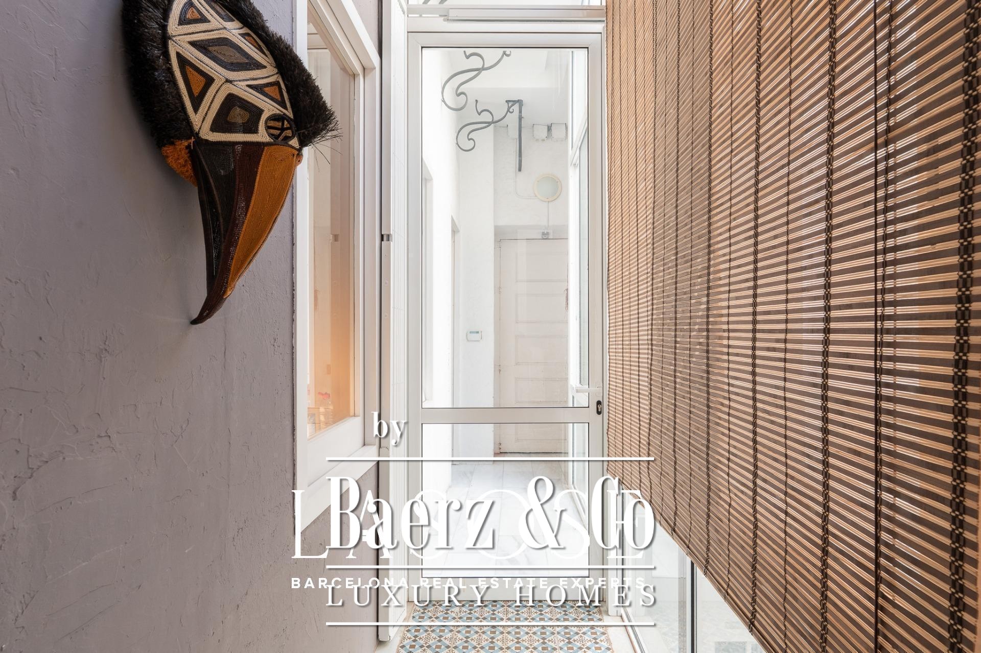 . . This catalan style apartment consists of 218 m2 plus 74 m2 of private terrace with pool. Upon entering, we find a corridor with huge windows that overlooks a large interior patio offering the space plenty of natural light. Ithis area connects the three double bedrooms; each one with its private bathroom, and another room that acts as a large multifunctional space that can perfectly be used as an office space.. . Following the corridor we find the day area, a huge and spacious space with very high ceilings up to 5 meters, composed of a large open kitchen, original brick walls and tiles, a toilet and a beautiful living room with a (wood) fireplace from which you can access the wonderful terrace with a pool shared with the neighbour next door. The terrace is private and is recently restored with new roofing to guarantee privacy. The whole house was completely renovated keeping original elements and decorated with great