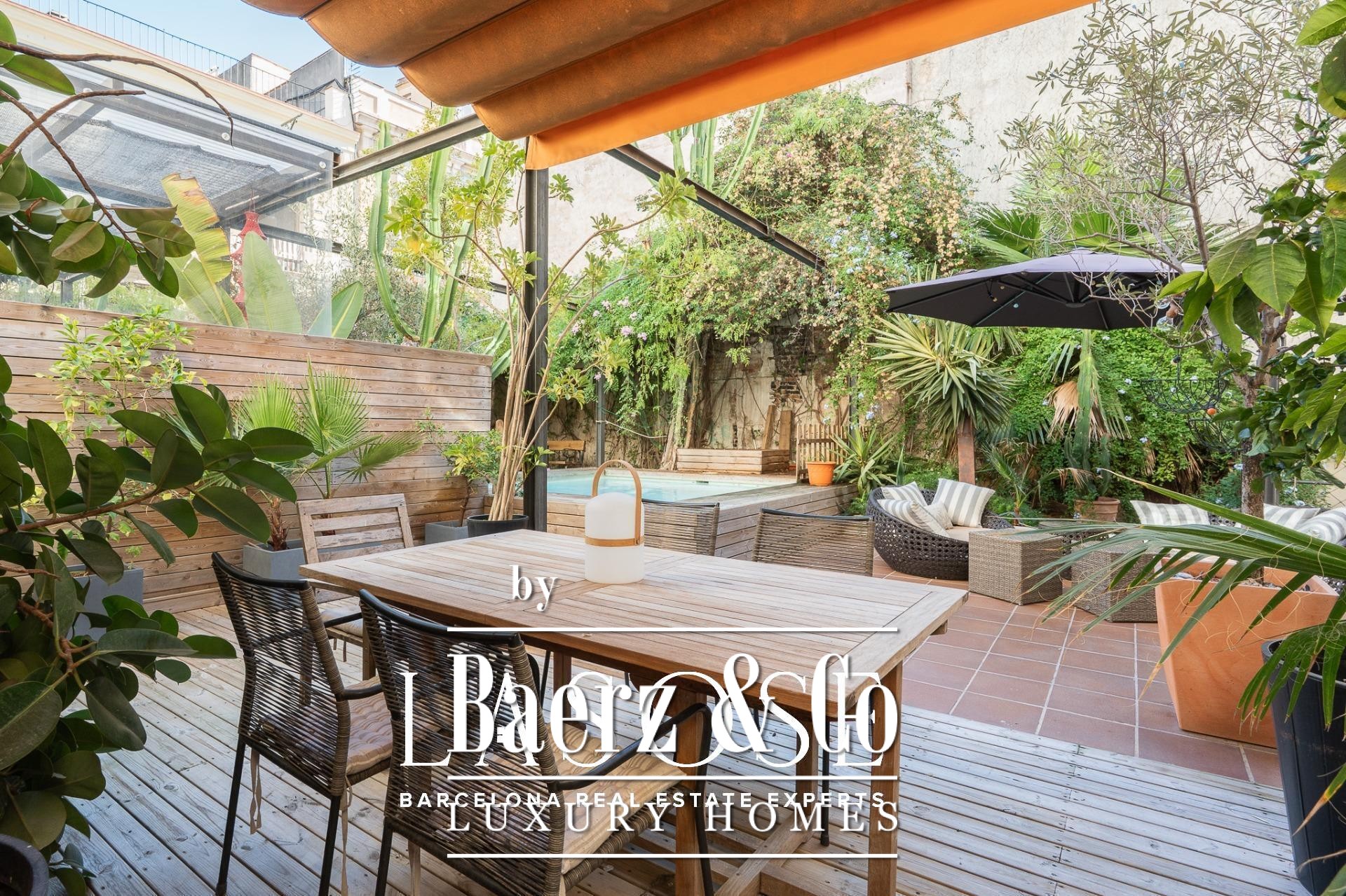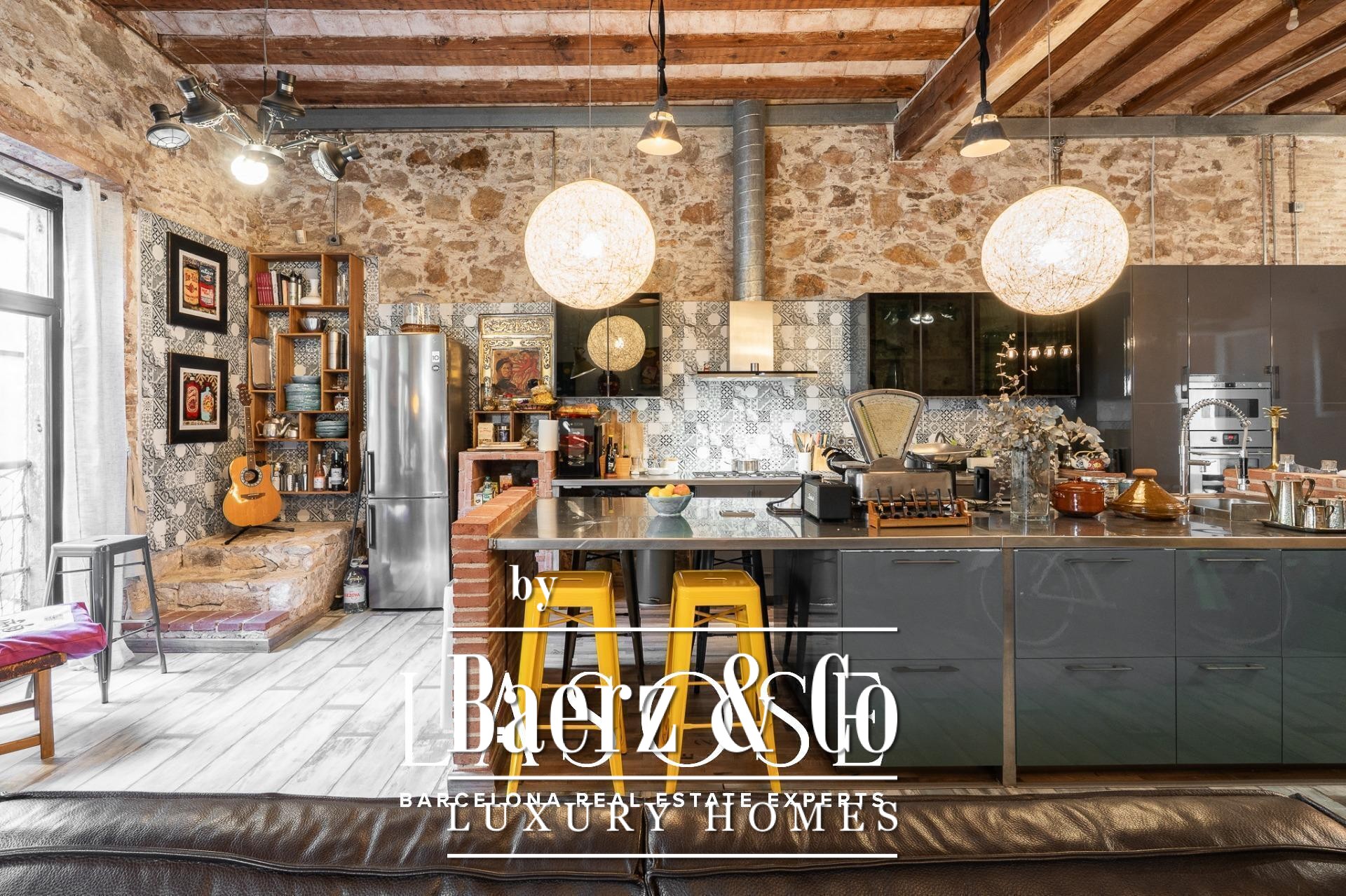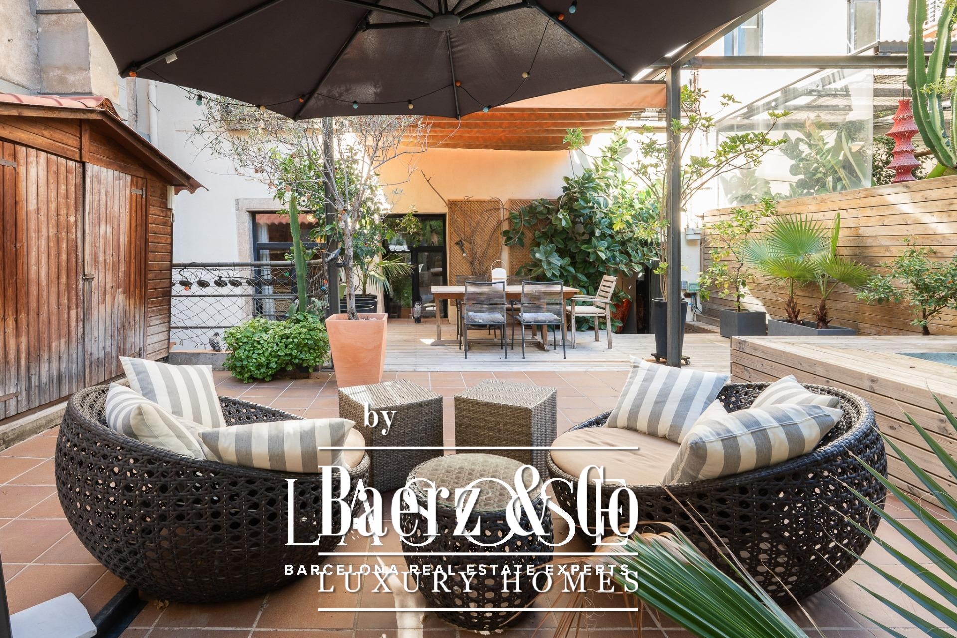 . . This catalan style apartment consists of 218 m2 plus 74 m2 of private terrace with pool. Upon entering, we find a corridor with huge windows that overlooks a large interior patio offering the space plenty of natural light. Ithis area connects the three double bedrooms; each one with its private bathroom, and another room that acts as a large multifunctional space that can perfectly be used as an office space.. . Following the corridor we find the day area, a huge and spacious space with very high ceilings up to 5 meters, composed of a large open kitchen, original brick walls and tiles, a toilet and a beautiful living room with a (wood) fireplace from which you can access the wonderful terrace with a pool shared with the neighbour next door. The terrace is private and is recently restored with new roofing to guarantee privacy. The whole house was completely renovated keeping original elements and decorated with great