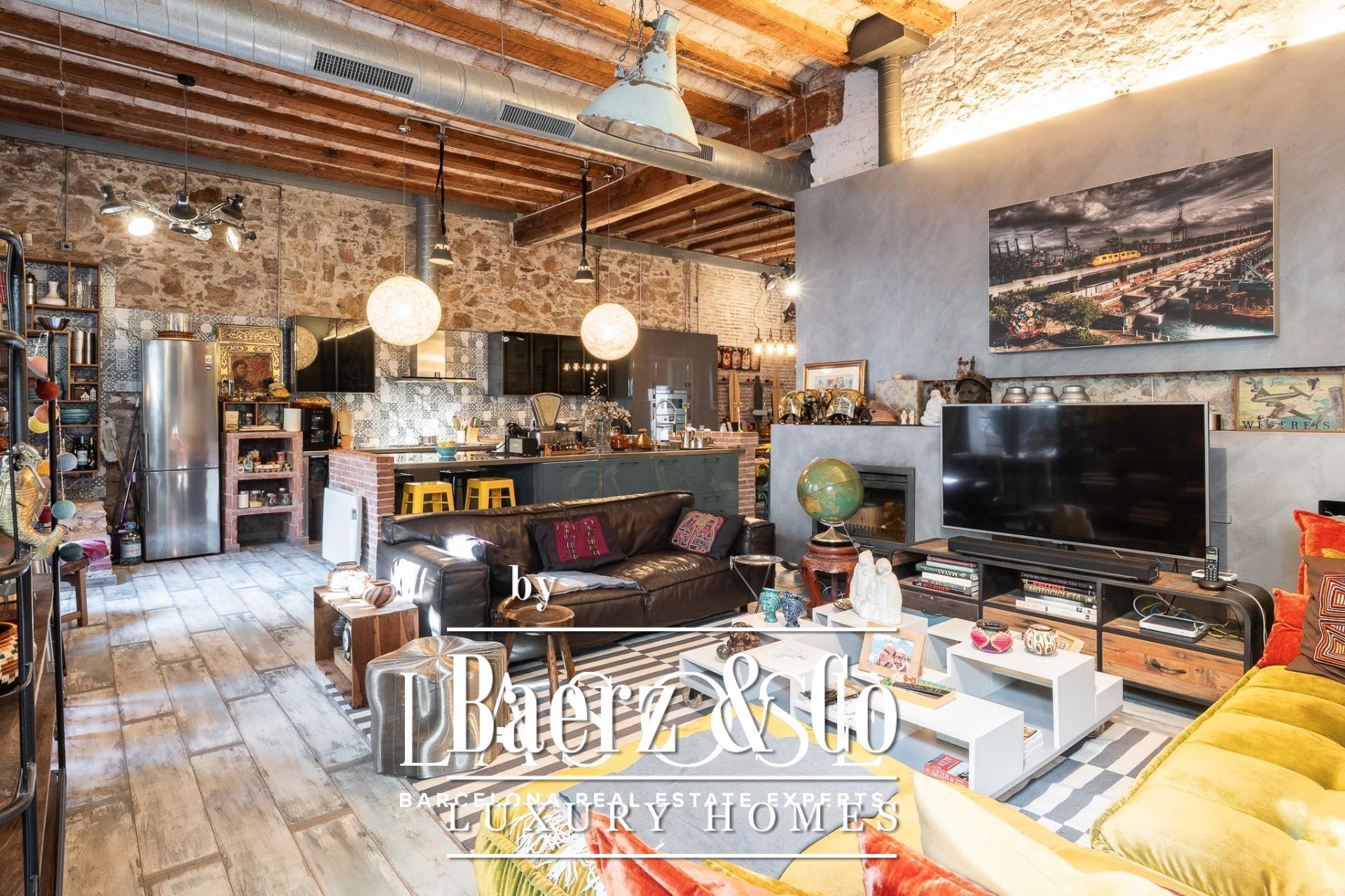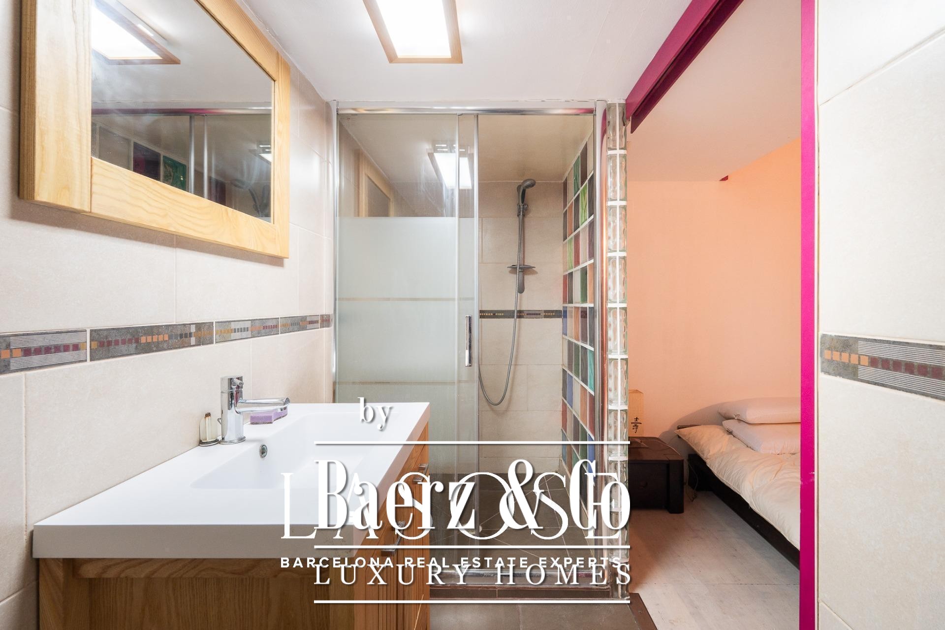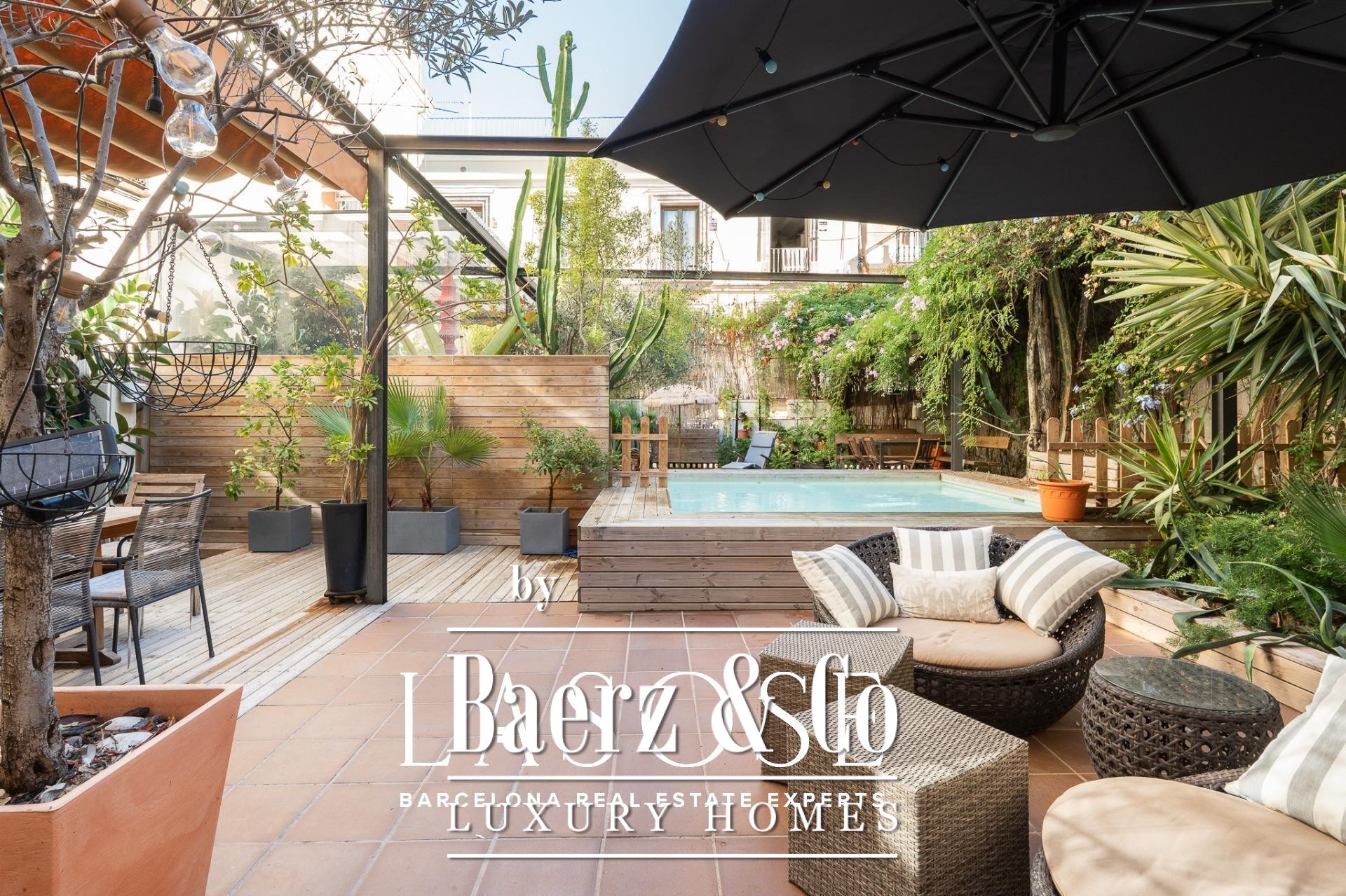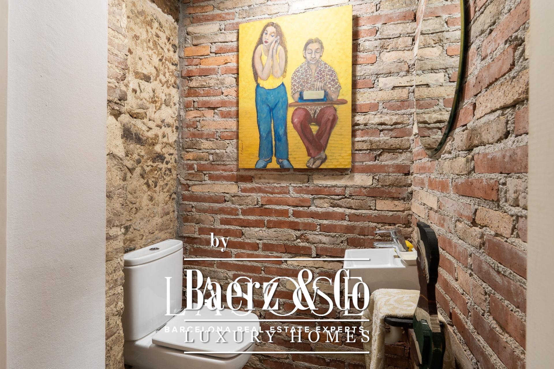. . This catalan style apartment consists of 218 m2 plus 74 m2 of private terrace with pool. Upon entering, we find a corridor with huge windows that overlooks a large interior patio offering the space plenty of natural light. Ithis area connects the three double bedrooms; each one with its private bathroom, and another room that acts as a large multifunctional space that can perfectly be used as an office space.. . Following the corridor we find the day area, a huge and spacious space with very high ceilings up to 5 meters, composed of a large open kitchen, original brick walls and tiles, a toilet and a beautiful living room with a (wood) fireplace from which you can access the wonderful terrace with a pool shared with the neighbour next door. The terrace is private and is recently restored with new roofing to guarantee privacy. The whole house was completely renovated keeping original elements and decorated with great