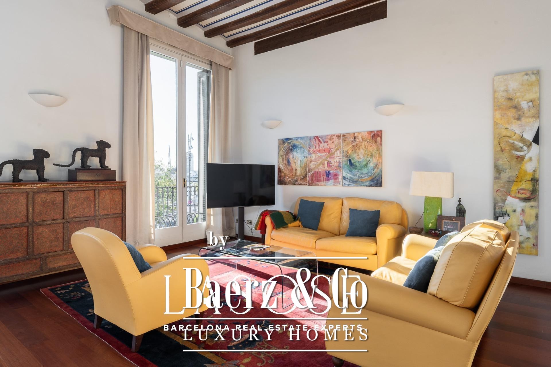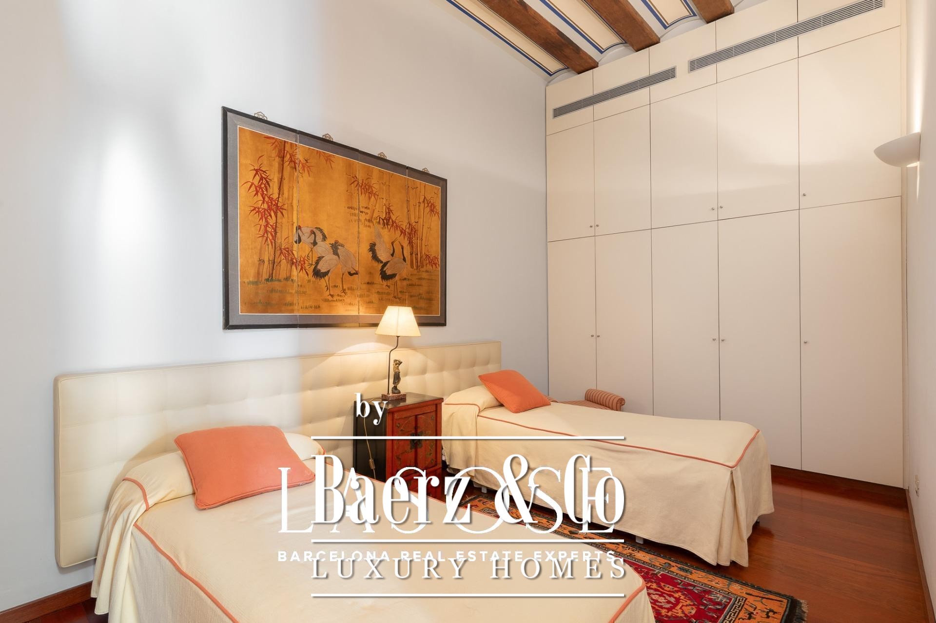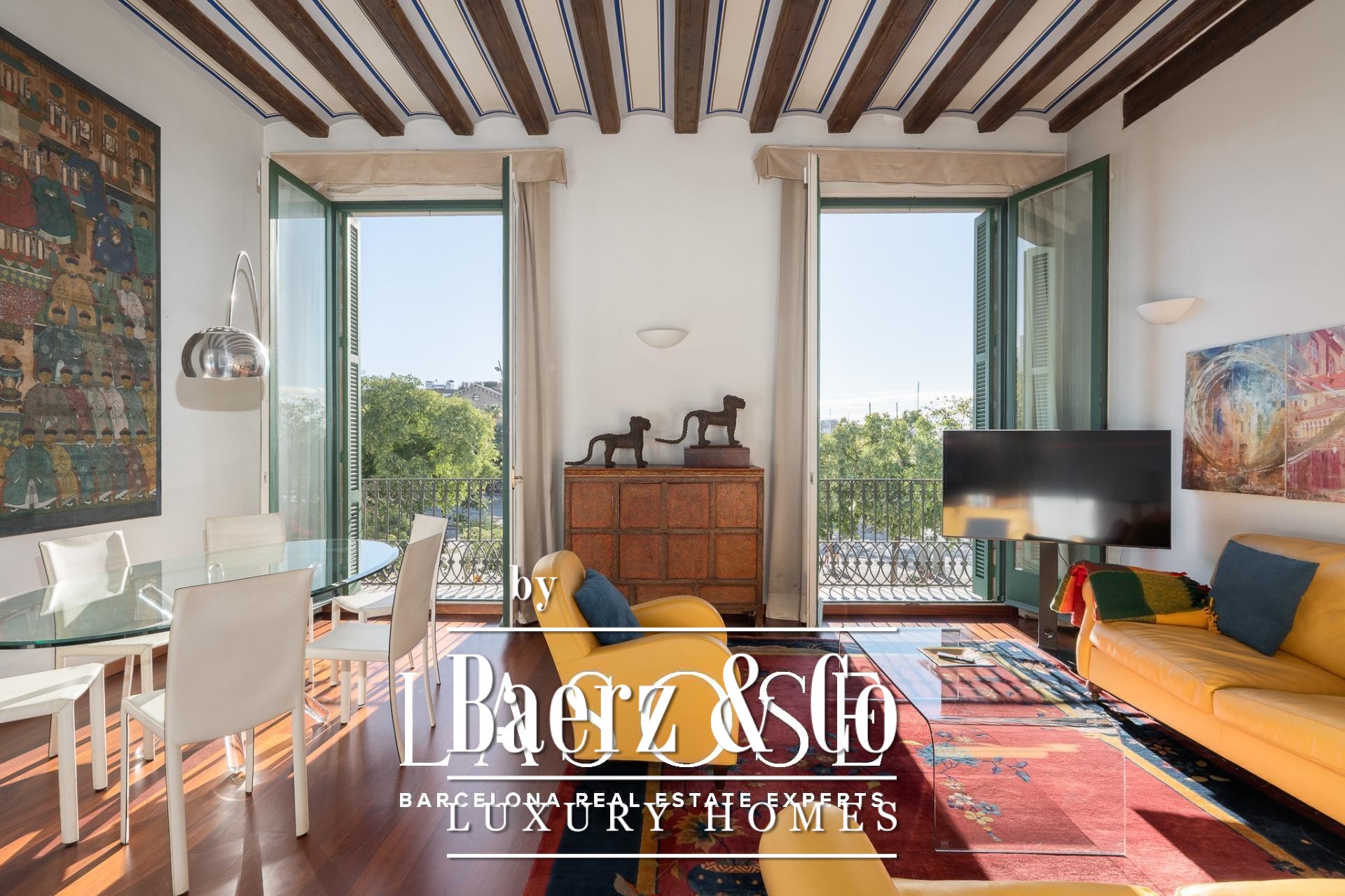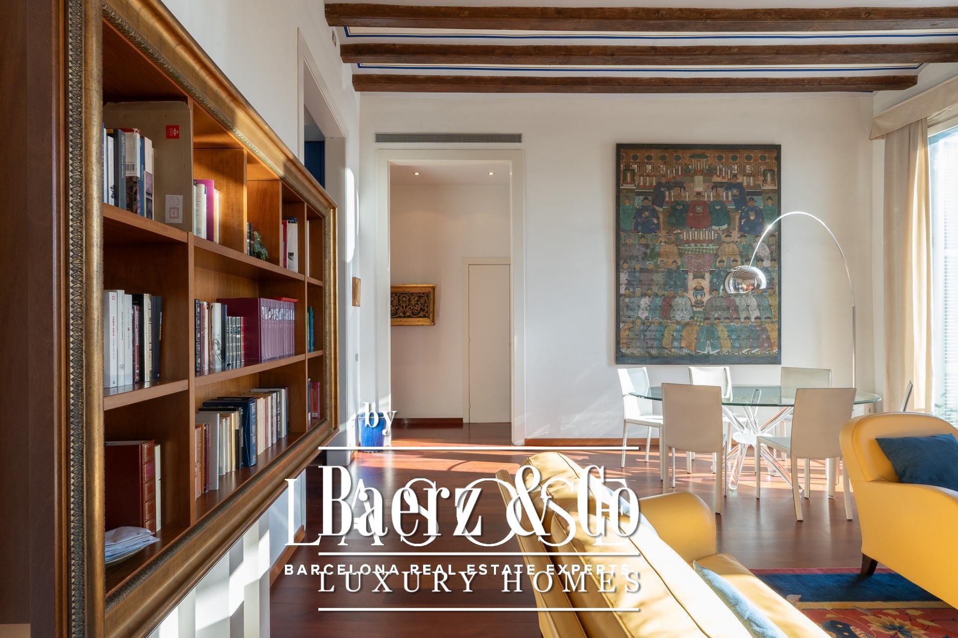 heart of Barcelona, the apartment enjoys a privileged position: steps from the Port Vell, Barceloneta Beach, and Pla de Palau. The neighborhood hums with Mediterranean life —a fusion of history, sunlight, and sea breeze. A vibrant gastronomic scene surrounds it, offering everything from seafood taverns and signature restaurants to rooftop terraces and cocktail bars overlooking the harbor. As night falls, the area transforms: live music, elegant lounges, and bohemian venues give rhythm to the city’s lively nights.. Just a short stroll away lies Barcelona’s rich cultural landscape —the Picasso Museum, the Museum of the History of Catalonia, the Santa Mònica Art Center, and countless galleries and creative spaces that embody the city’s artistic pulse.. A truly unique residence on Carrer Llauder , where history, design, and location intertwine to offer an authentic Barcelona lifestyle, with the Mediterranean as your horizon and its light streaming through every corner.. .