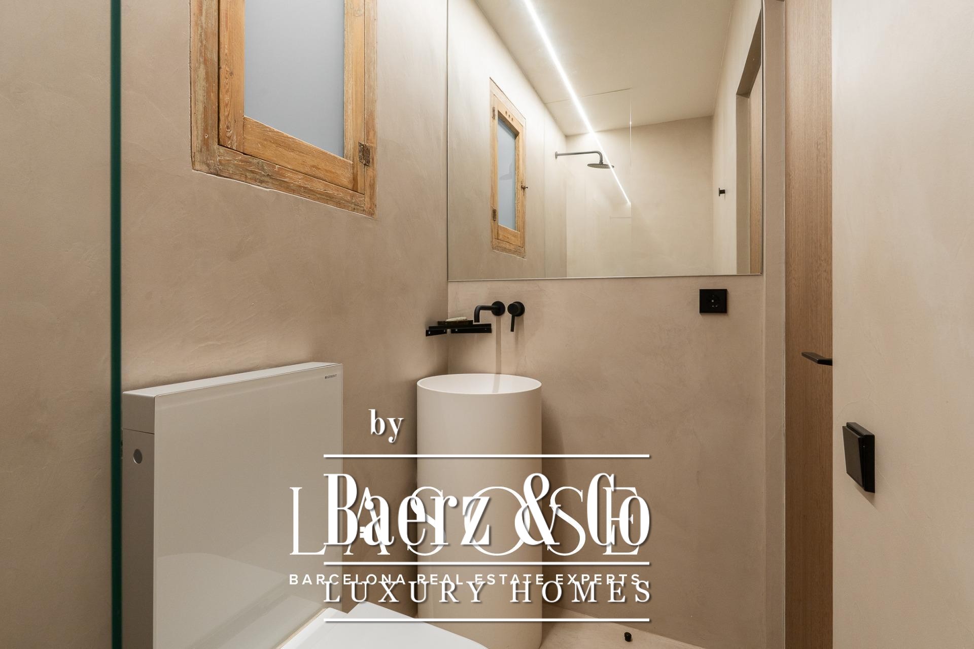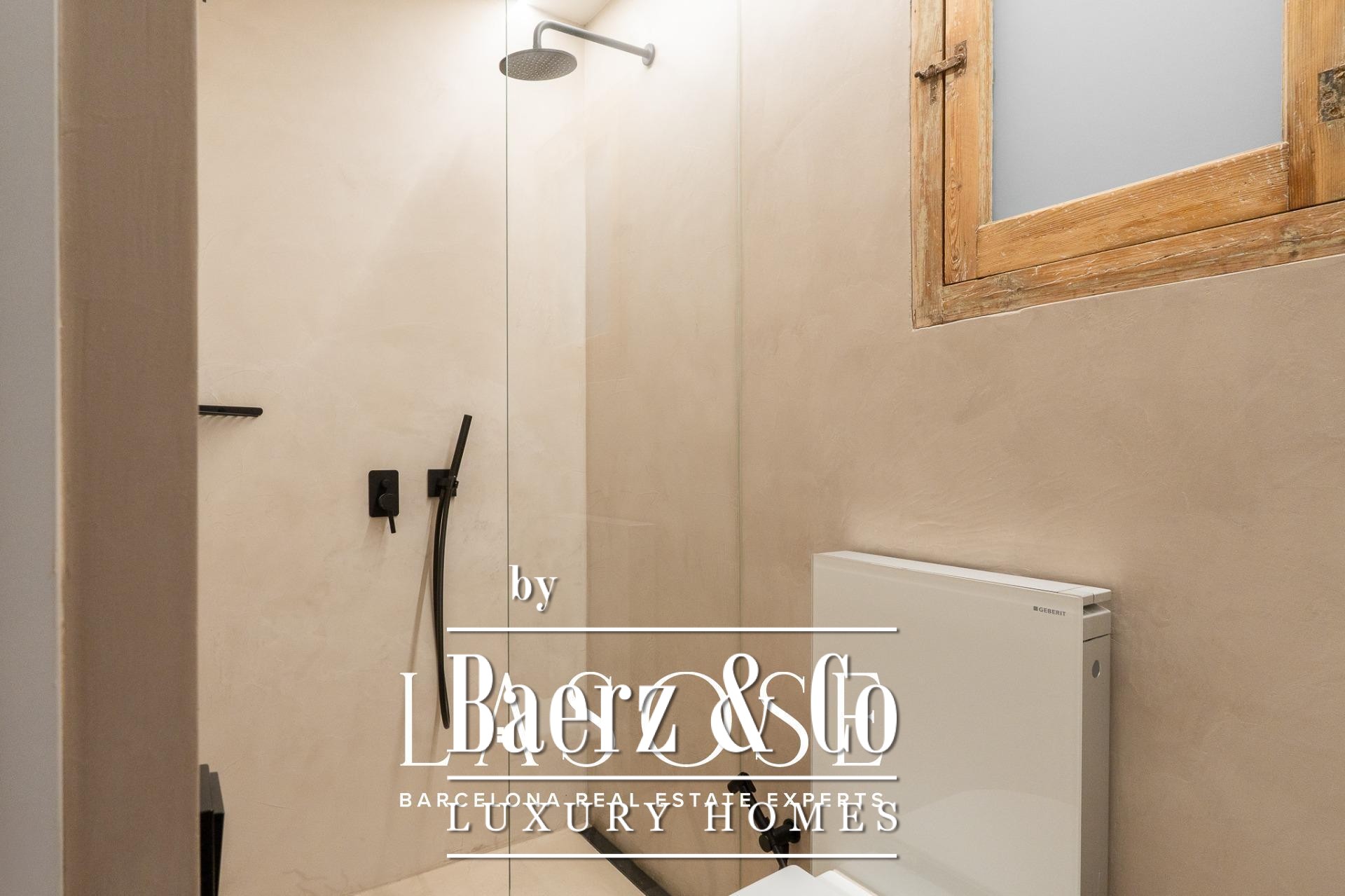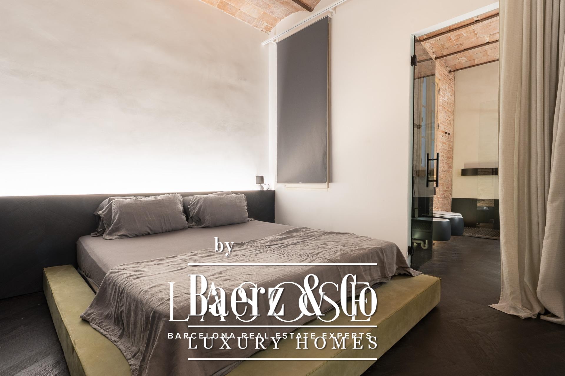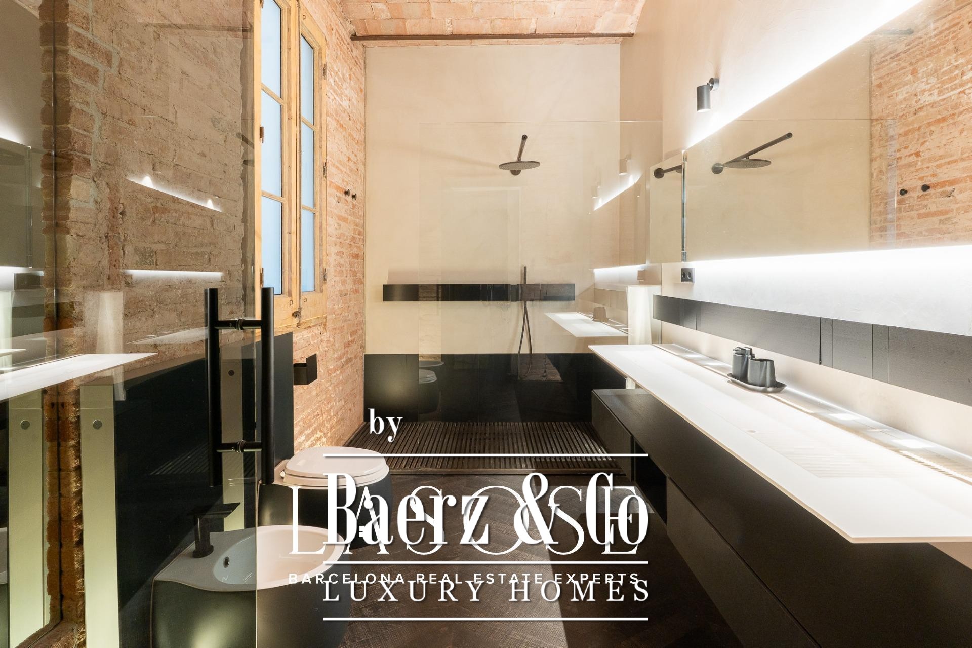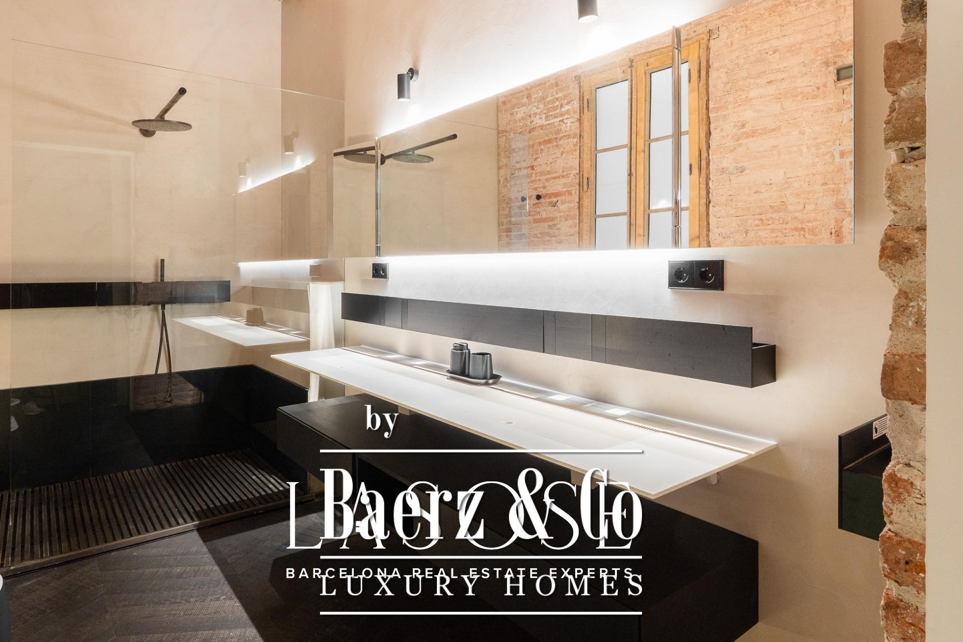 Exclusive luxury property located in a finca regia in the very heart of Eixample, featuring a wonderful 60 sqm decked terrace – a true private oasis in the city centre.. . This 120 sqm apartment has been designed as a unique piece by a renowned interior designer, who has created an authentic haven of peace and harmony. The property is offered with high-end designer furniture and carefully selected pieces, which can remain in the apartment if the buyer wishes. In addition, it has excellent investment potential, as it can be rented out for €4,500 per month.. . The layout is very intuitive and functional. Upon entering, we find the night area, composed of two spacious double bedrooms and two bathrooms. The master suite retains its original vaulted ceilings and connects to an en-suite bathroom that masterfully combines period details with modern, exclusive design. The second double bedroom opens onto an interior patio through glass doors and is conveniently located next to a second independent bathroom.. . The day area consists of a large living-dining
