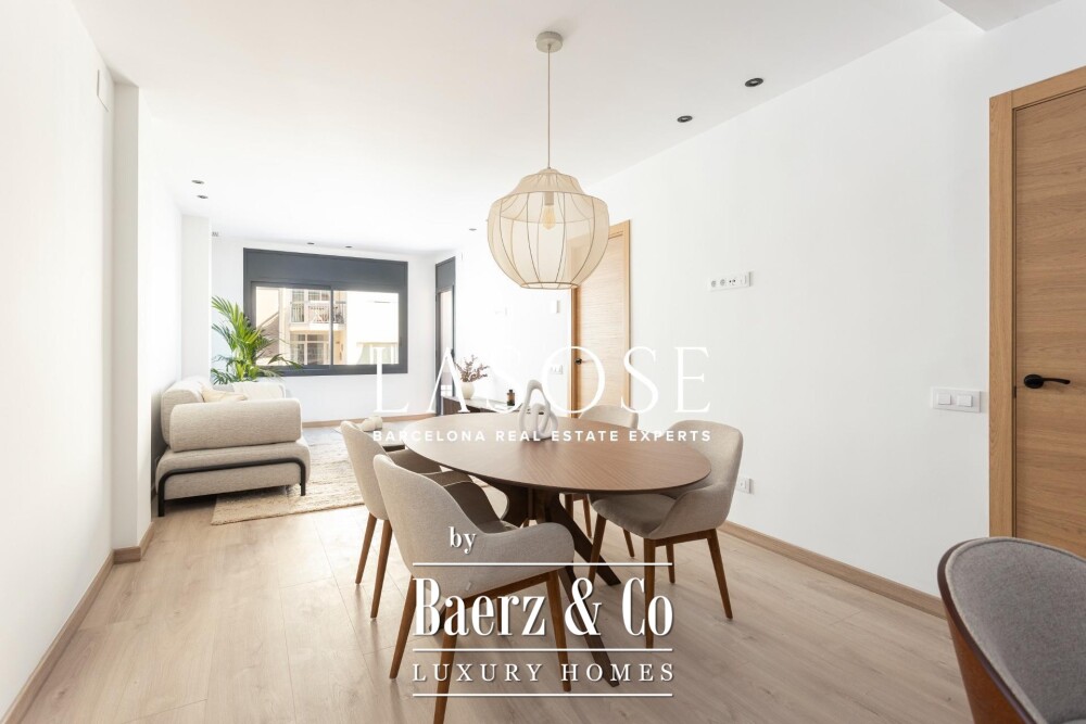 Apartment Barcelona Third Floor With Terrace welcomes you to 108 m² of refined living, set within a corner building offering concierge service and a sense of urban calm. Positioned just steps from Passeig de Sant Joan and Plaça Tetuan, this fully refurbished residence is enveloped by Barcelona’s vibrant cultural and culinary amenities, with effortless public transport just outside the door.