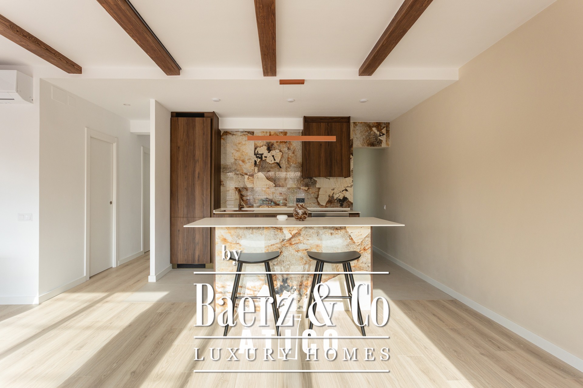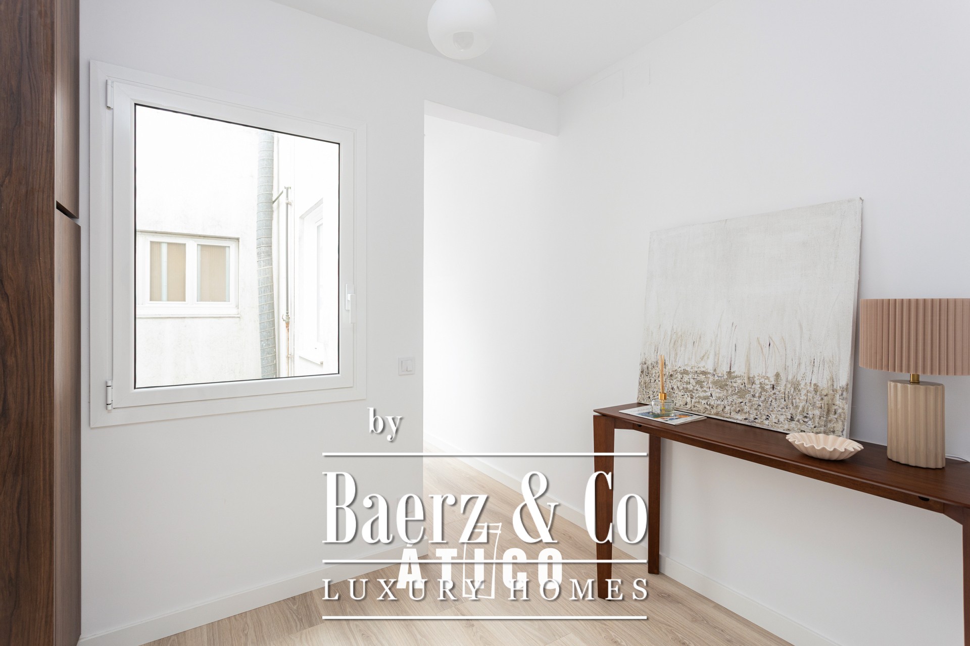 Penthouse Barcelona is elevated city living, merging indoor refinement with rare outdoor space in the storied Gràcia district. This seventh-floor residence, accessed by elevator, spans 109 m² of meticulously renovated interiors and unfolds onto a 70 m² private terrace where the skyline becomes part of the home’s rhythm.