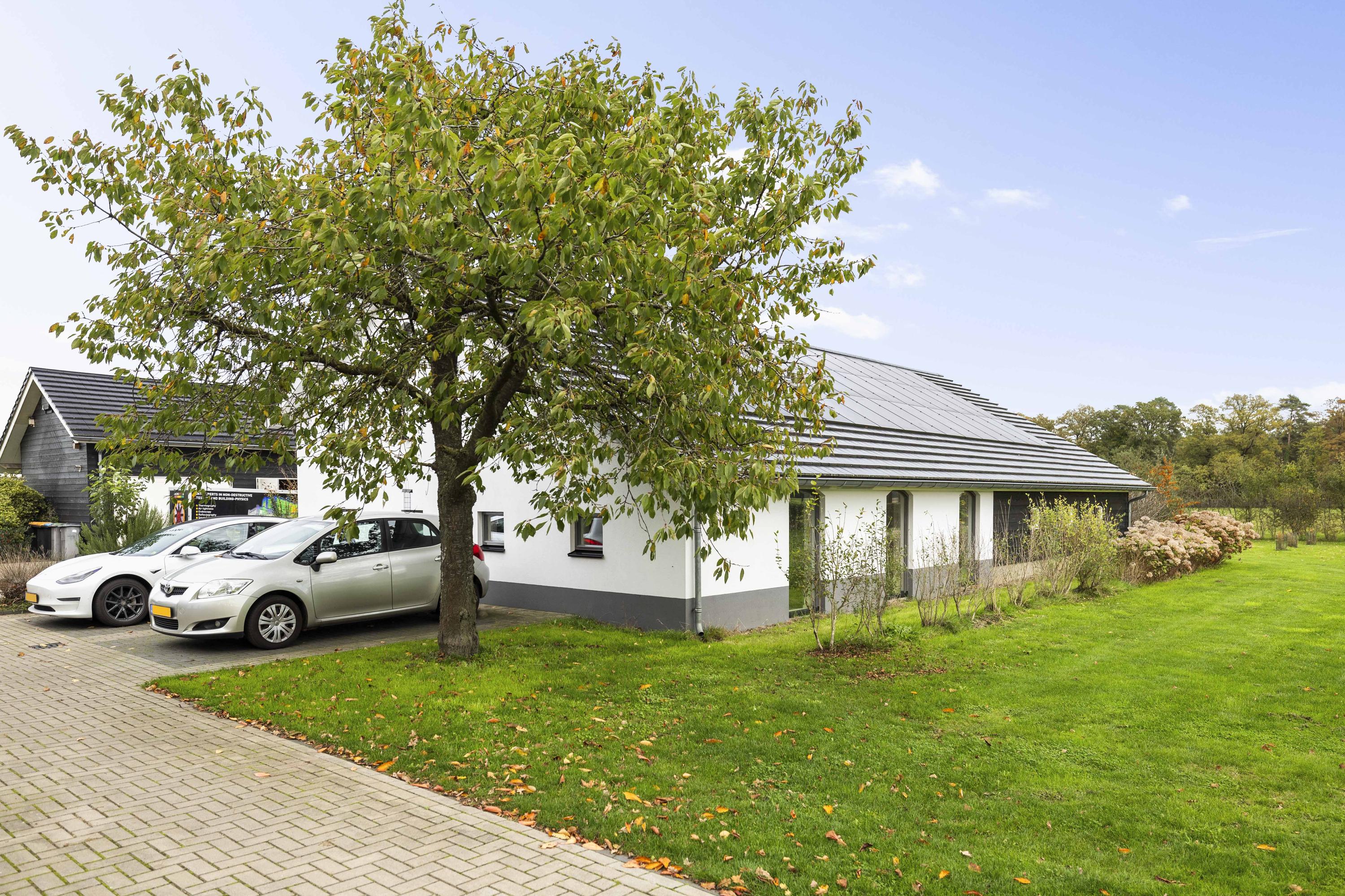 Perhaps you have your own business, maybe with staff, and you want to work from home. That's possible! There is a more than spacious U-shaped annexe consisting of an office with presentation room (approx. 84 m²), toilet, pantry with close-in boiler, and a workshop (90 m²) where you can get straight to work. Like the main house, the entire building is equipped with fibre optic Cat6 Ethernet cables.