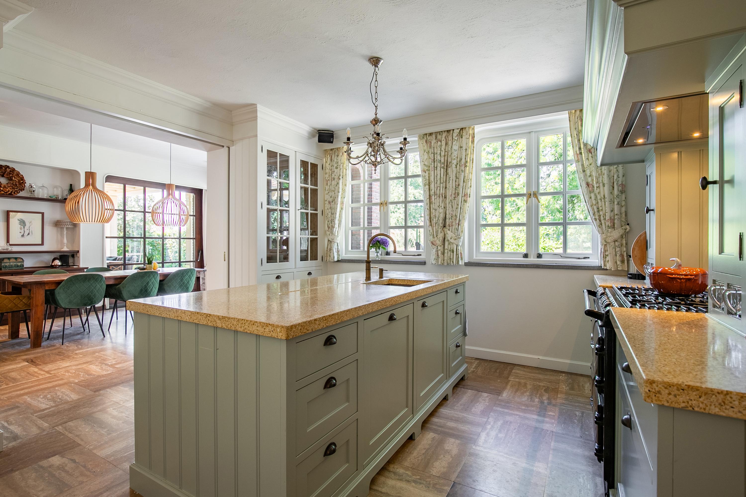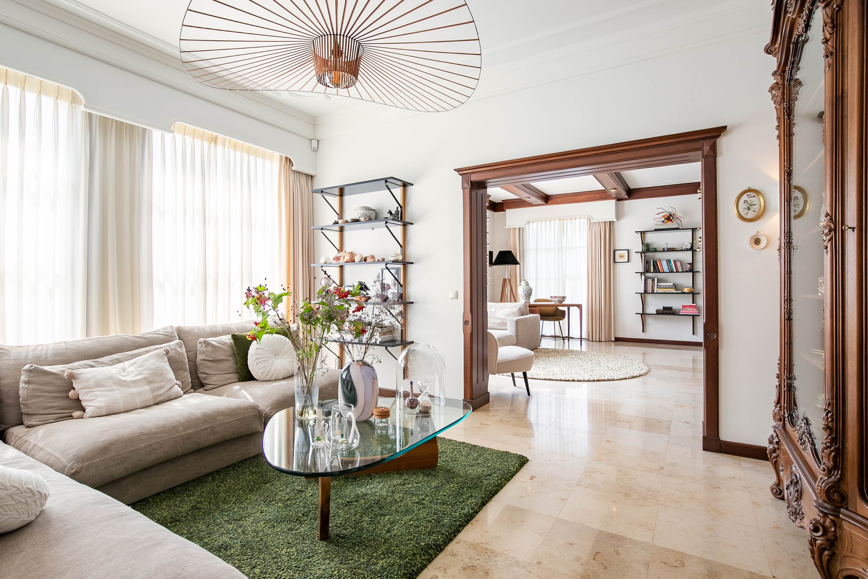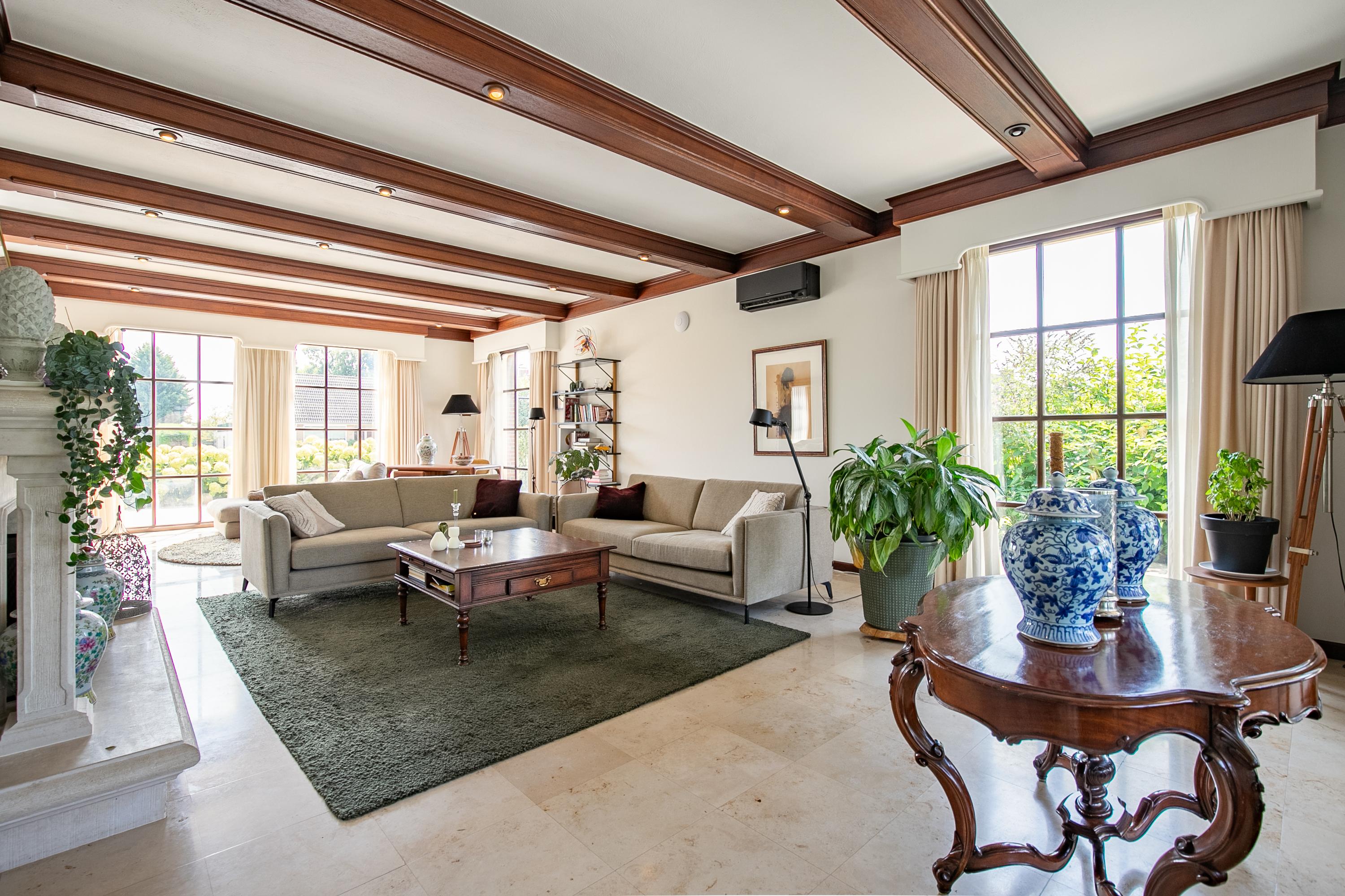Thanks to the large glass facades and numerous windows, there is seamless contact with the beautiful landscaped garden, and an abundance of natural light.This comfortable home features a spacious living room, a luxurious kitchen with cooking island, a generous ground-floor (bed)room or office, five (bed)rooms on the first floor, and no less than three bathrooms.