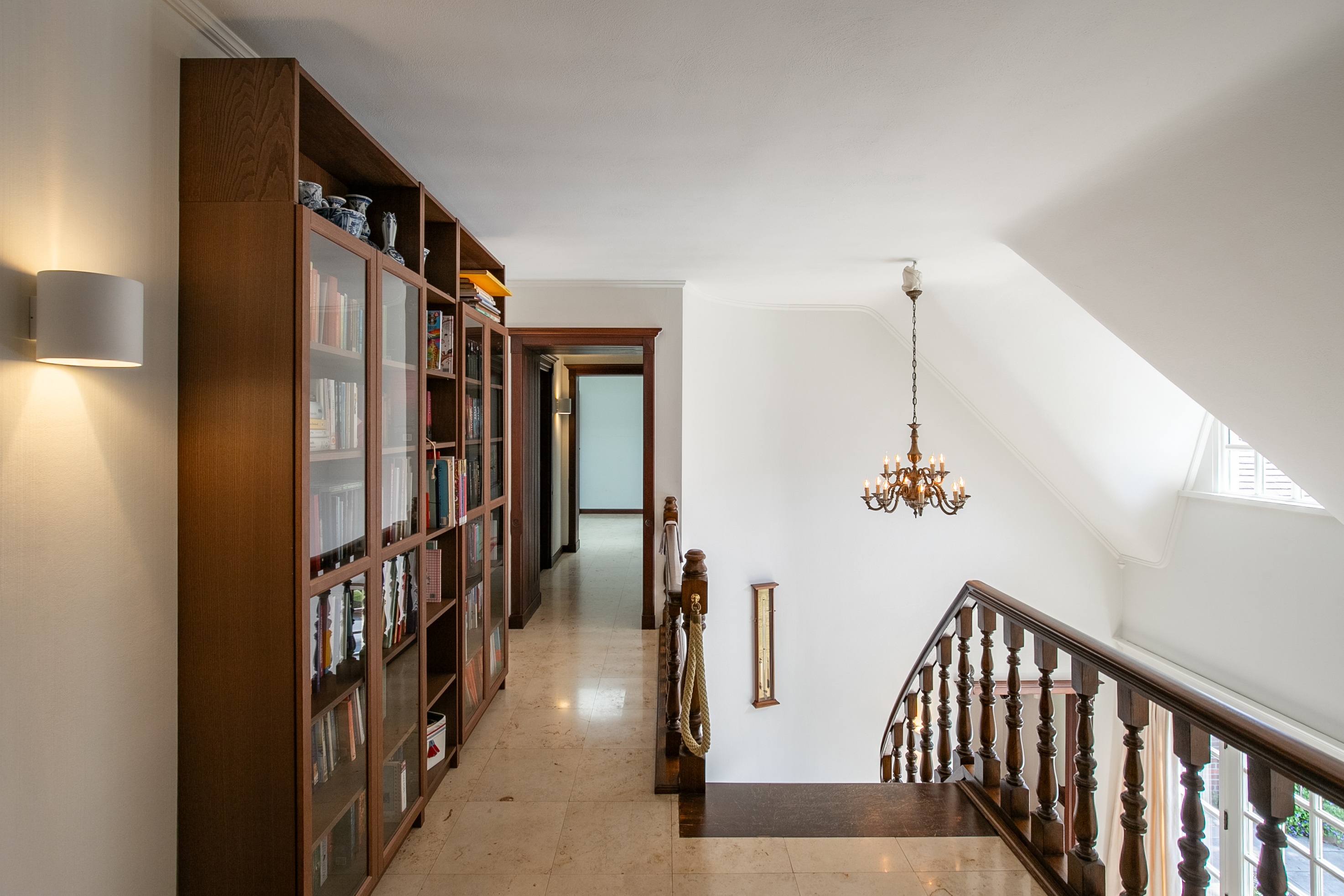 Five (bed)rooms and two bathrooms. The master suite at the rear includes: En-suite bathroom with walk-in shower, bathtub, toilet, bidet, and double vanity, walk-in closet, balcony overlooking the garden.