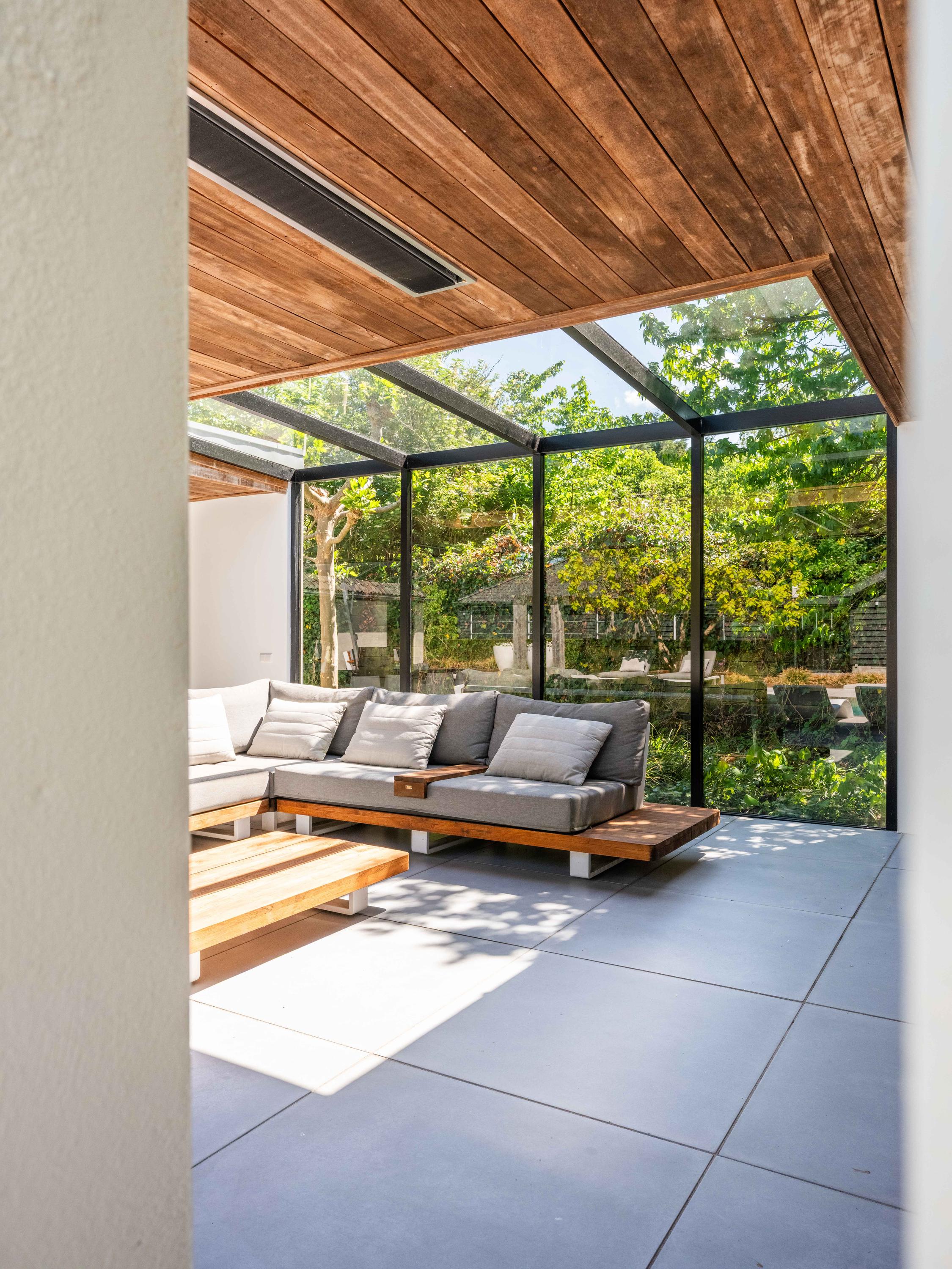 From the living room you have access to the conservatory, which is equipped with a fireplace, a pantry and a large lounge area. From the conservatory, you have beautiful views over the spaciously landscaped garden.