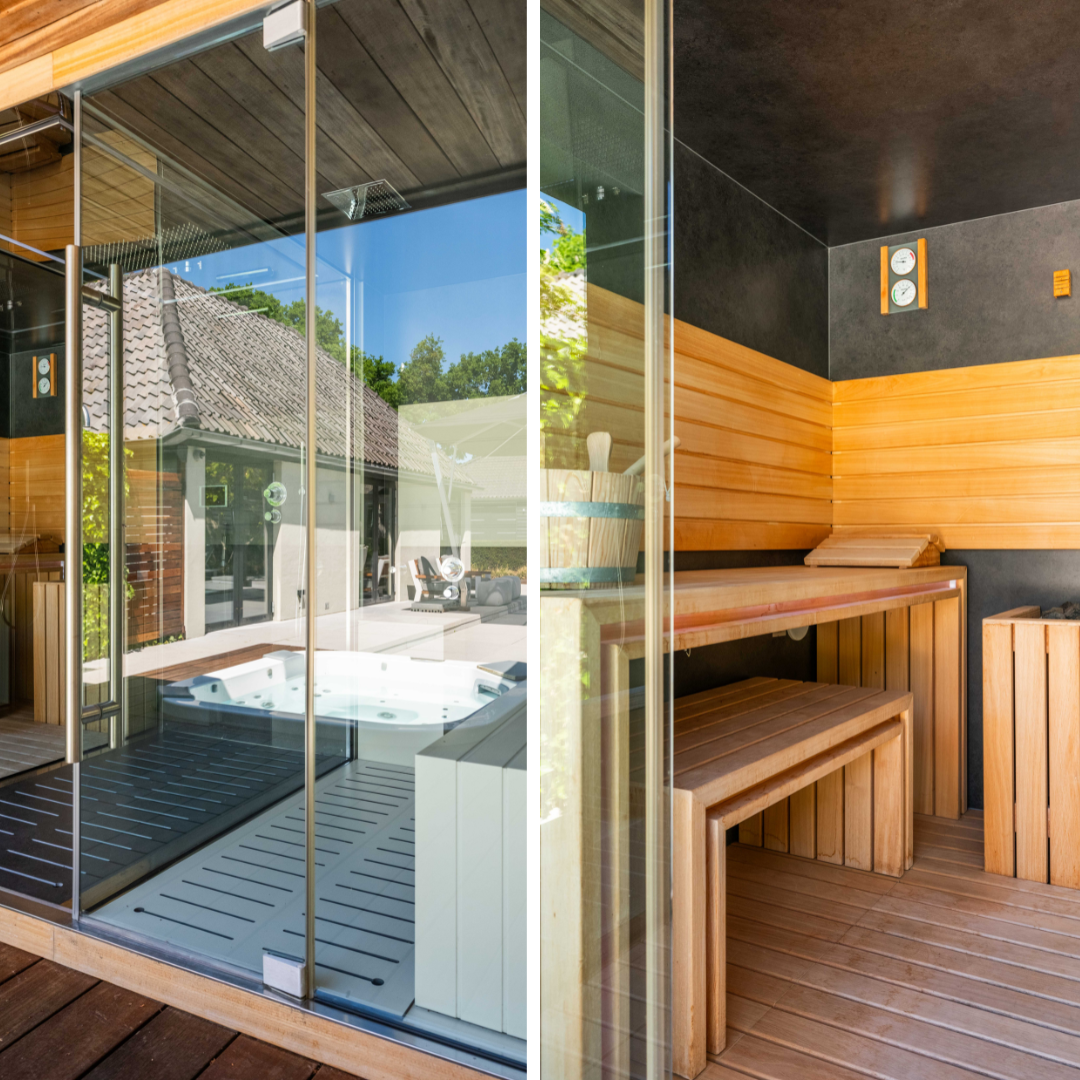 Next to the garage is an outbuilding that has several facilities and can be used for various purposes. This cottage also offers beautiful views over the plot and the swimming pool.