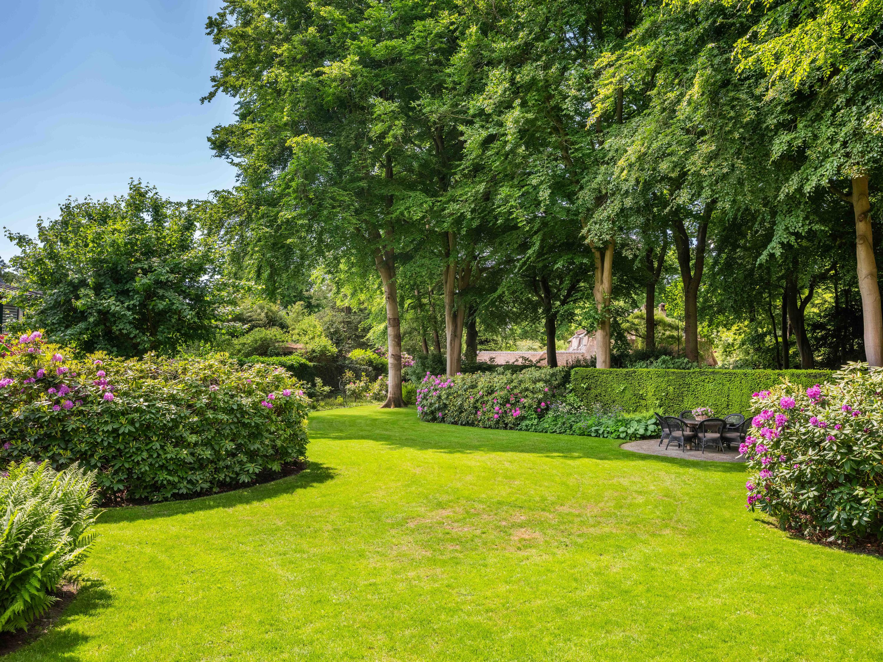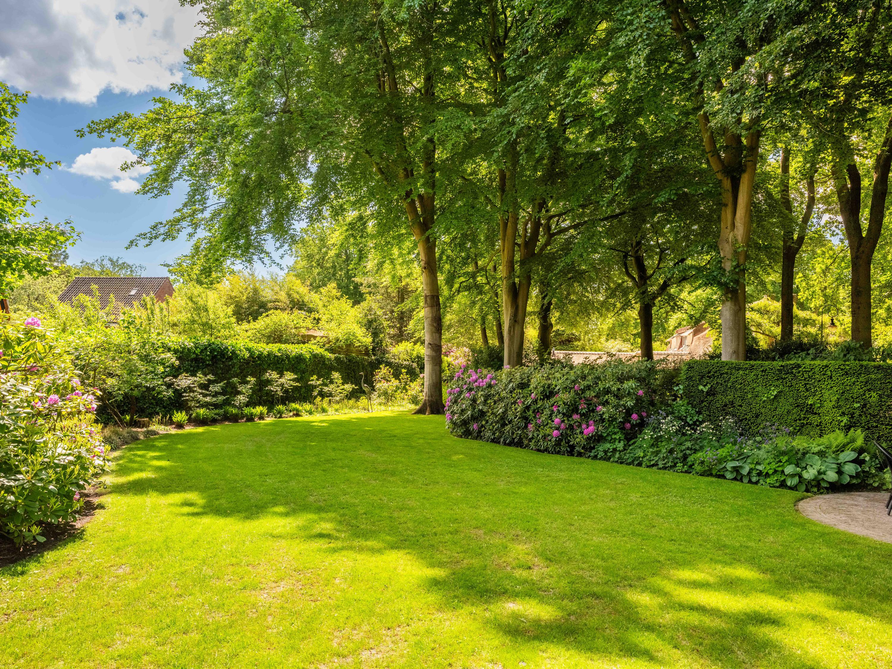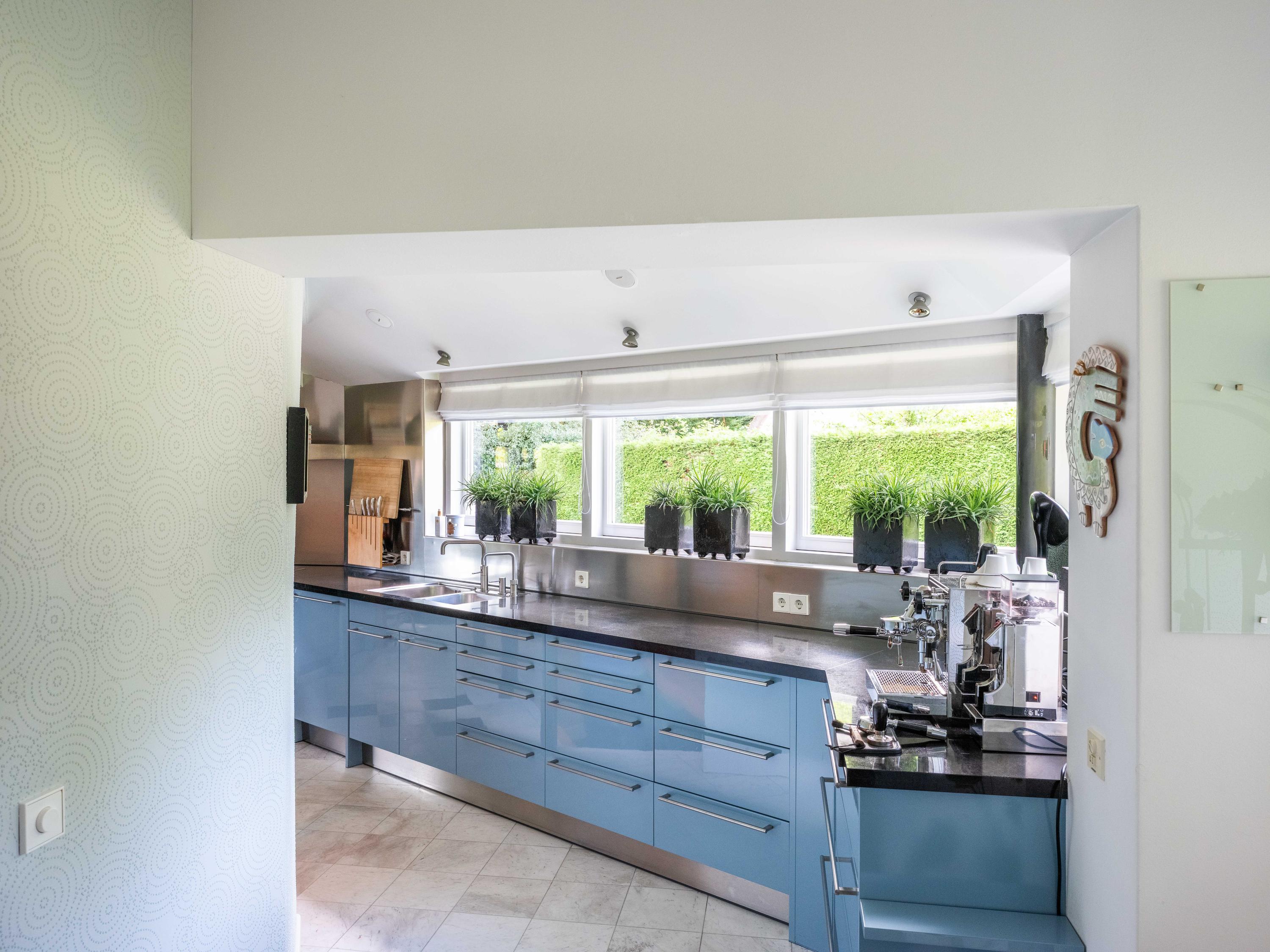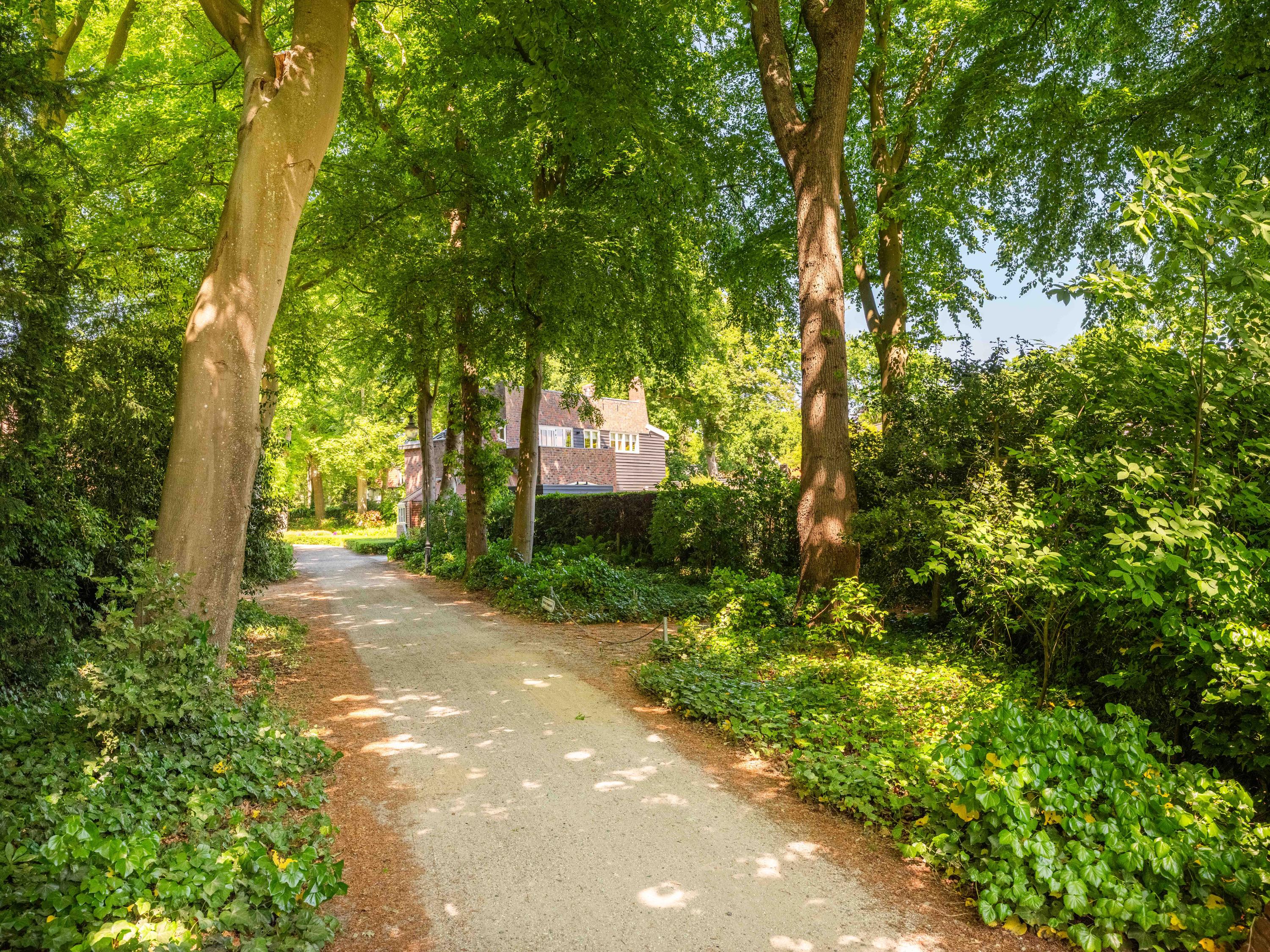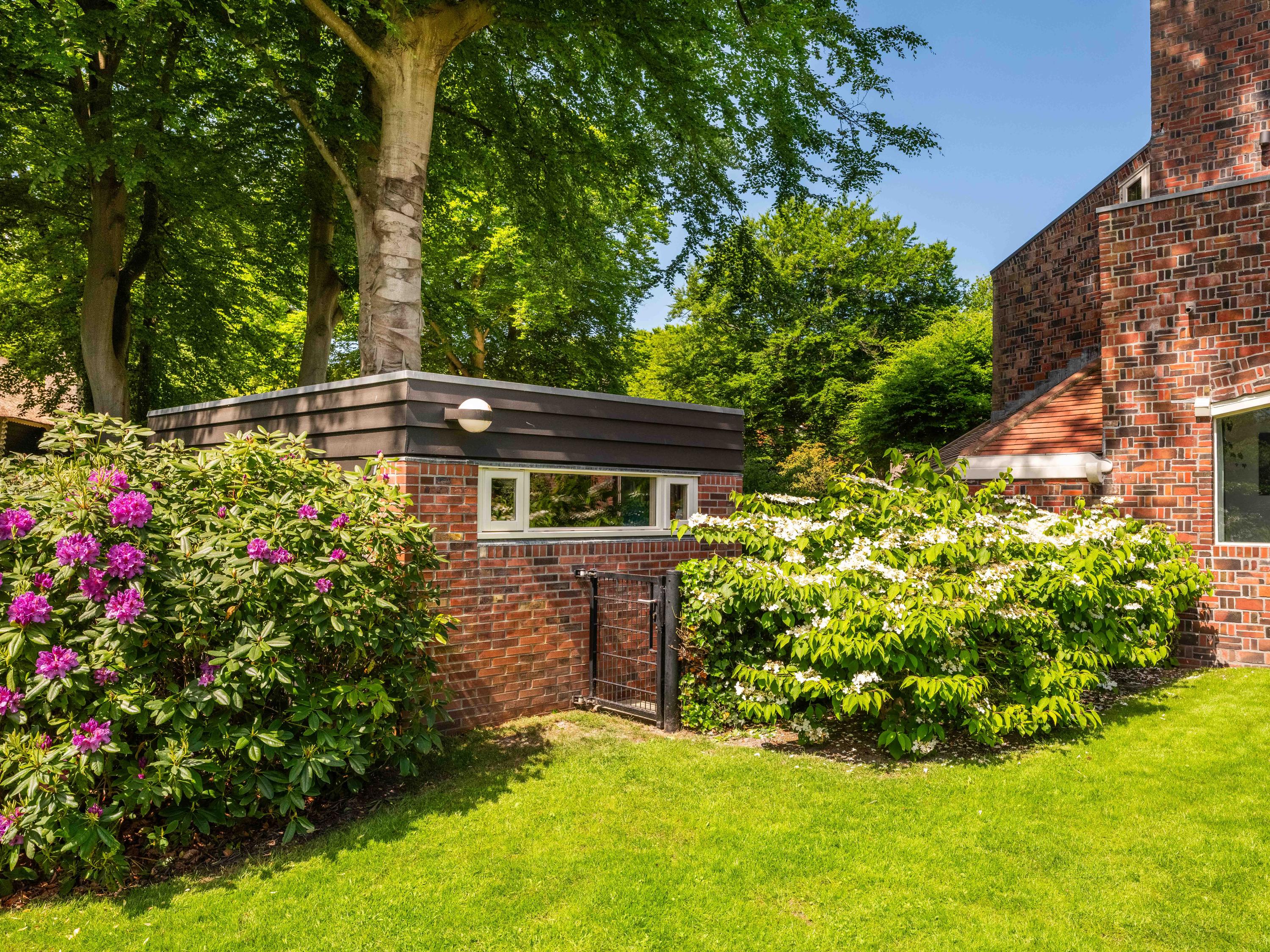 The beautiful park garden with privet hedges, flower beds and impressive trees surrounds the villa. Next to the villa is a fully insulated shed built in the same style, which can be used to store bicycles, garden equipment, etc. It also houses the central vacuum cleaning system and the pump and watering system for the garden.