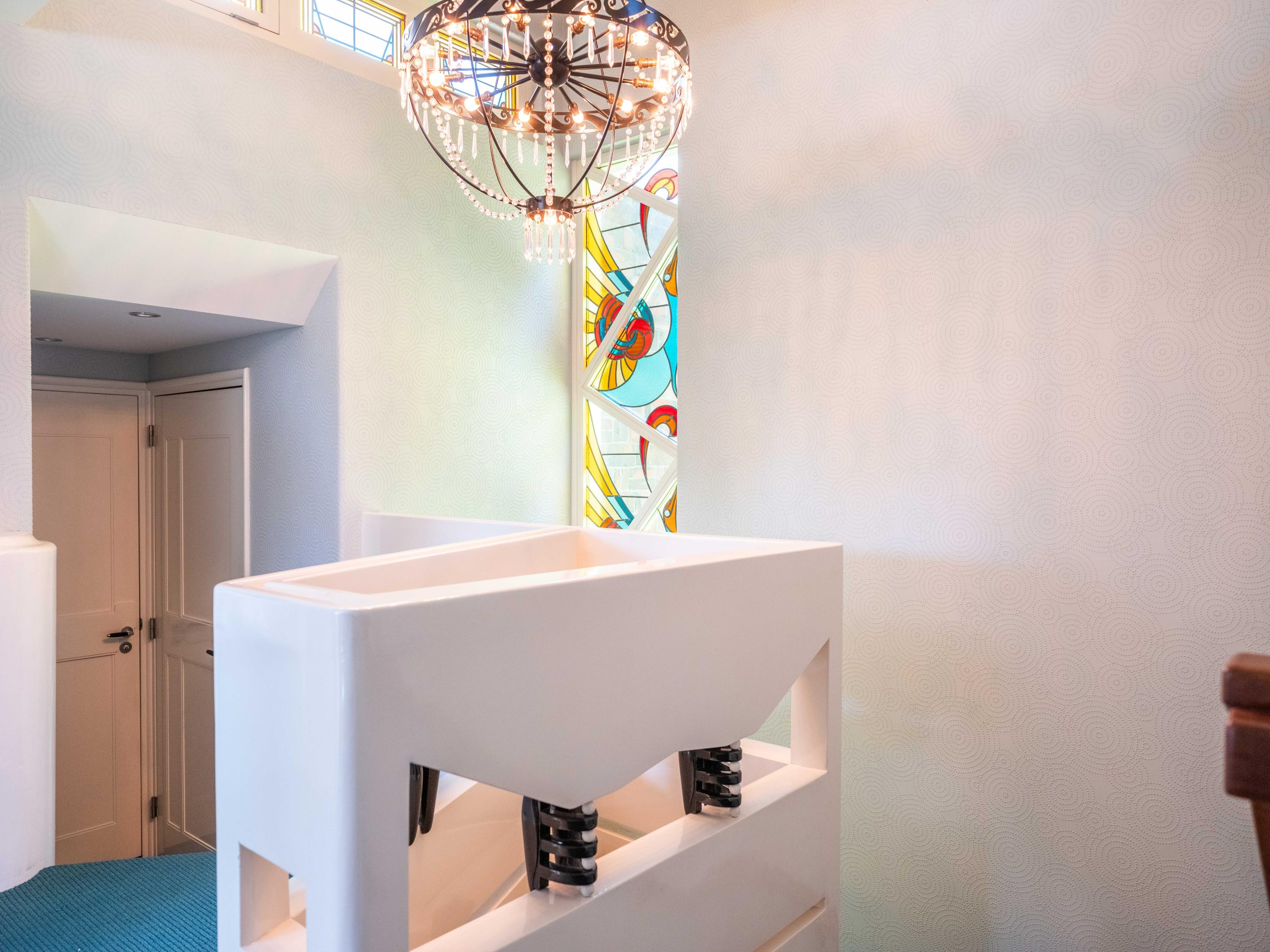 There is also a second smaller bathroom with a sink and shower on the landing.