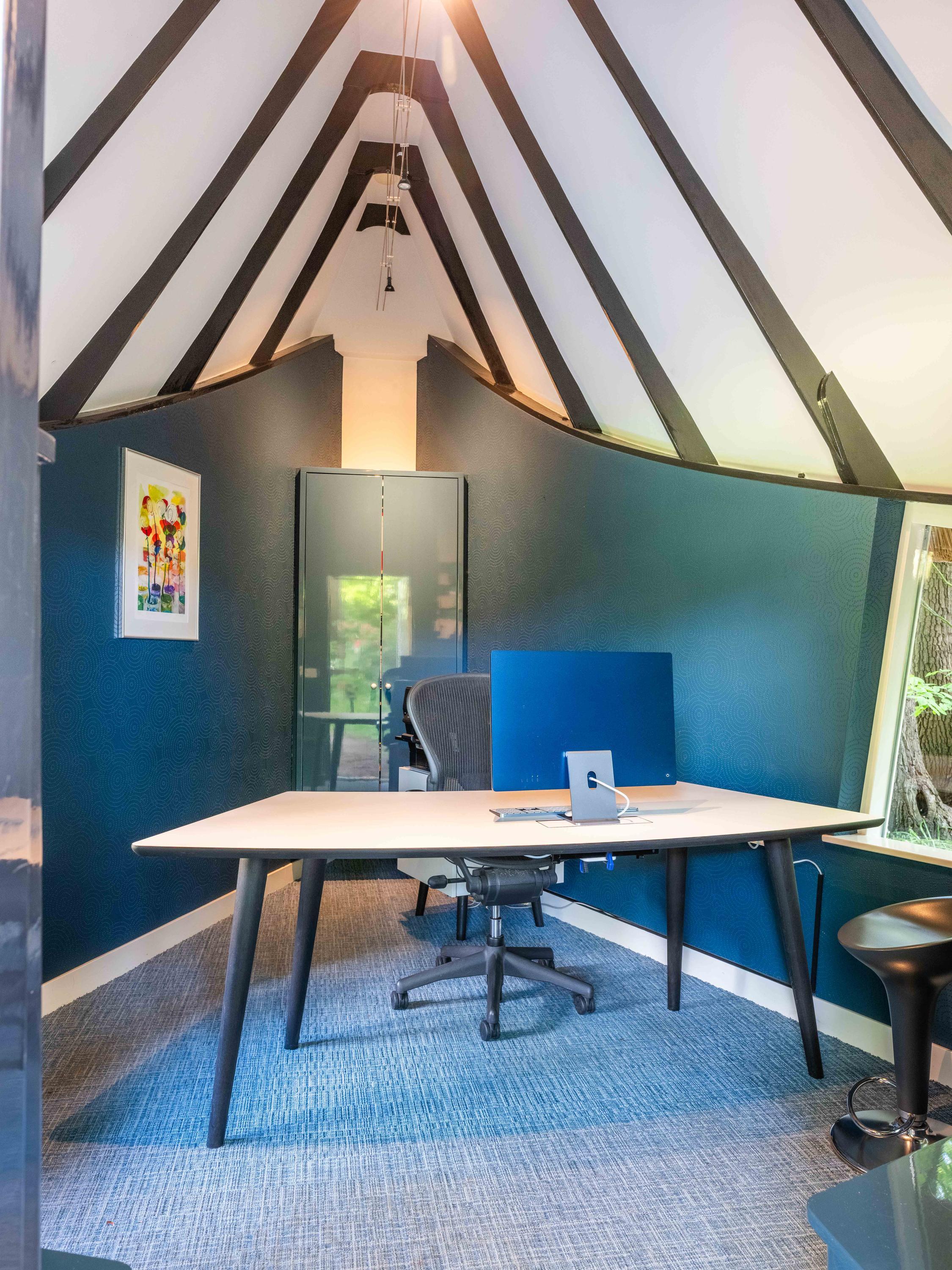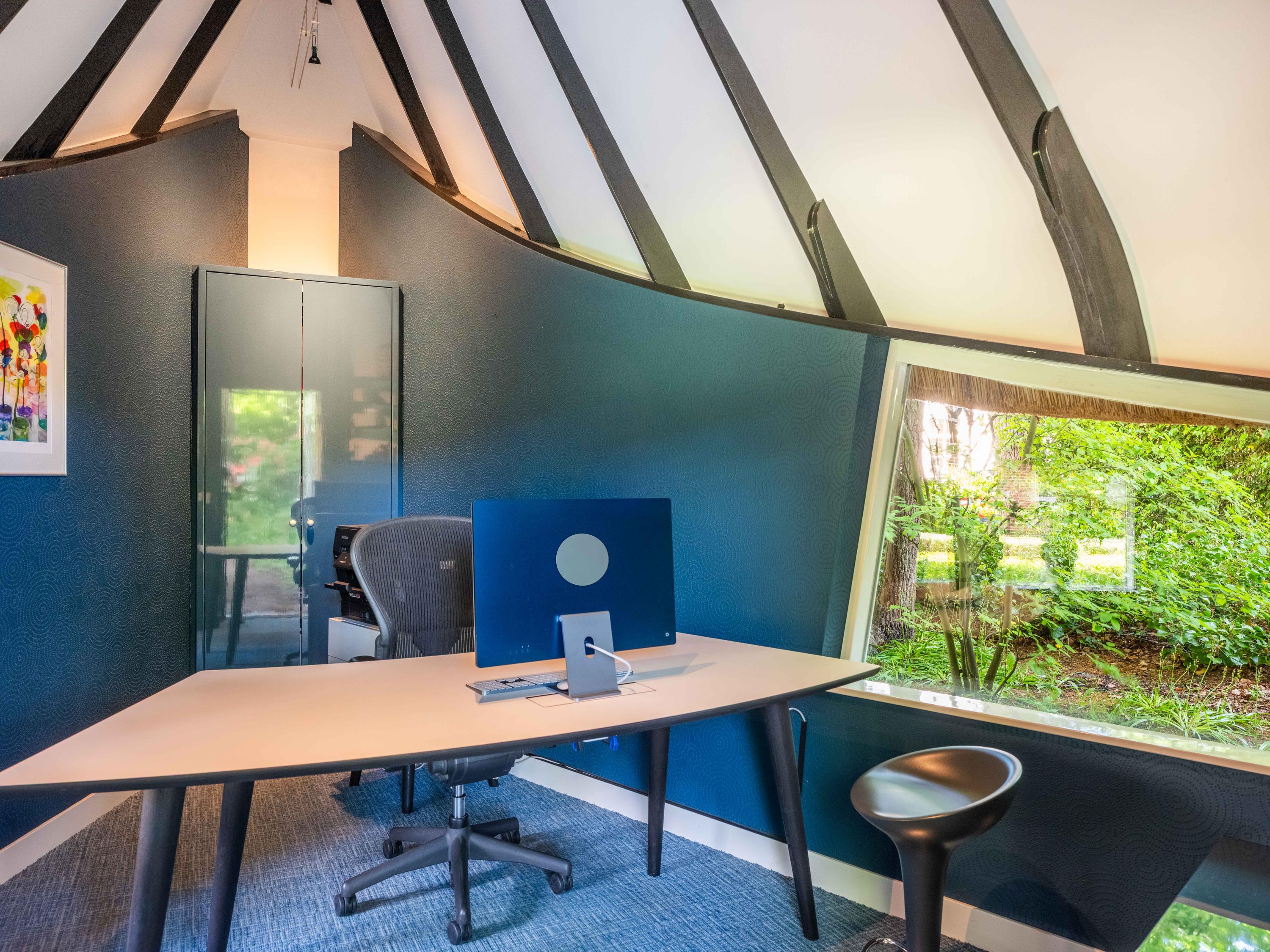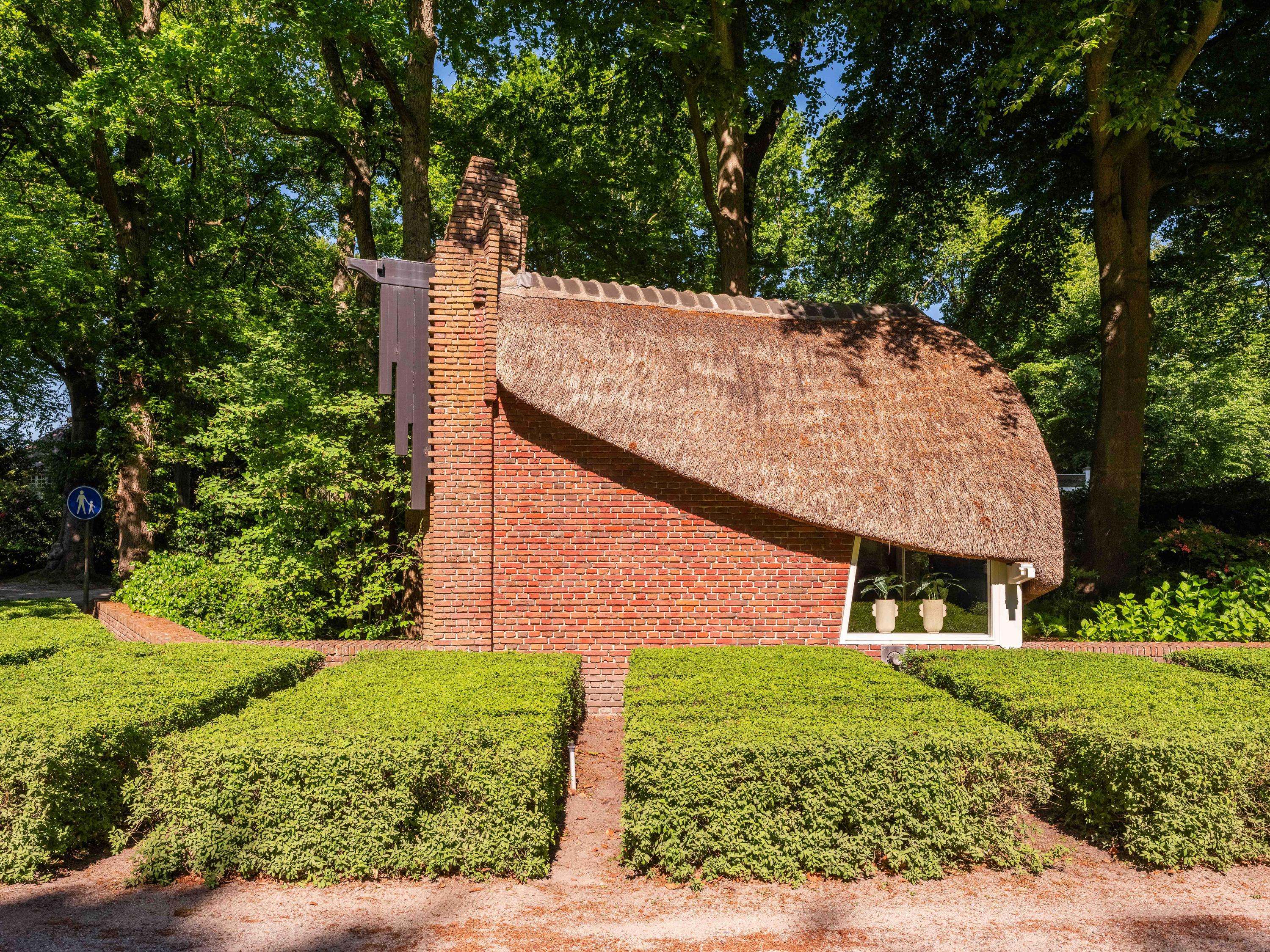 The icing on the cake is the ‘entrance’ cottage, located at the front of the plot, between the privet hedges. This characteristic building with a thatched roof evokes the image of a ‘sloop moored to the Ark’. A delightful workplace with authentic Amsterdam School elements.