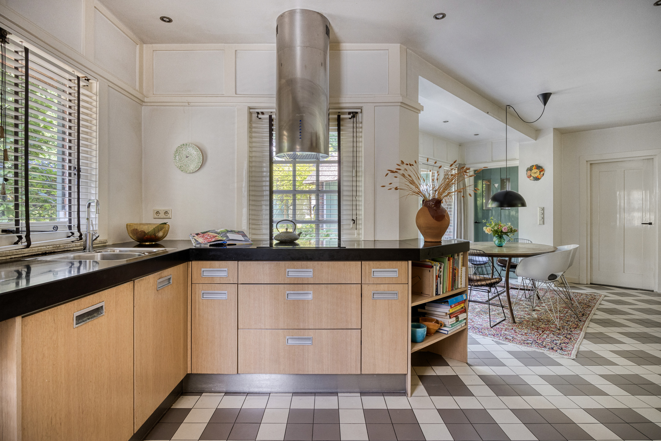 On a generous plot of 1,310 m², directly at the edge of the forest in Bergen, lies Villa De Reigertoren. This characteristic villa, built in 1918, is a listed National Monument, designed by architect J.B. van Loghem on behalf of the Selleger-Elout couple. The combination of geometric shapes, organic lines, and meticulous detailing makes this a residence of exceptional class.