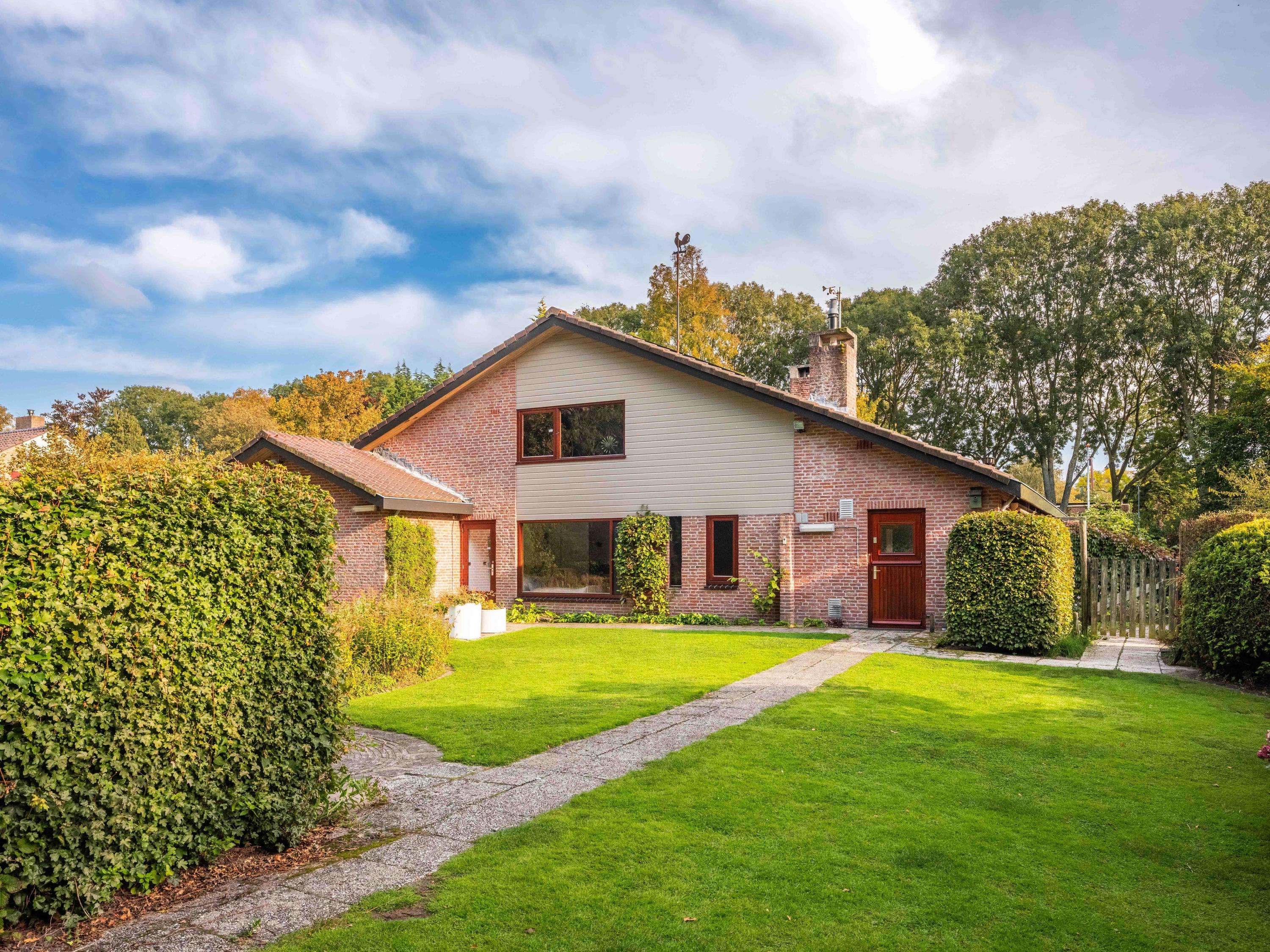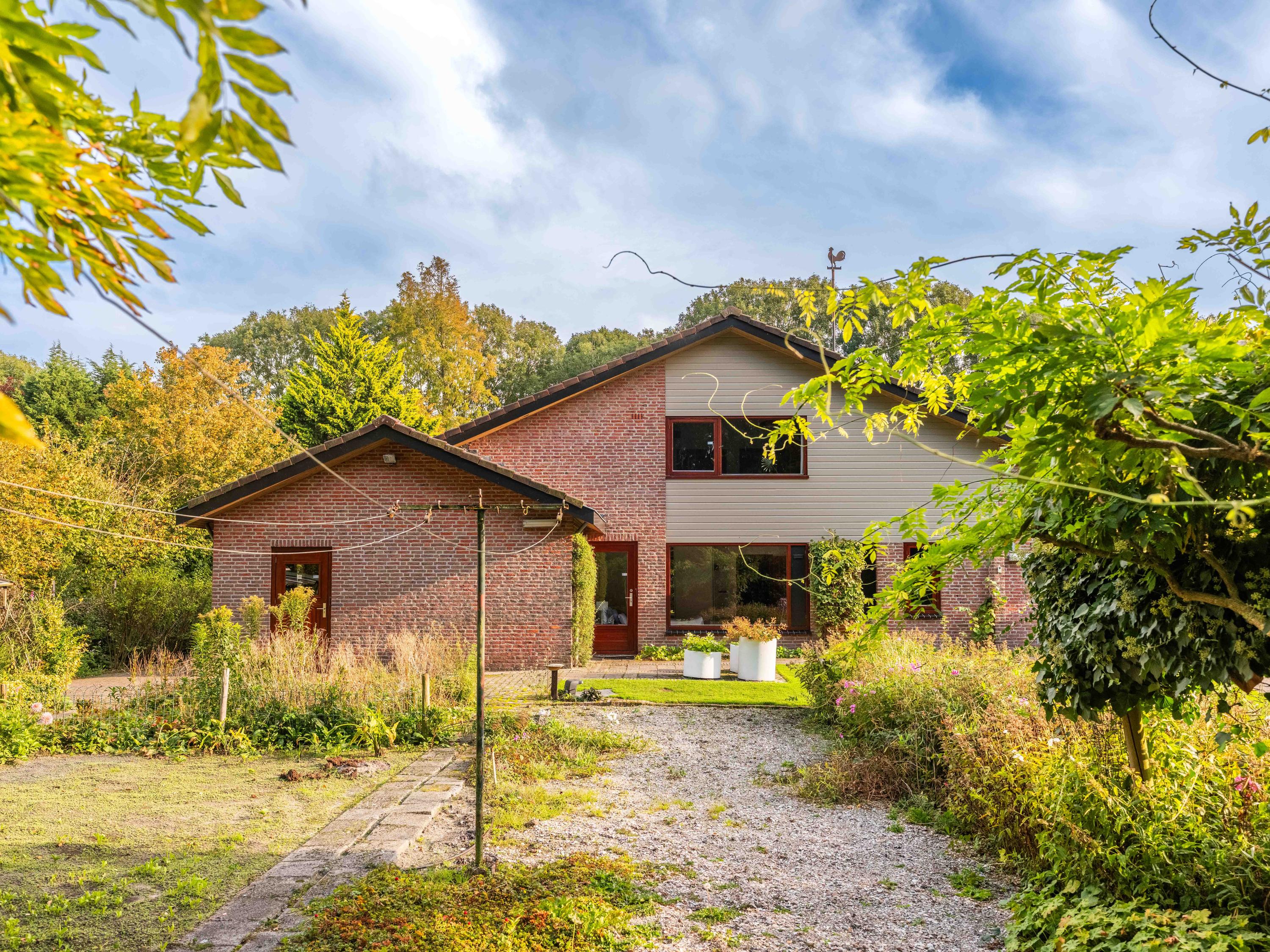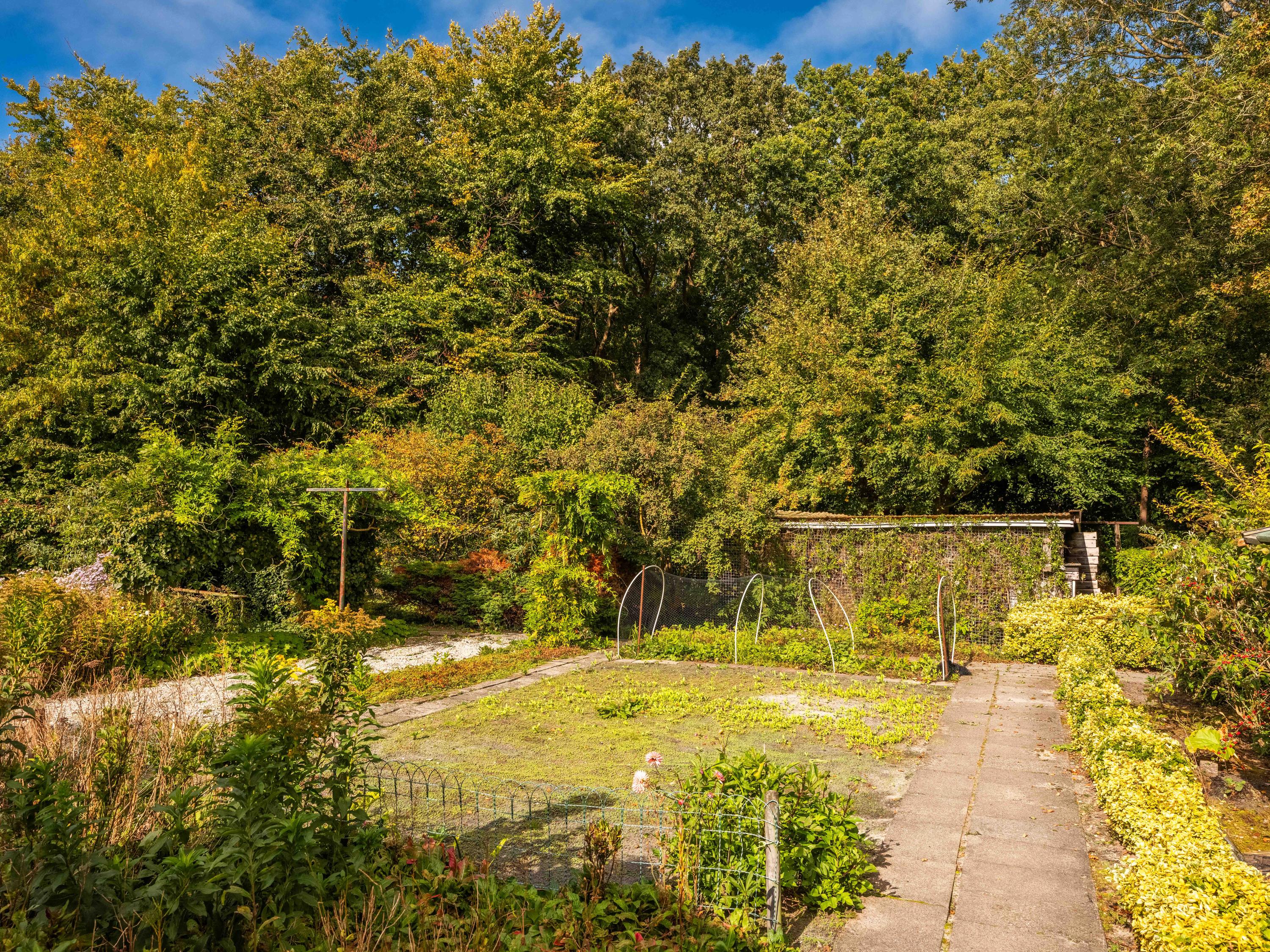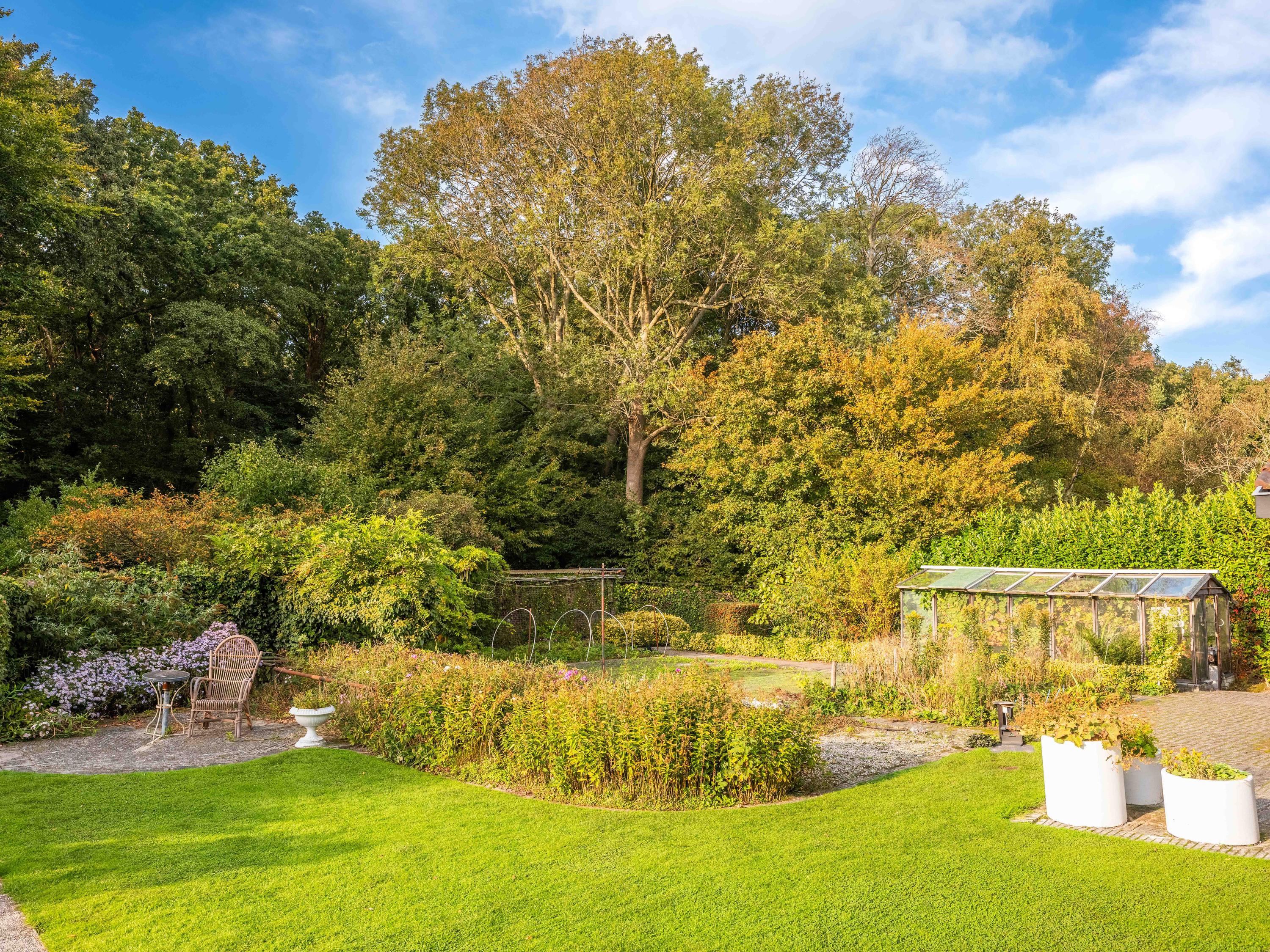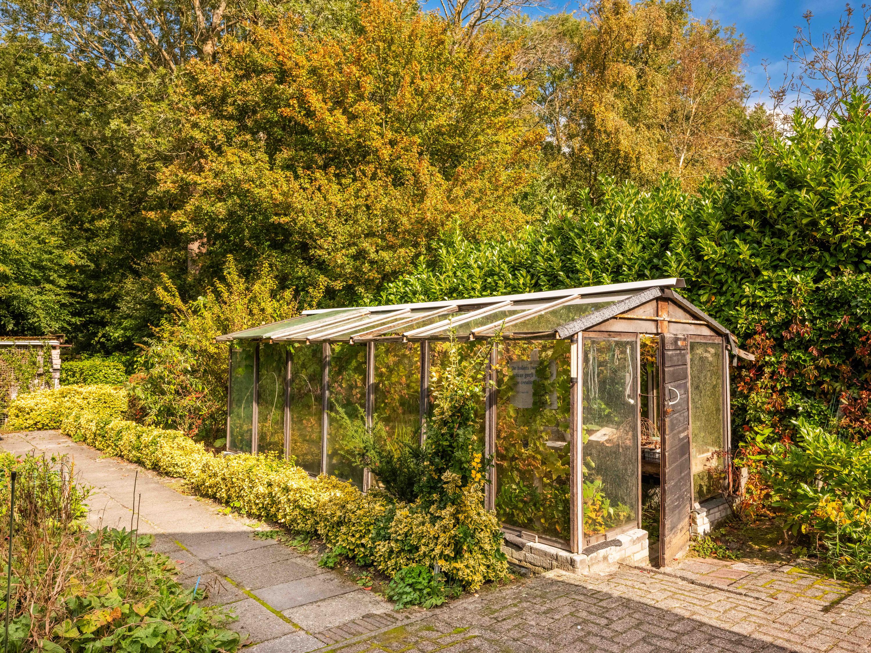 We would also like to mention a few extras. The large attached garage is accessible from inside and offers ample space for bicycles, cars or other items. Cars can also be easily parked on the property, as there is plenty of space. The garden has several terraces and offers plenty of sun and privacy. It has taken 43 years to turn it into a colourful whole. And there is a greenhouse! The surrounding garden offers plenty of sun and privacy. In terms of sustainability, we can report that there are already 8 solar panels, wall insulation and mostly double glazing (energy label C). The wine cellar is also a charming extra.