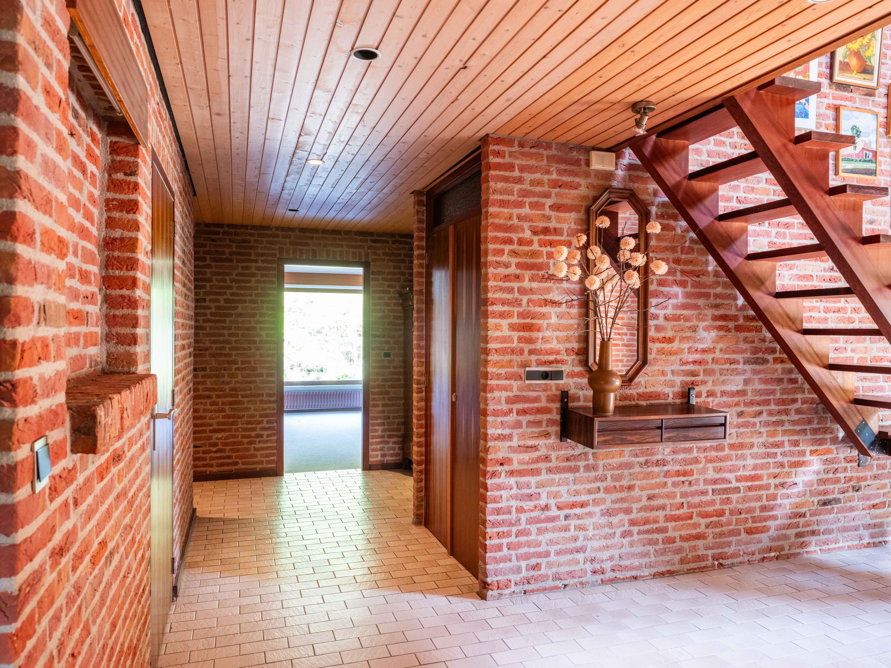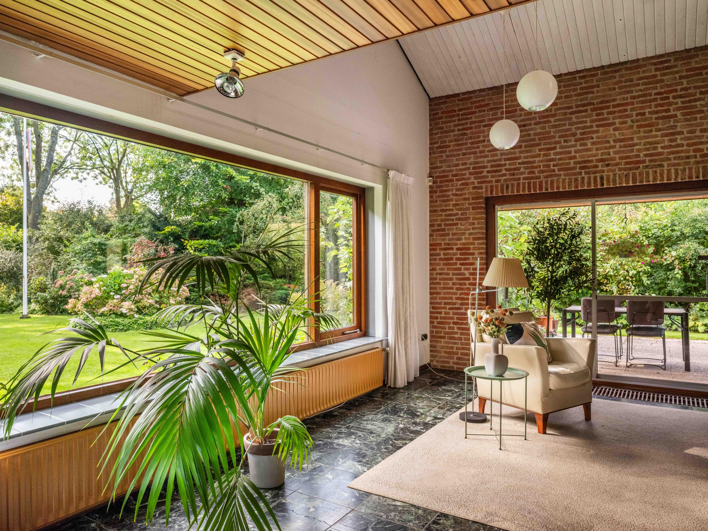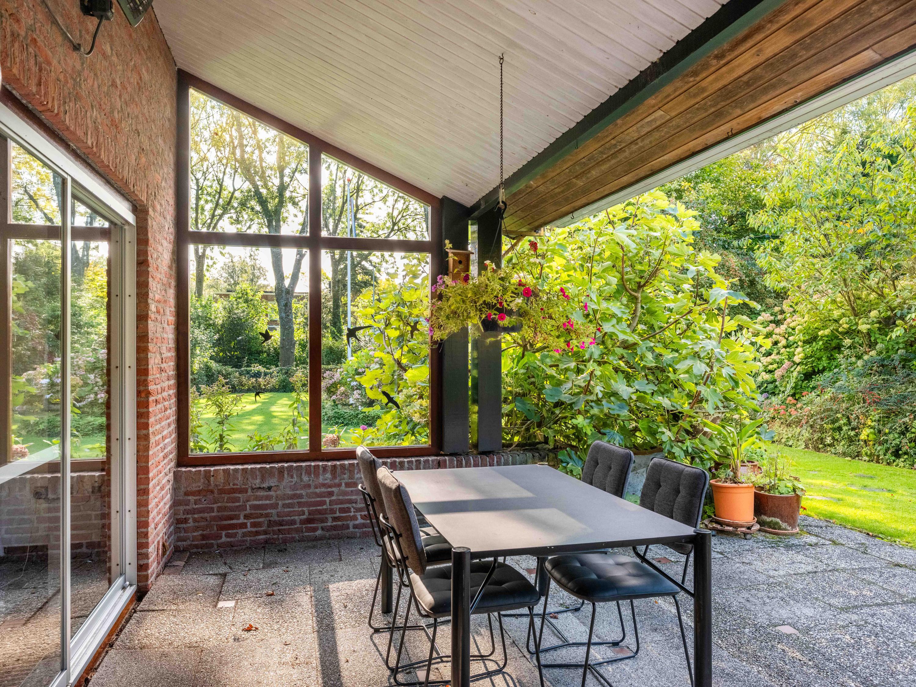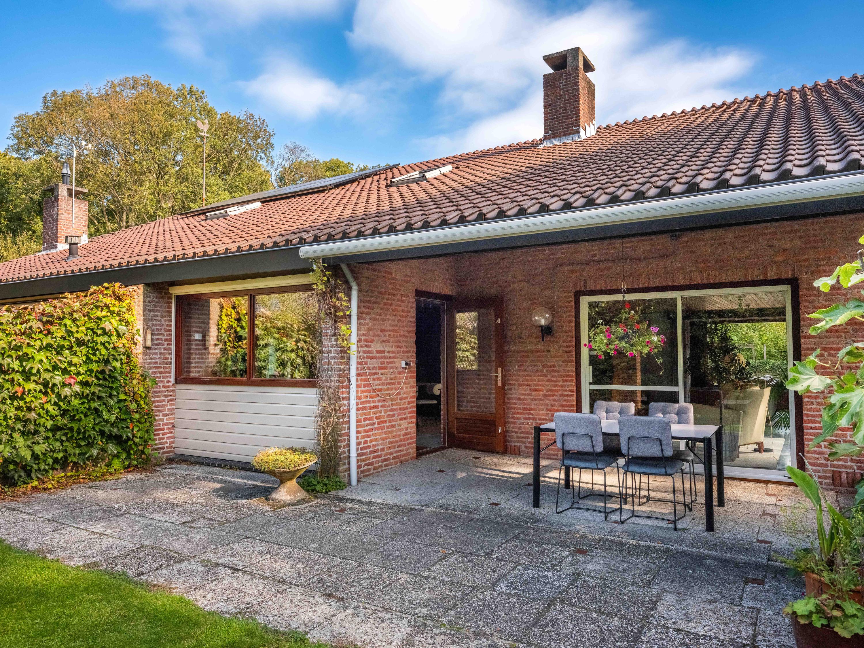 We would also like to mention a few extras. The large attached garage is accessible from inside and offers ample space for bicycles, cars or other items. Cars can also be easily parked on the property, as there is plenty of space. The garden has several terraces and offers plenty of sun and privacy. It has taken 43 years to turn it into a colourful whole. And there is a greenhouse! The surrounding garden offers plenty of sun and privacy. In terms of sustainability, we can report that there are already 8 solar panels, wall insulation and mostly double glazing (energy label C). The wine cellar is also a charming extra.