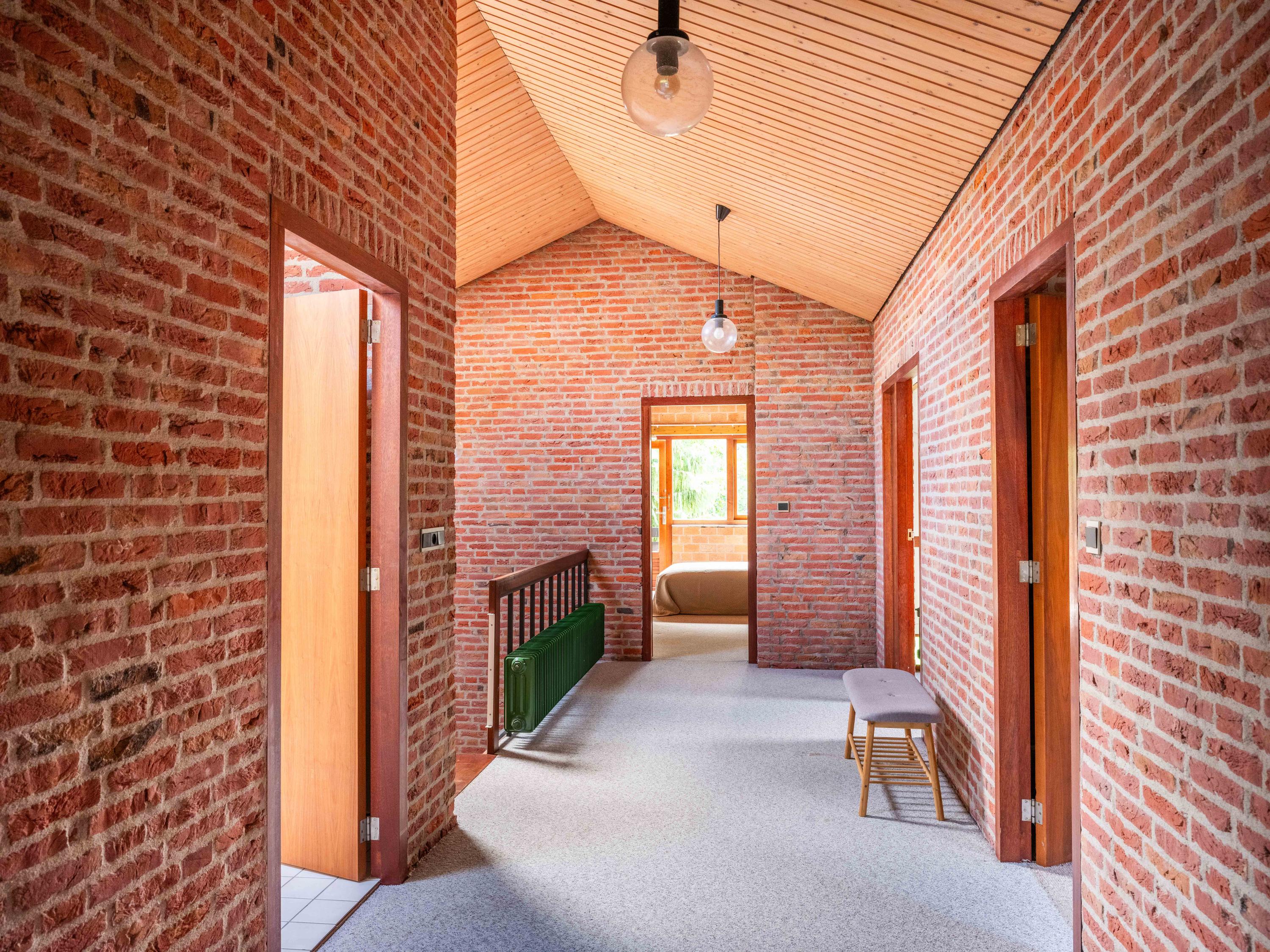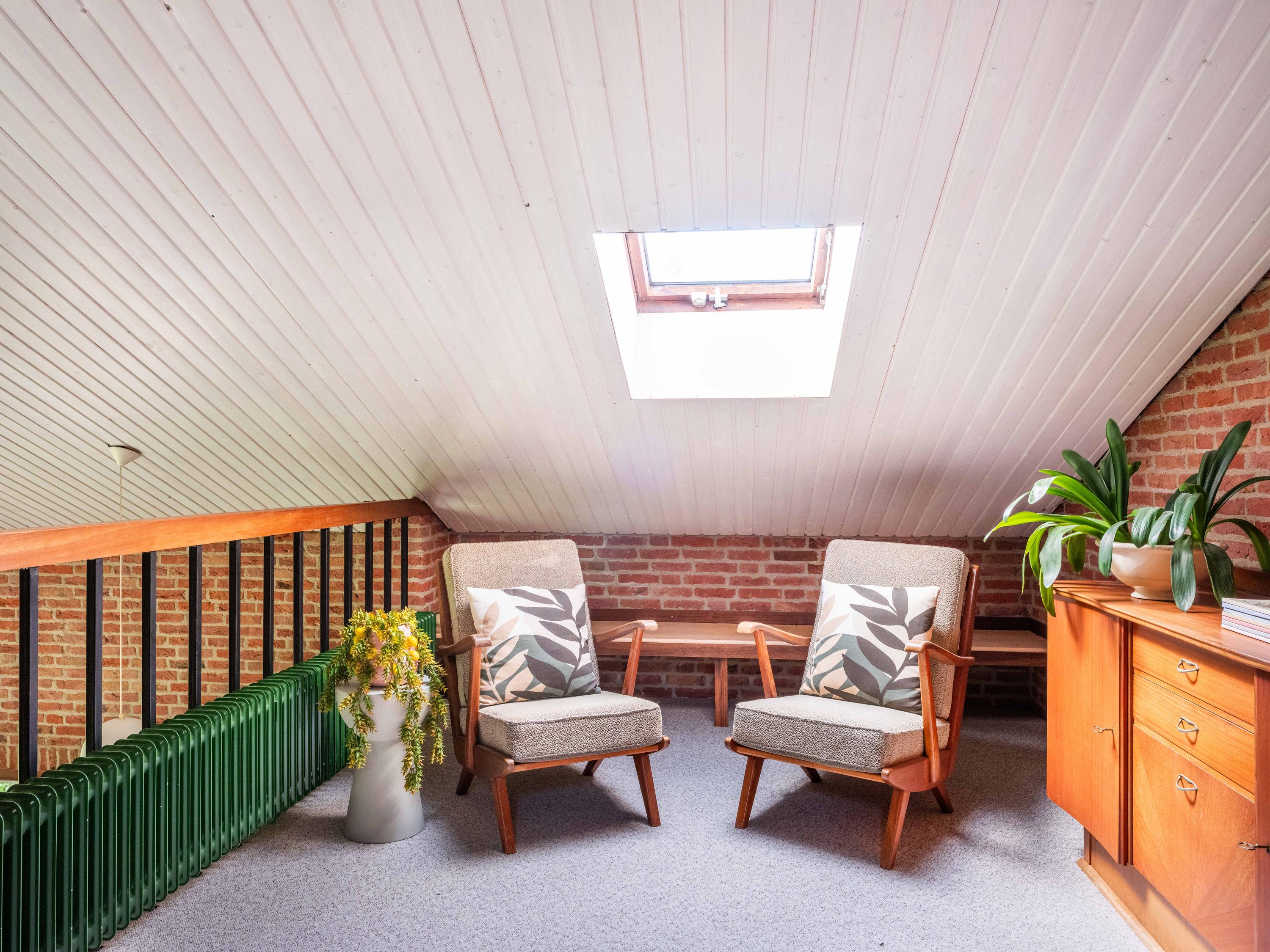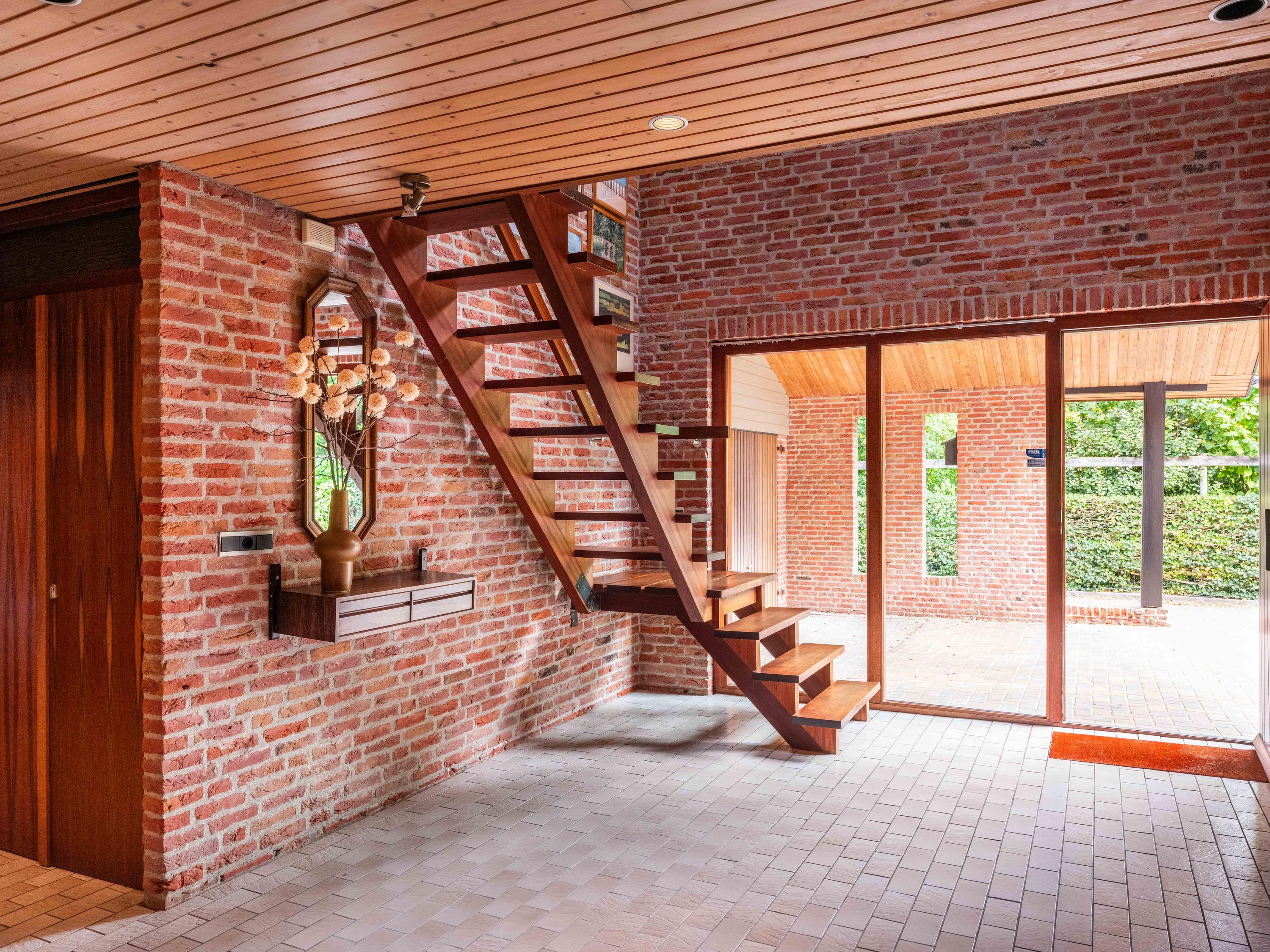 The imposing hall with its beautiful staircase offers a stylish welcome. As we enter the bright living room with fireplace, the beautiful view of the greenery is particularly striking. The kitchen is simple but functional and adjoins a practical utility room. The presence of a spacious bedroom and bathroom on the ground floor is very pleasant, making the house ideal for single-storey living. Upstairs there are two spacious bedrooms and a second bathroom. The storage attic with skylight and space for the central heating system offers possibilities for an extra room.