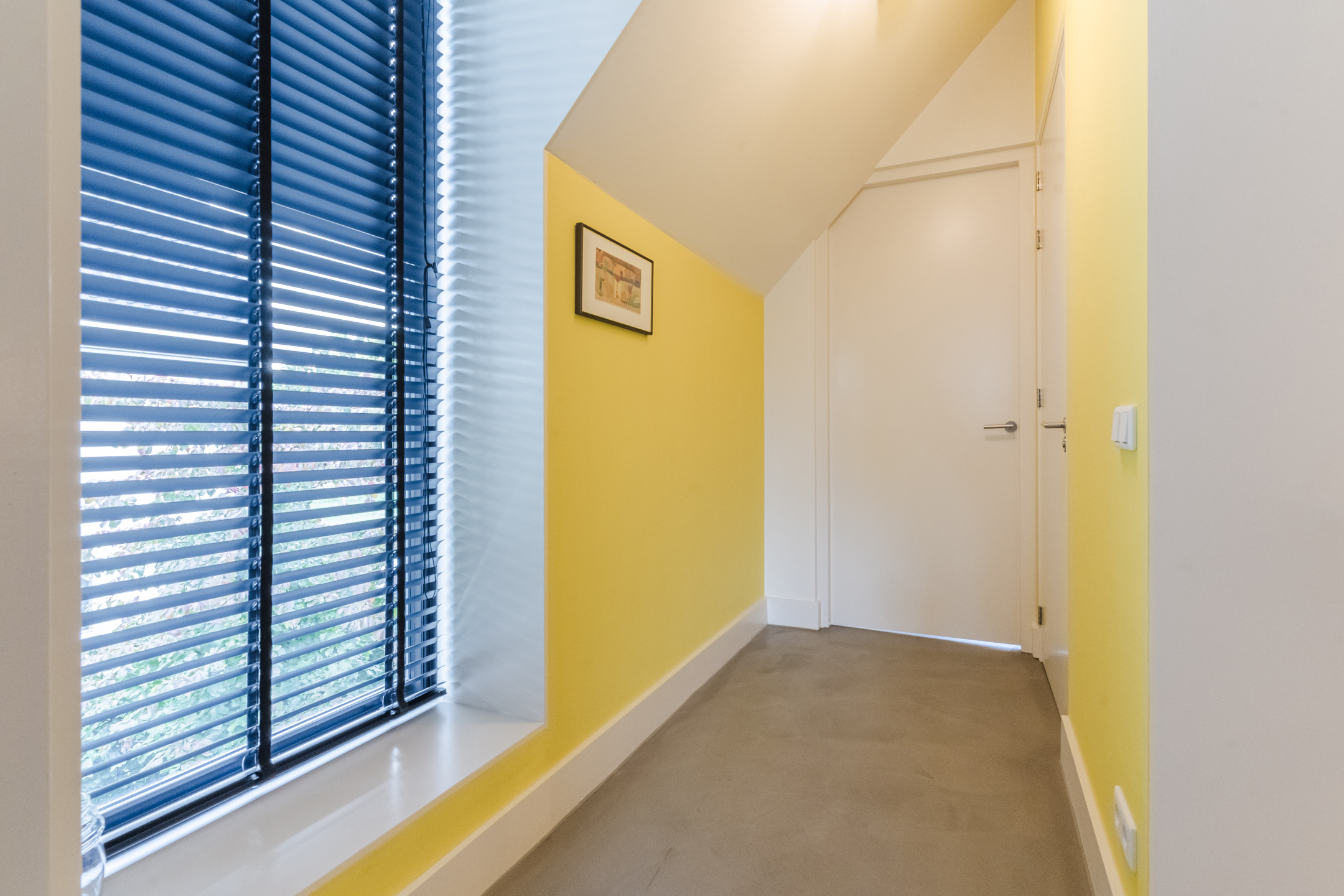 Approx. 22 m², with designer concrete flooring, plastered walls and ceiling (ceiling height approx. 4.2 m), and door to flat roof at the rear (with the solar panels).