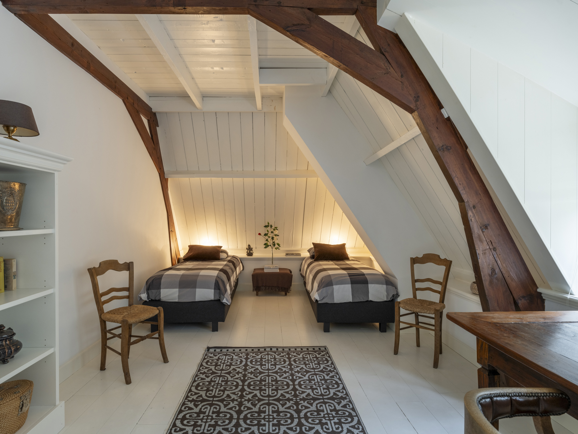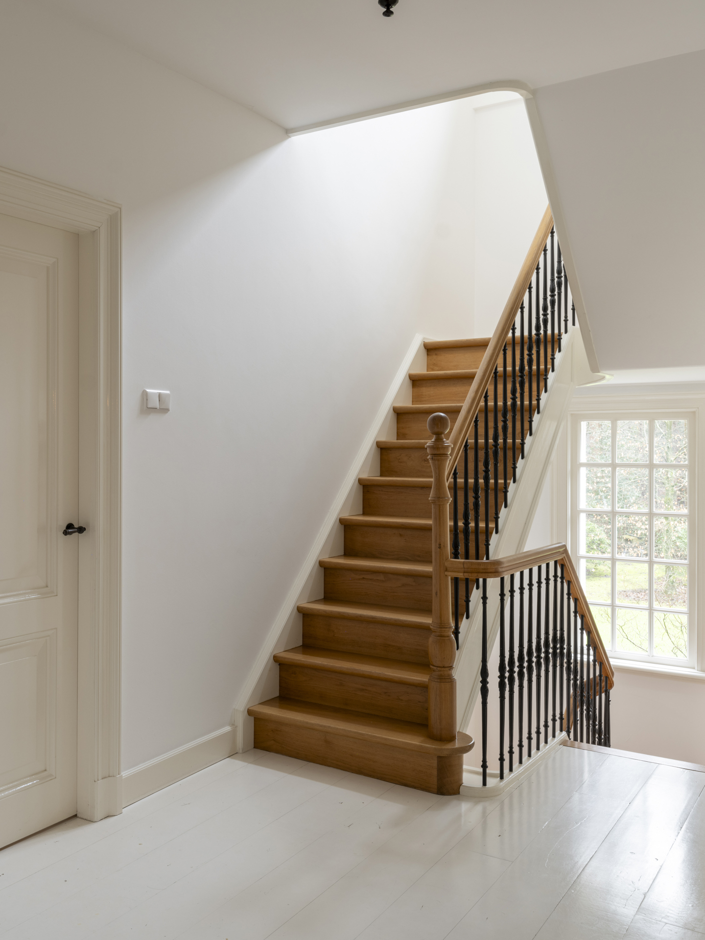 Via the classic oak staircase, you reach the first floor, which houses three bedrooms and two bathrooms.