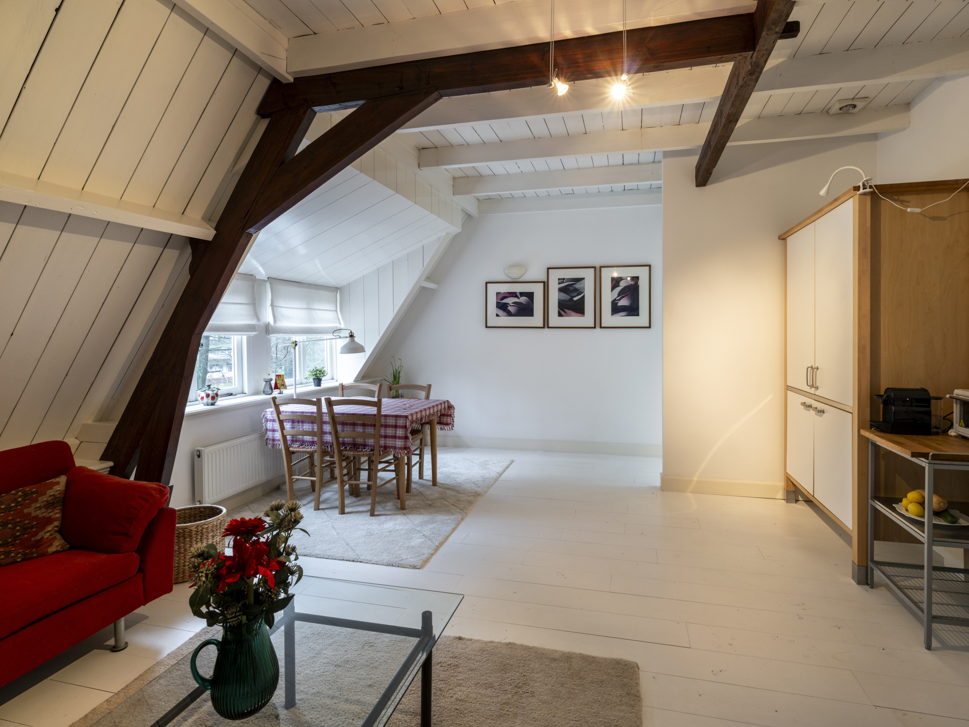 The guesthouse is heated by the villa’s central heating system, supplemented with electric heaters.