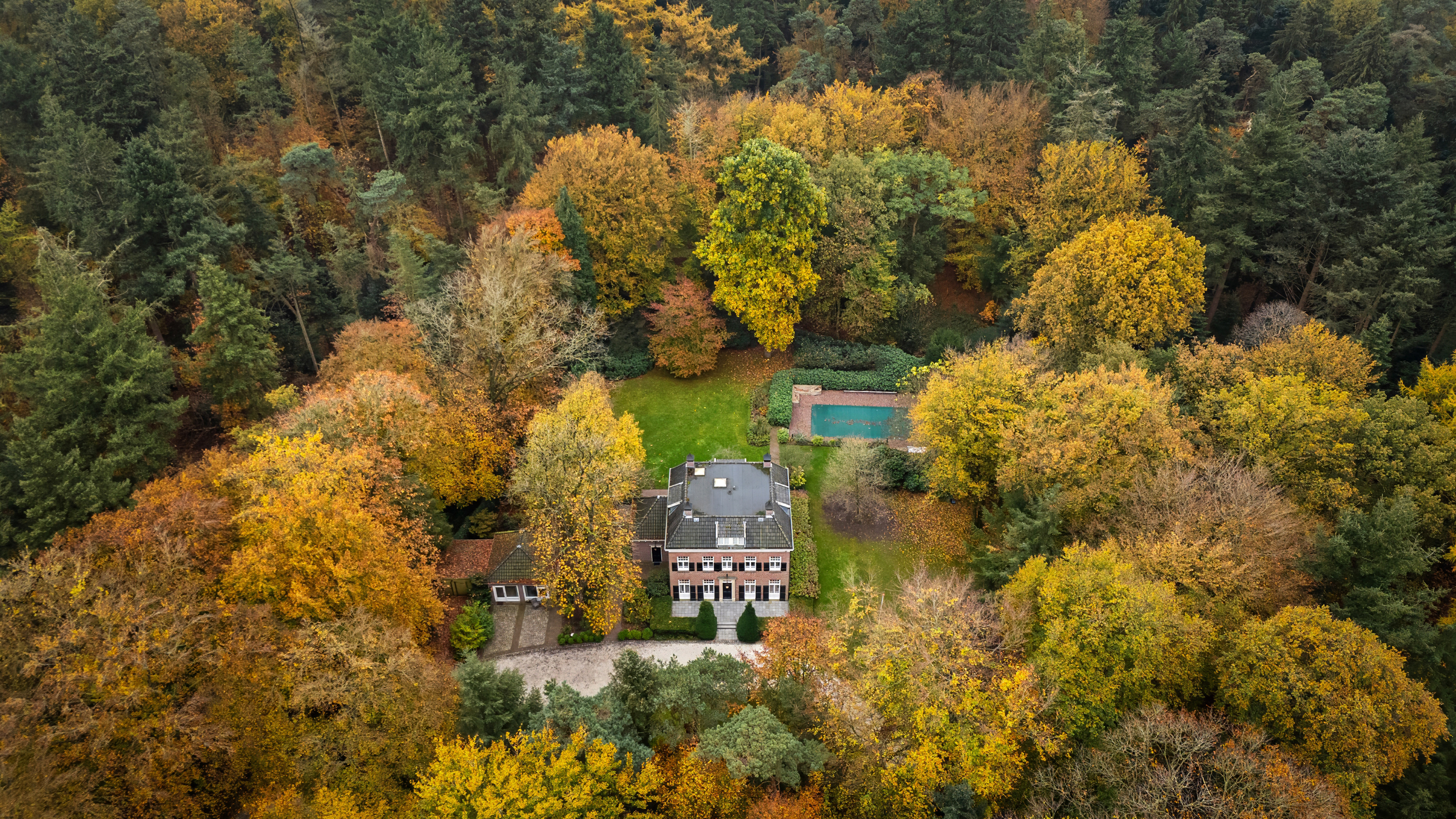 Via the stately driveway—accessible from two sides of the public road and closed off with electric gates—you reach the residence.