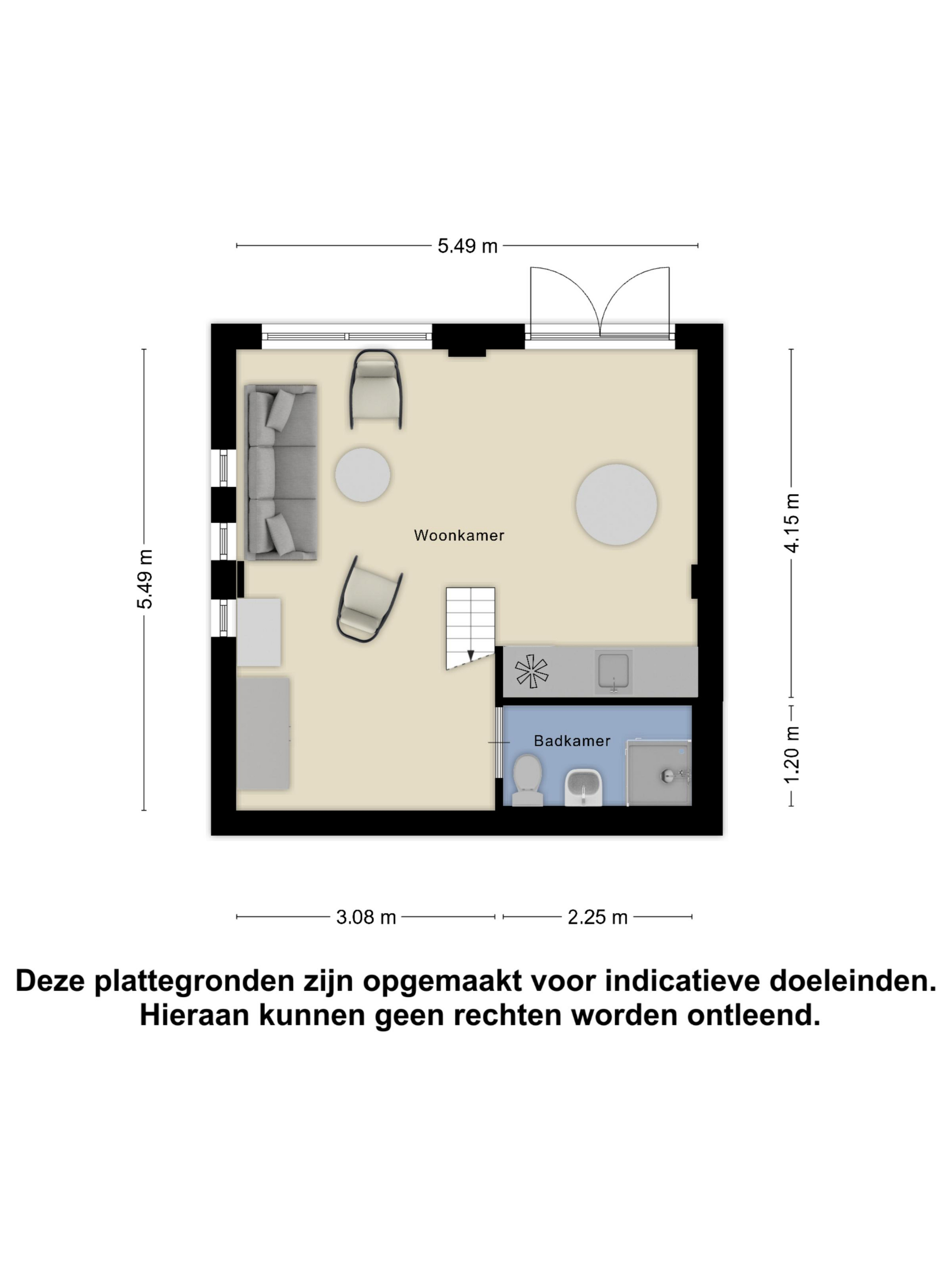 This former double garage (converted in 2007) now serves as a guesthouse. The space has laminate flooring and a kitchenette with stainless steel sink, extractor hood, and separate fridge. A bathroom includes a shower, toilet, and washbasin. A boiler provides hot water.