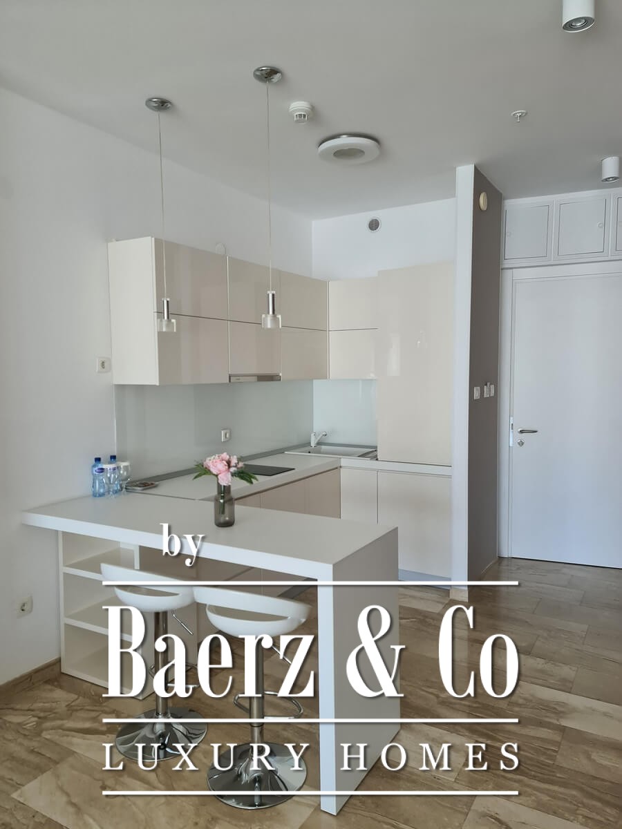 Apartment is located on floor 12 of modern building, 100 m from the sea and 300 m from Budva Old Town. Apartment is fully furnished, with 1 bedroom and 1 bathroom and views to the town and hills. It has exellent rental potential for the season period and long term rent.