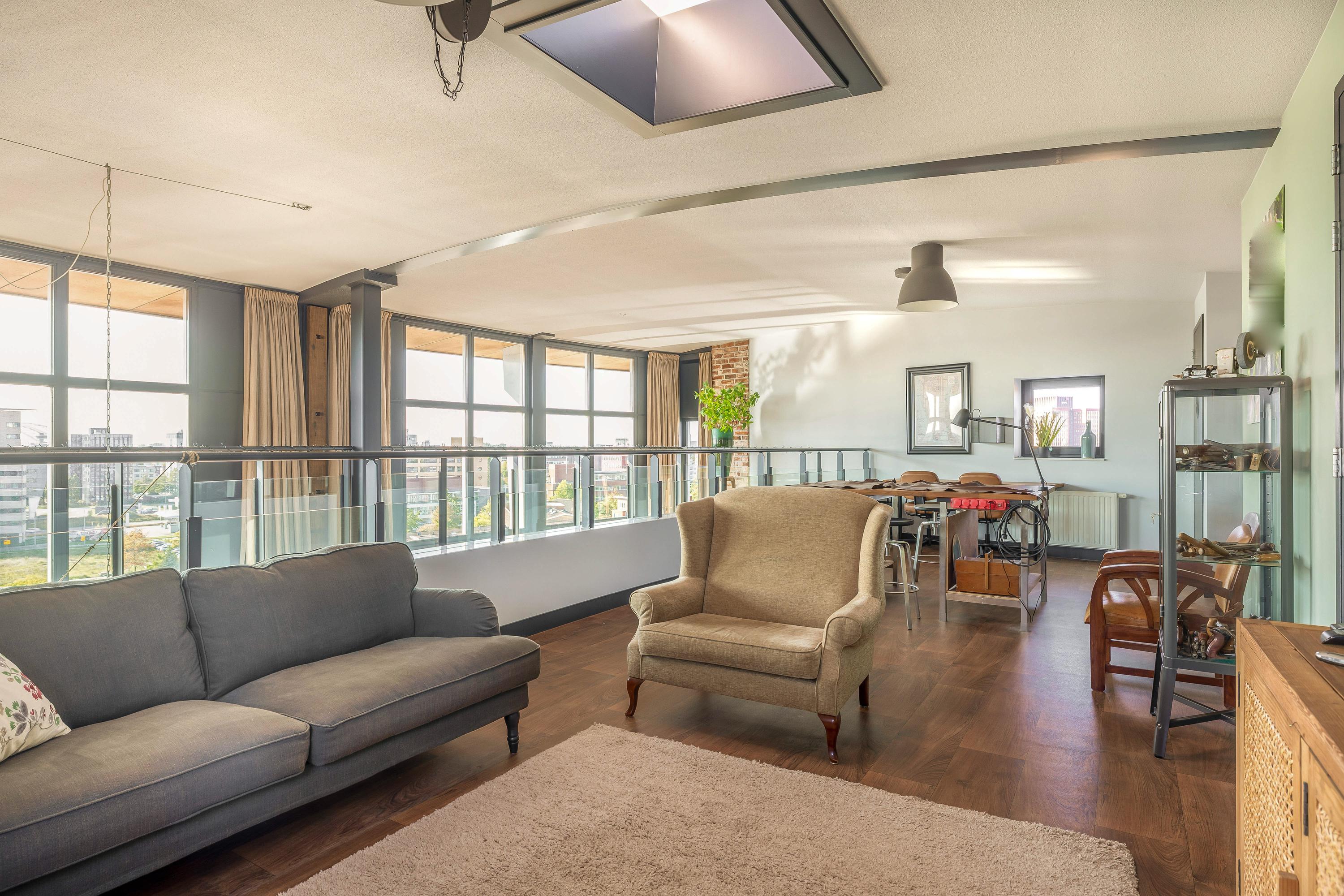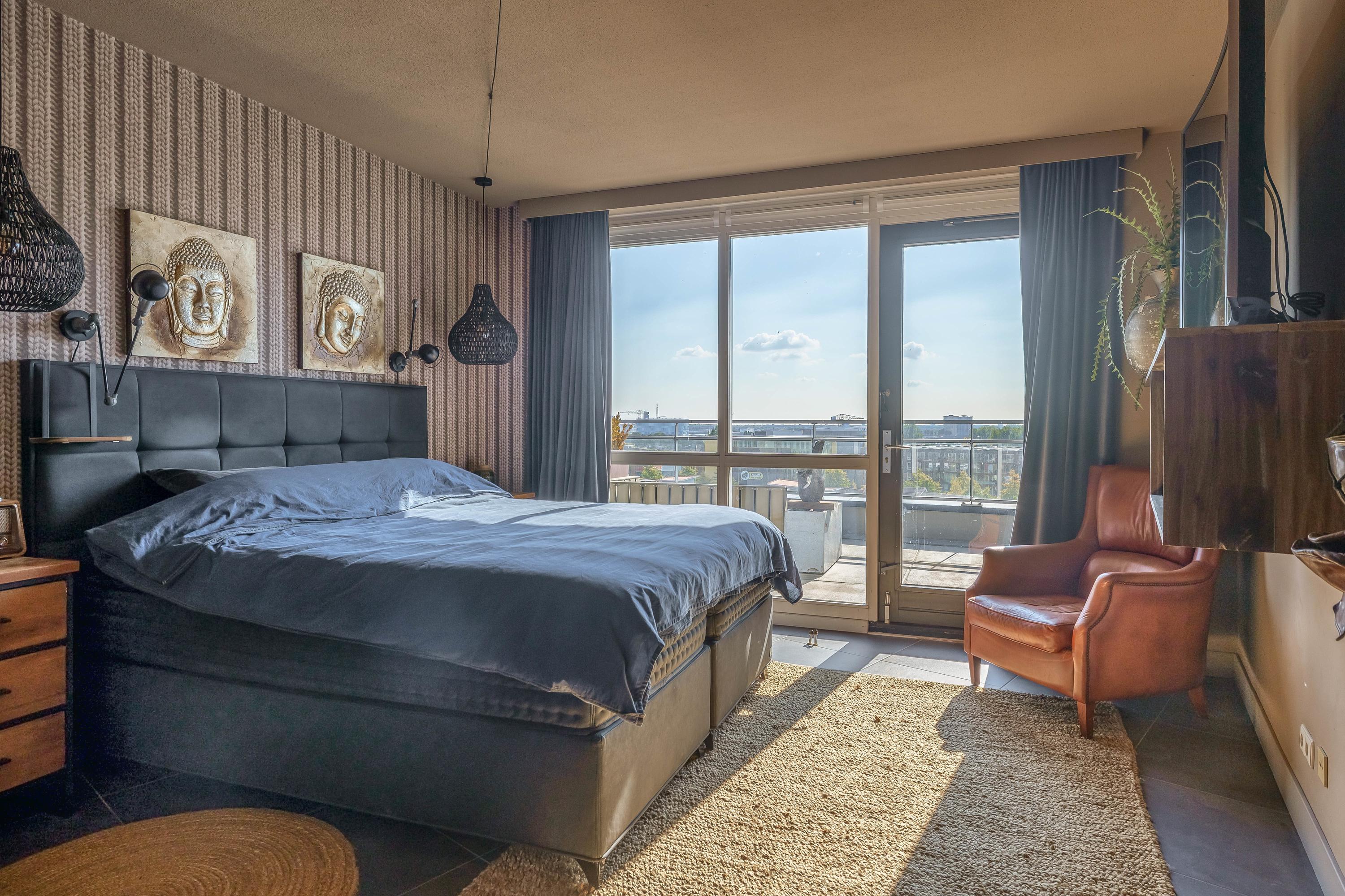Living at a higher level takes on a whole new meaning here. This double penthouse on the 8th and 9th floors offers a whopping 251 m² of living space, making it a rare and exceptionally spacious city apartment. Everything about this home exudes comfort, luxury, and privacy. With no direct neighbours, you’ll enjoy peace, quiet, and total freedom. The panoramic windows offer breathtaking views of the Rotterdam skyline, the Brienenoord Bridge, and the lights of De Kuip – a view that never gets old. And it continues seamlessly into the outdoor space: spread across two levels, you have a total of 98 m² of roof terraces, ideally positioned to the southeast and southwest. That means: morning sun and evening sun with stunning sunsets.