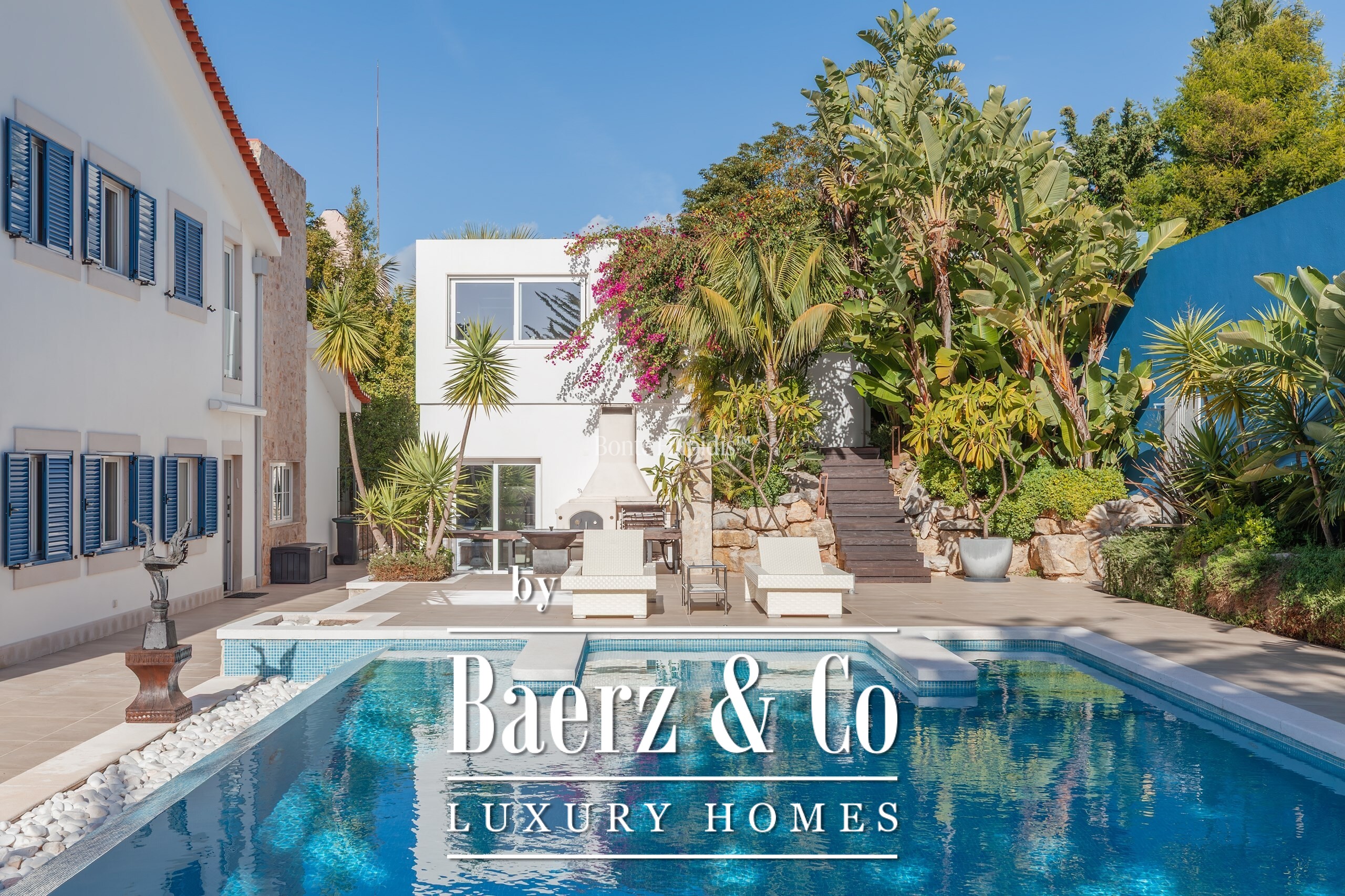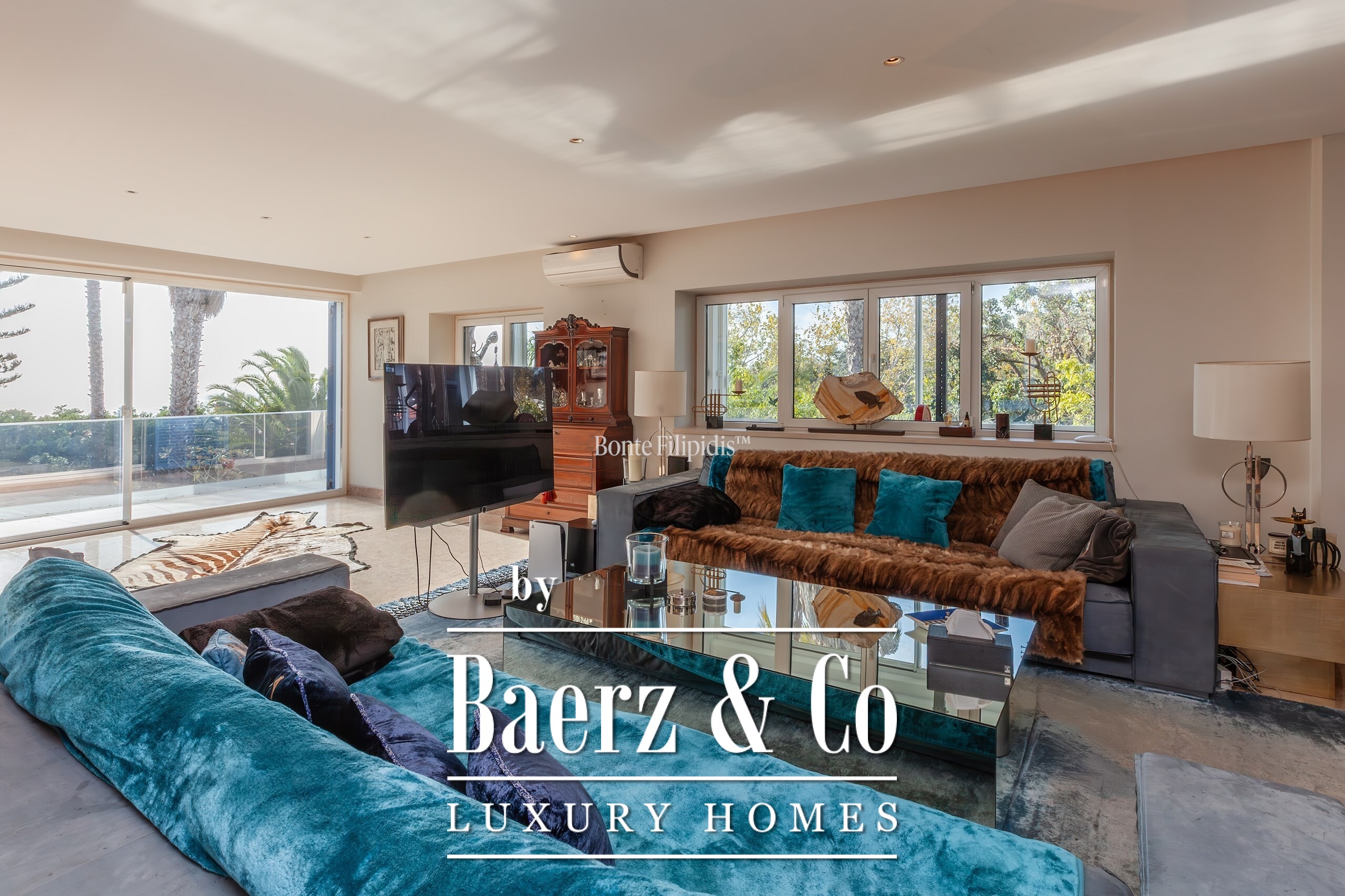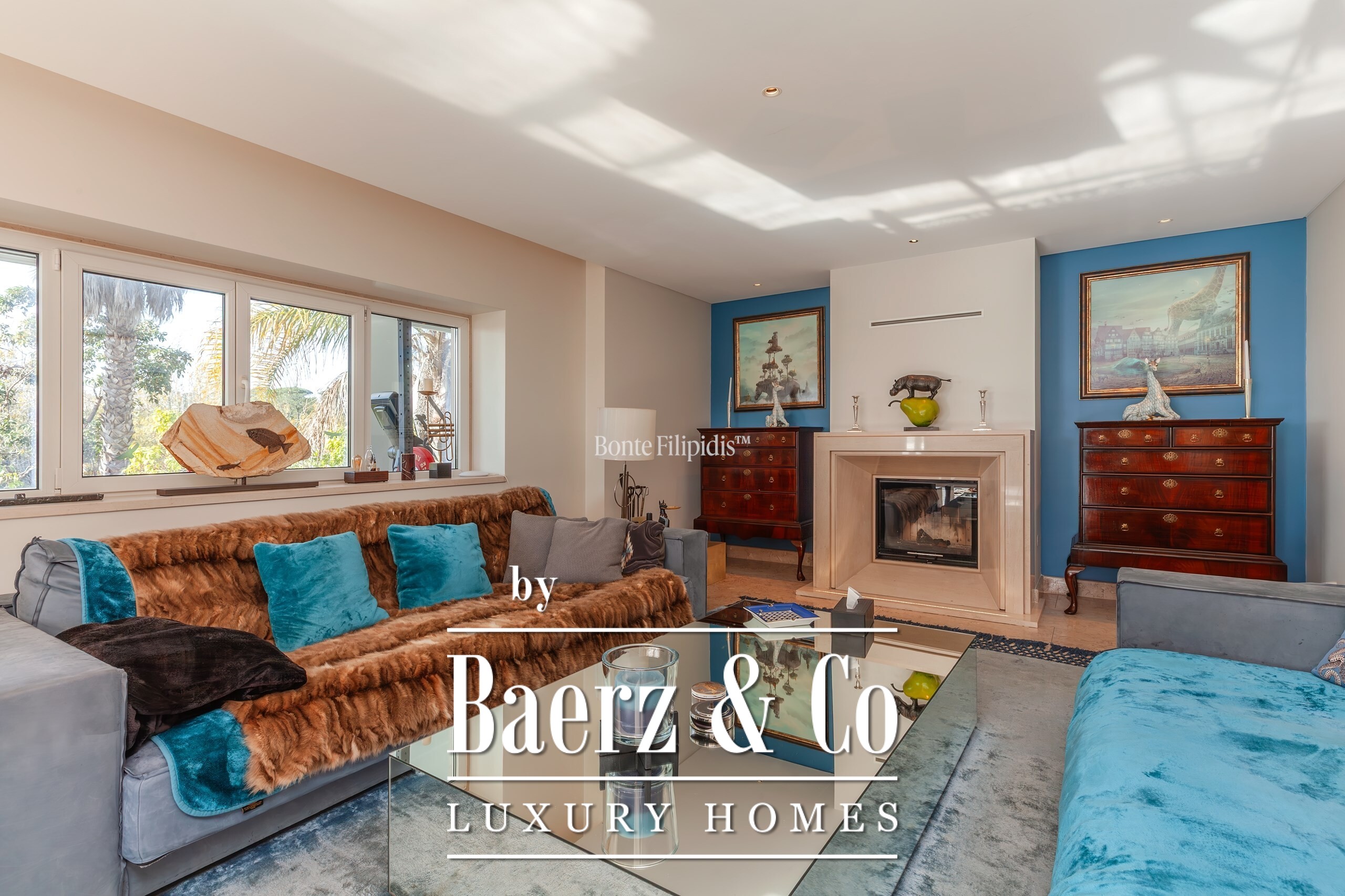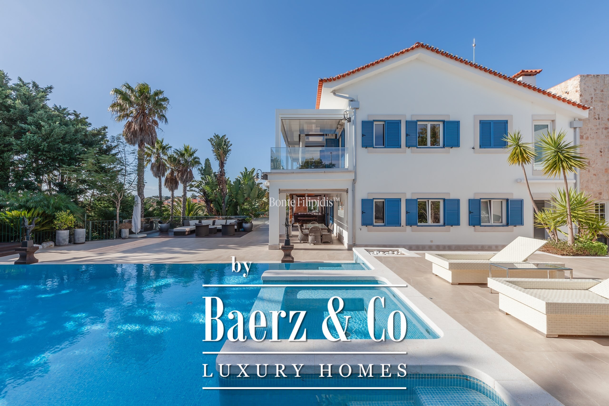 Villa Cascais e Estoril occupies a privileged plot of 2,100 m² at the highest elevation in Estoril, defining a rare dialogue between seclusion and amenity. This villa Cascais e Estoril rests between the renowned Estoril Golf Course and exclusive access to the Estoril Tennis Club, striking a harmonious balance between privacy and connection. Sea views unfold across two floors, and generous garden terraces shape the landscape into a series of living spaces, where sheltered seating, a lake, waterfall, jacuzzi, and a heated saltwater pool evoke a measured tranquility.