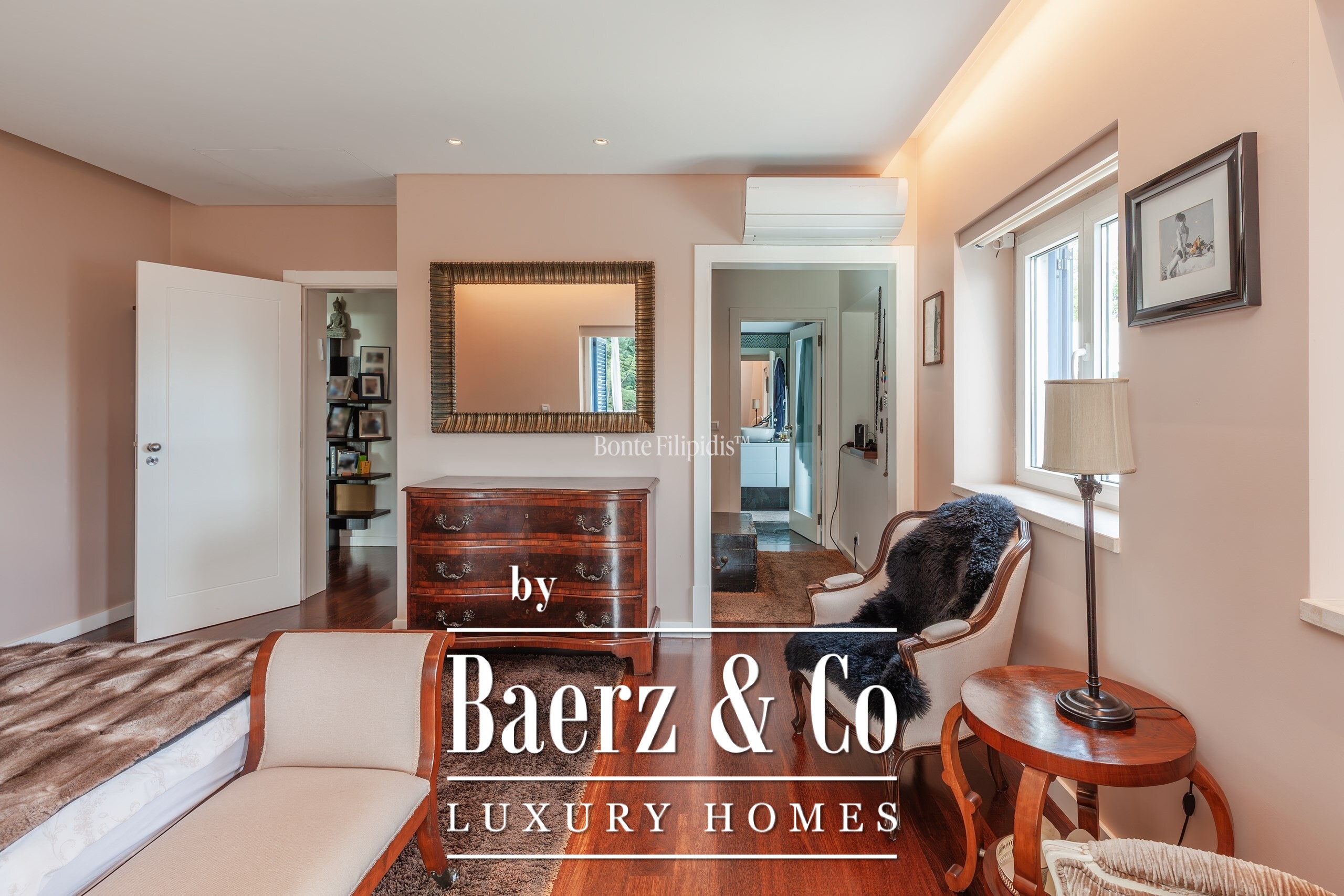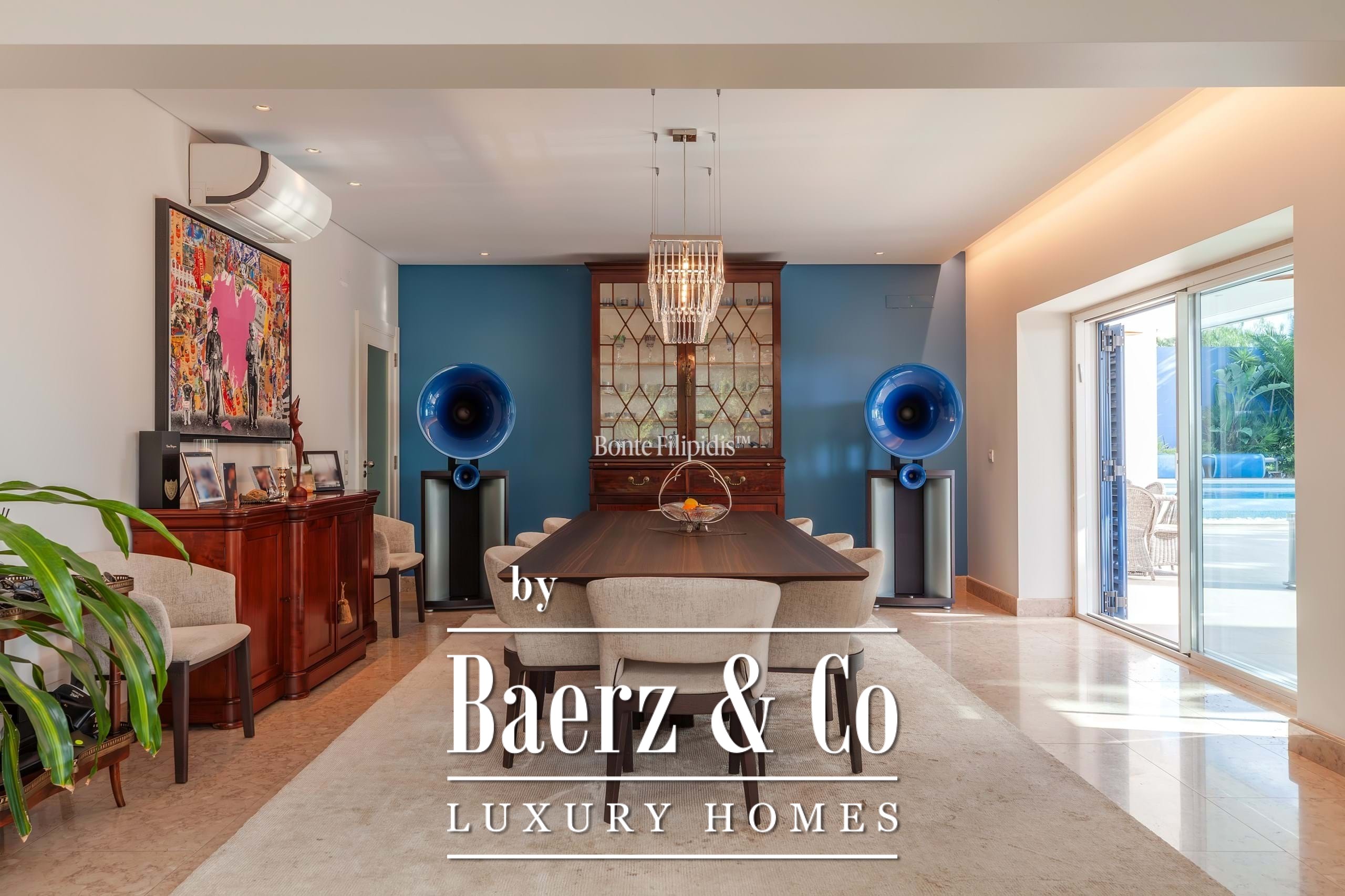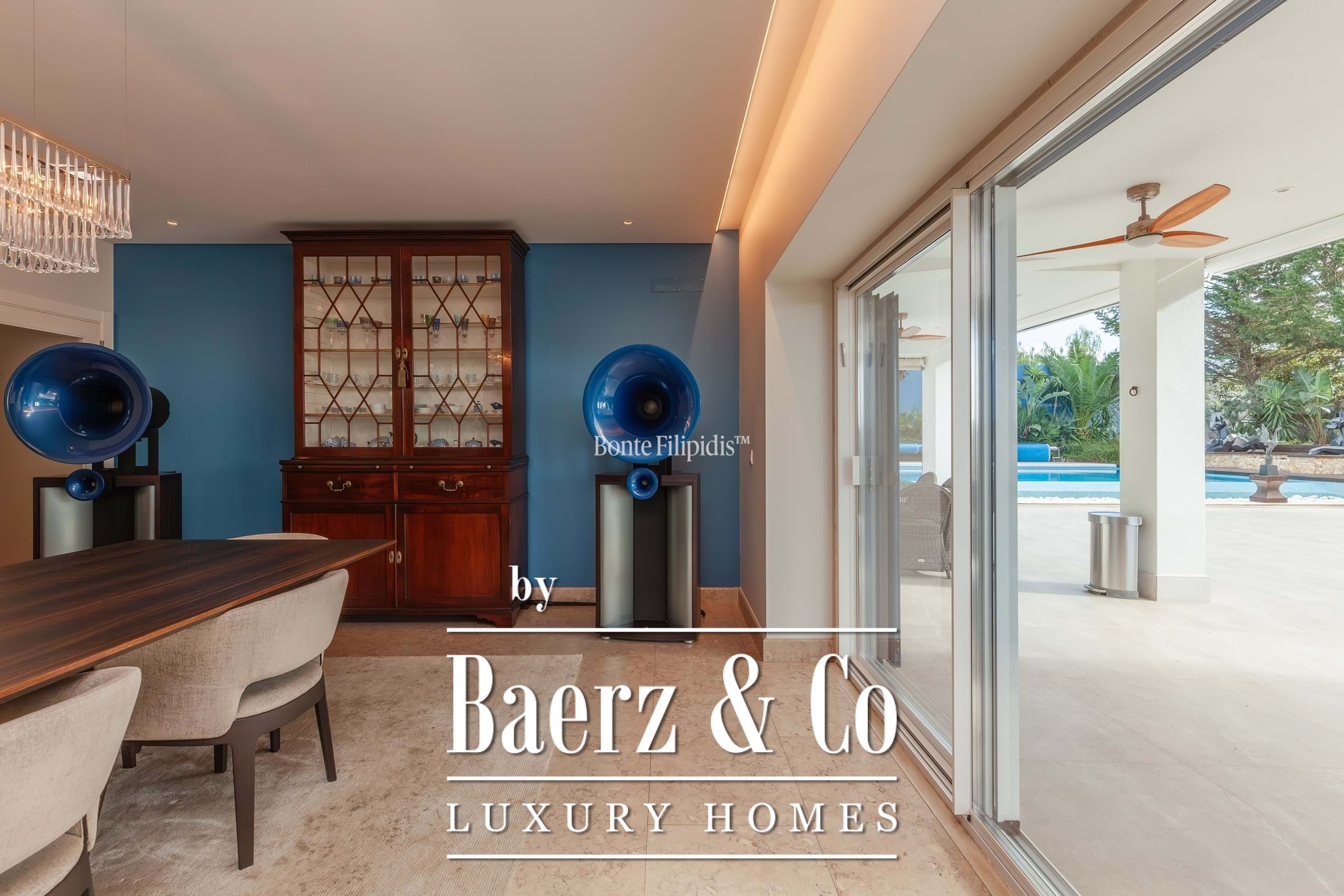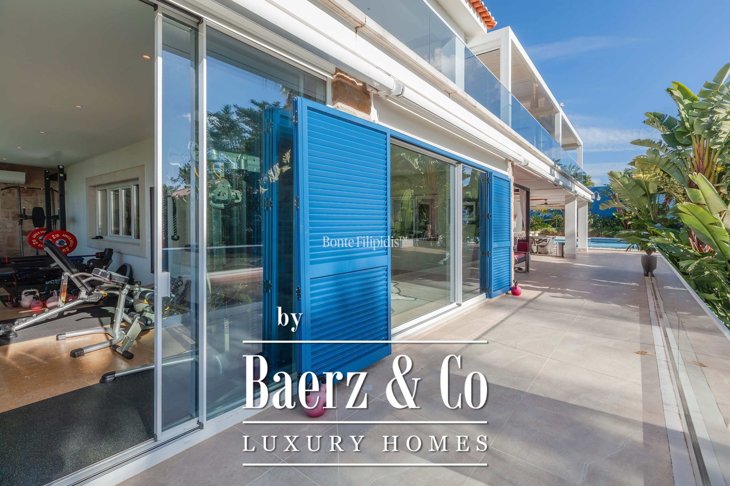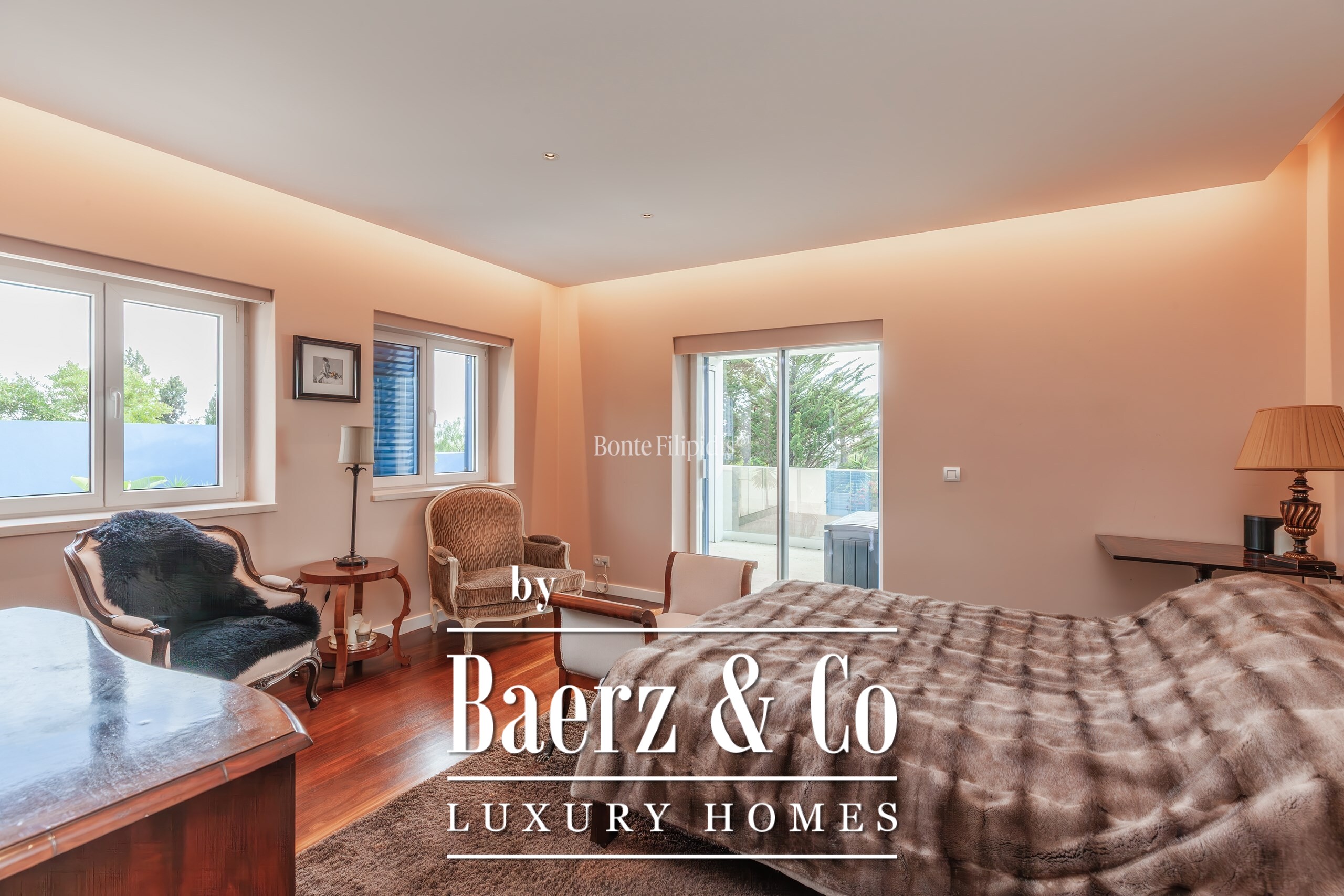A separate wellness suite provides a gym, Pilates studio, sauna, Hamam, and cinema, complemented outdoors by a poolside living area with a bar, outdoor kitchen, and dedicated leisure zones. A garage for more than six vehicles addresses practical needs with understated elegance. Moments from Casino Estoril and central amenities, this home is distinguished by its scale, refined discretion, and comprehensive offering in a coveted market segment. Properties of this scope and privacy, such as this luxury villa for sale in Cascais e Estoril, remain exceptional.